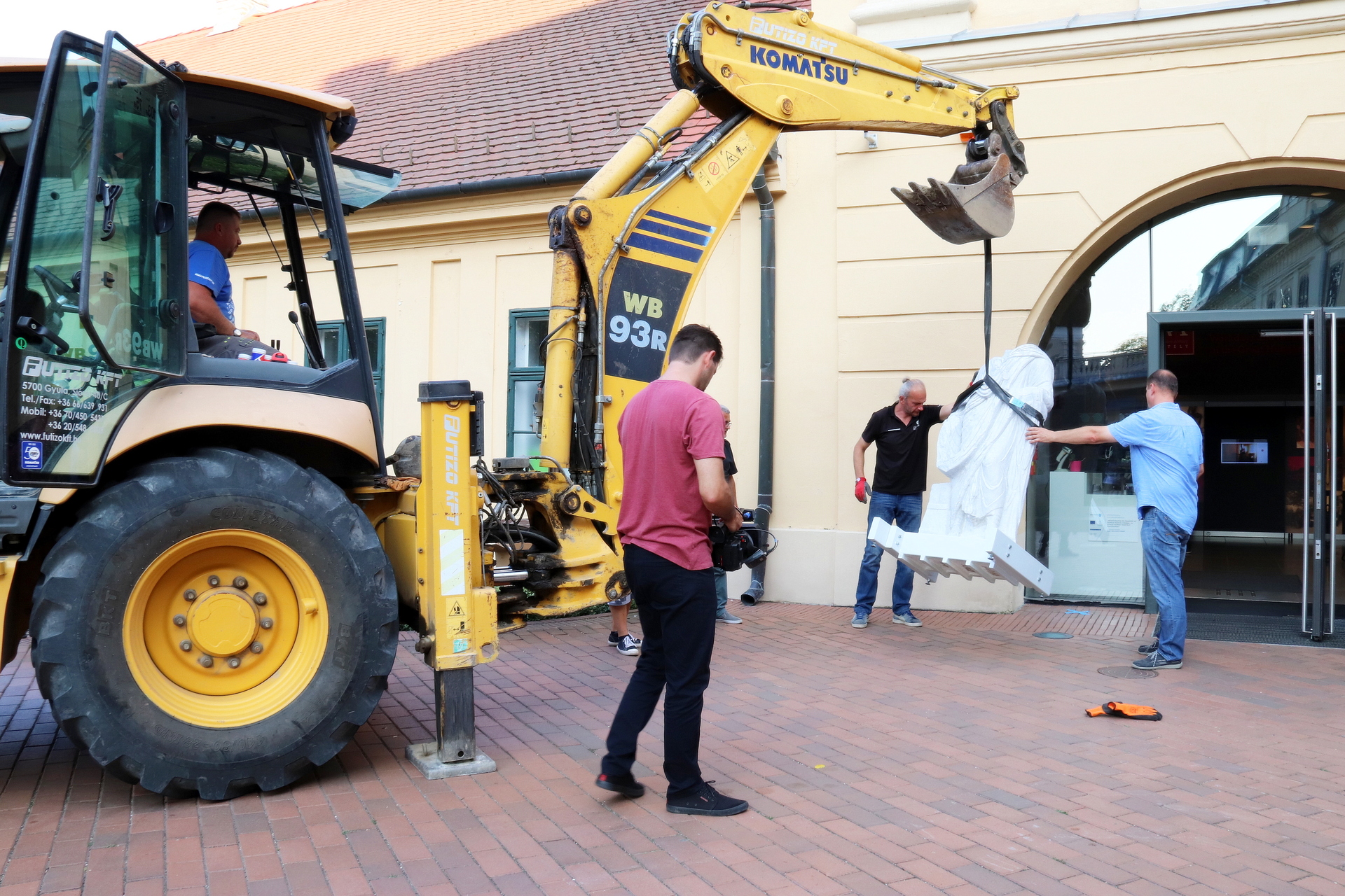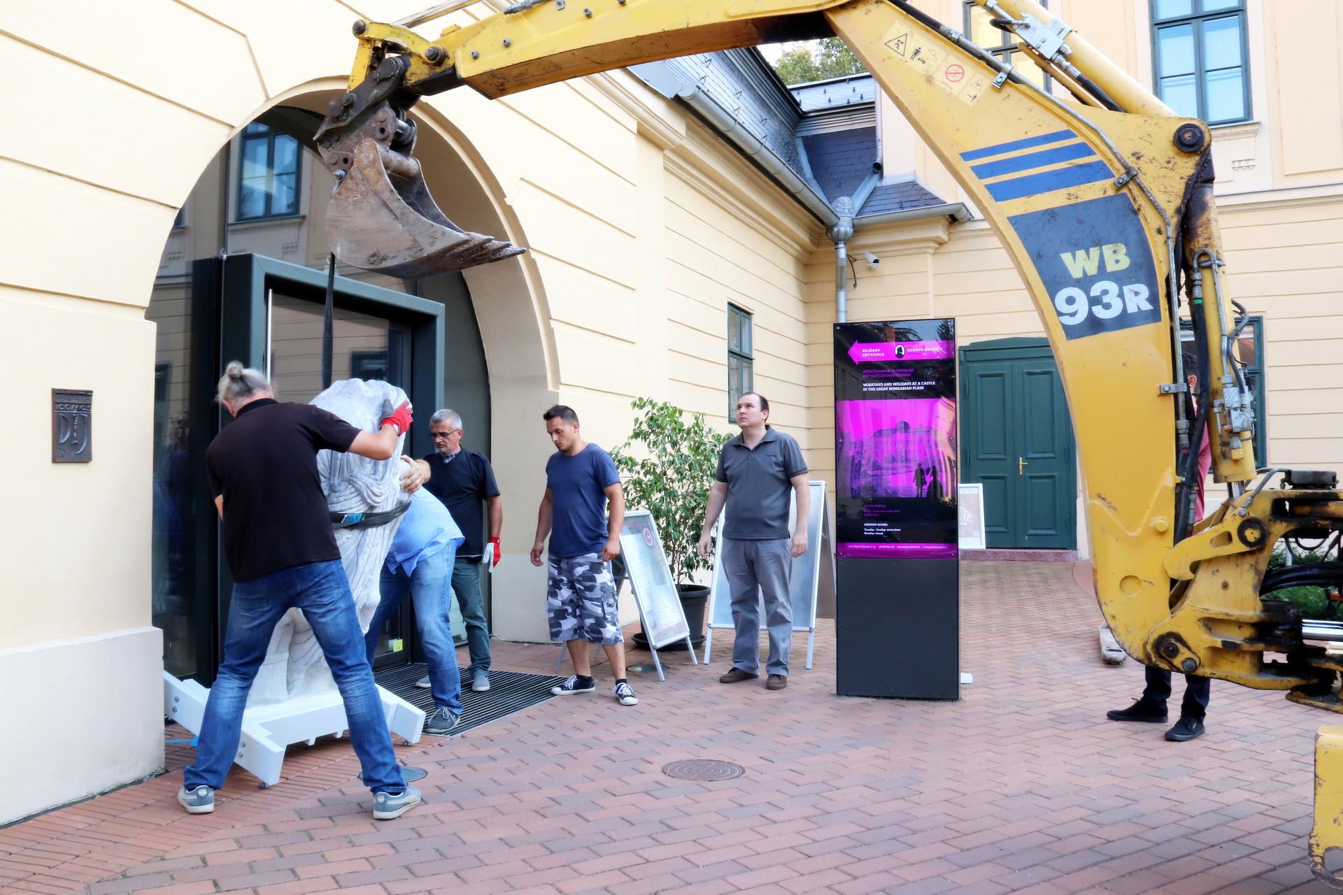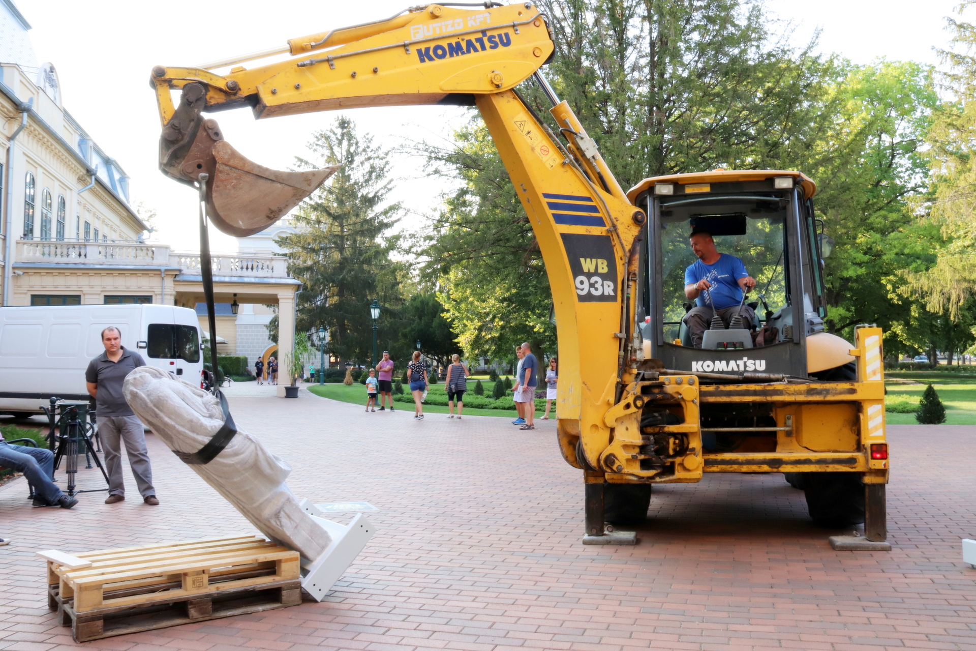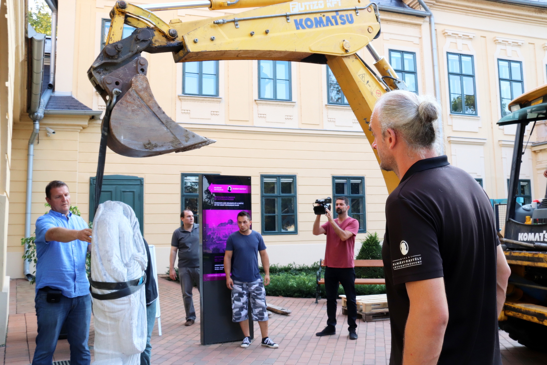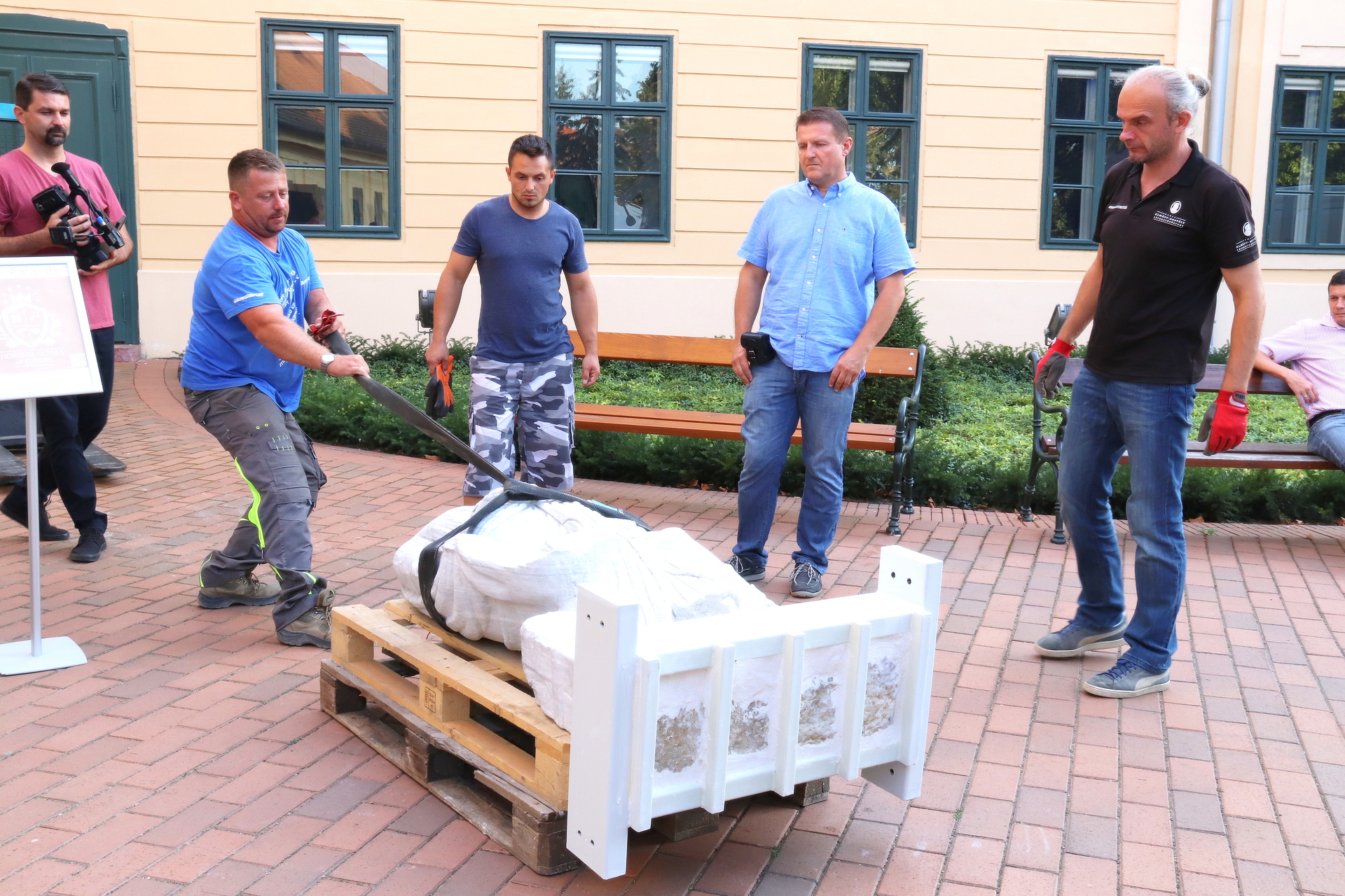 Nehezen, de törés nélkül került a helyére a több száz kilós restaurált római márványszobor