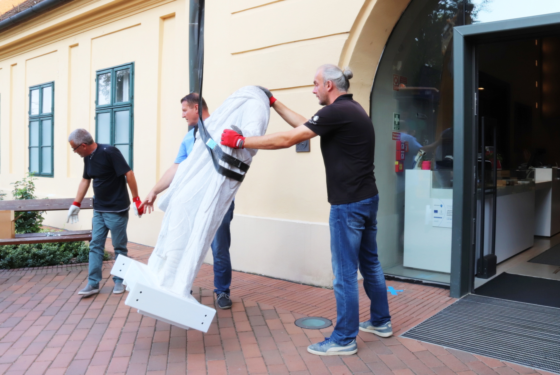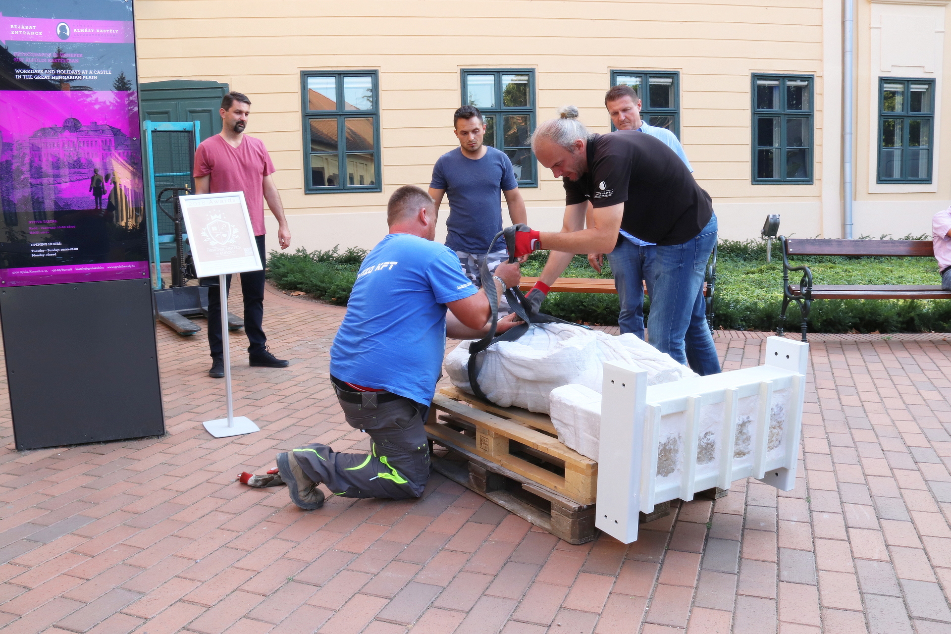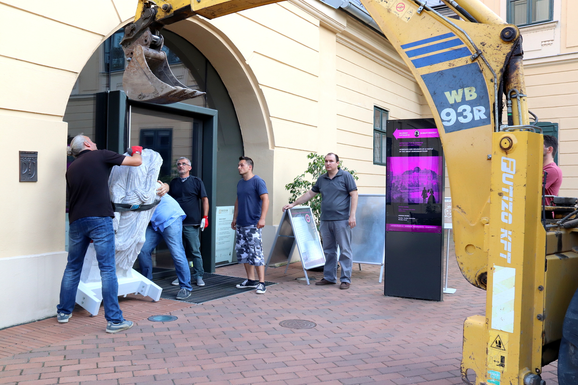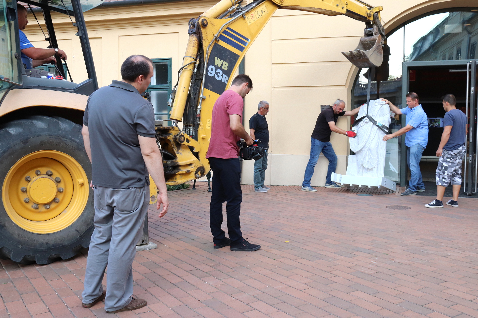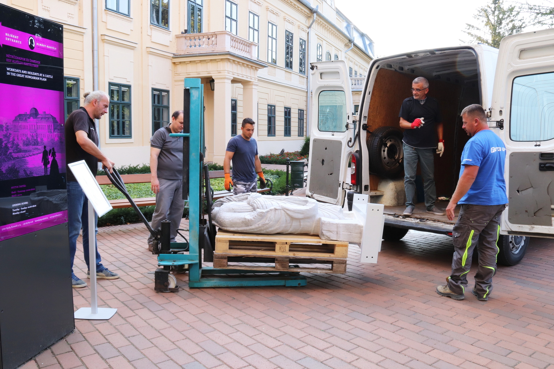 Nehezen, de törés nélkül került a helyére a több száz kilós restaurált római márványszobor