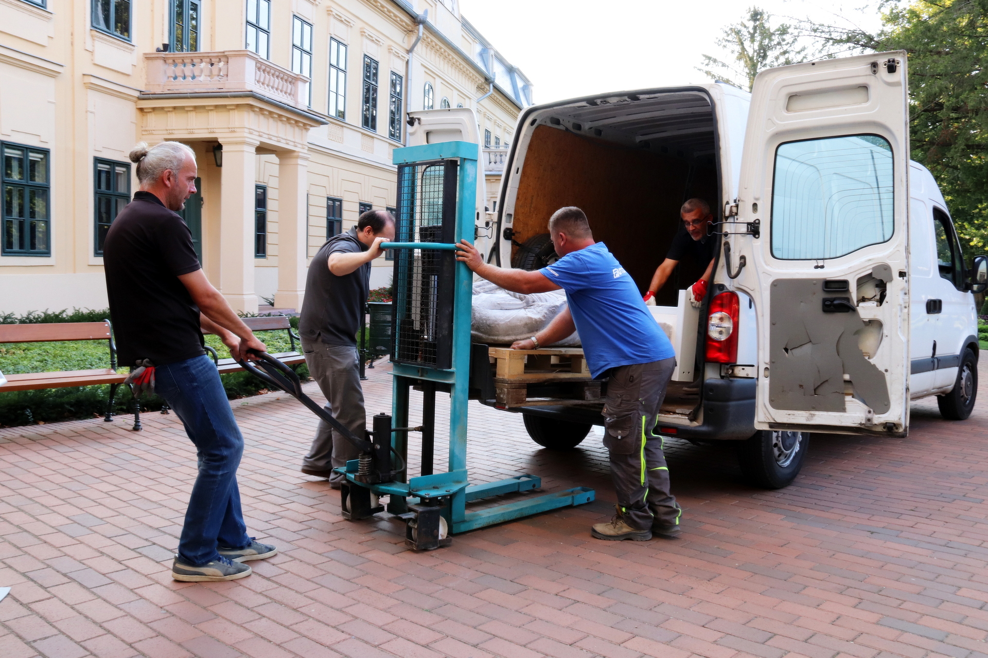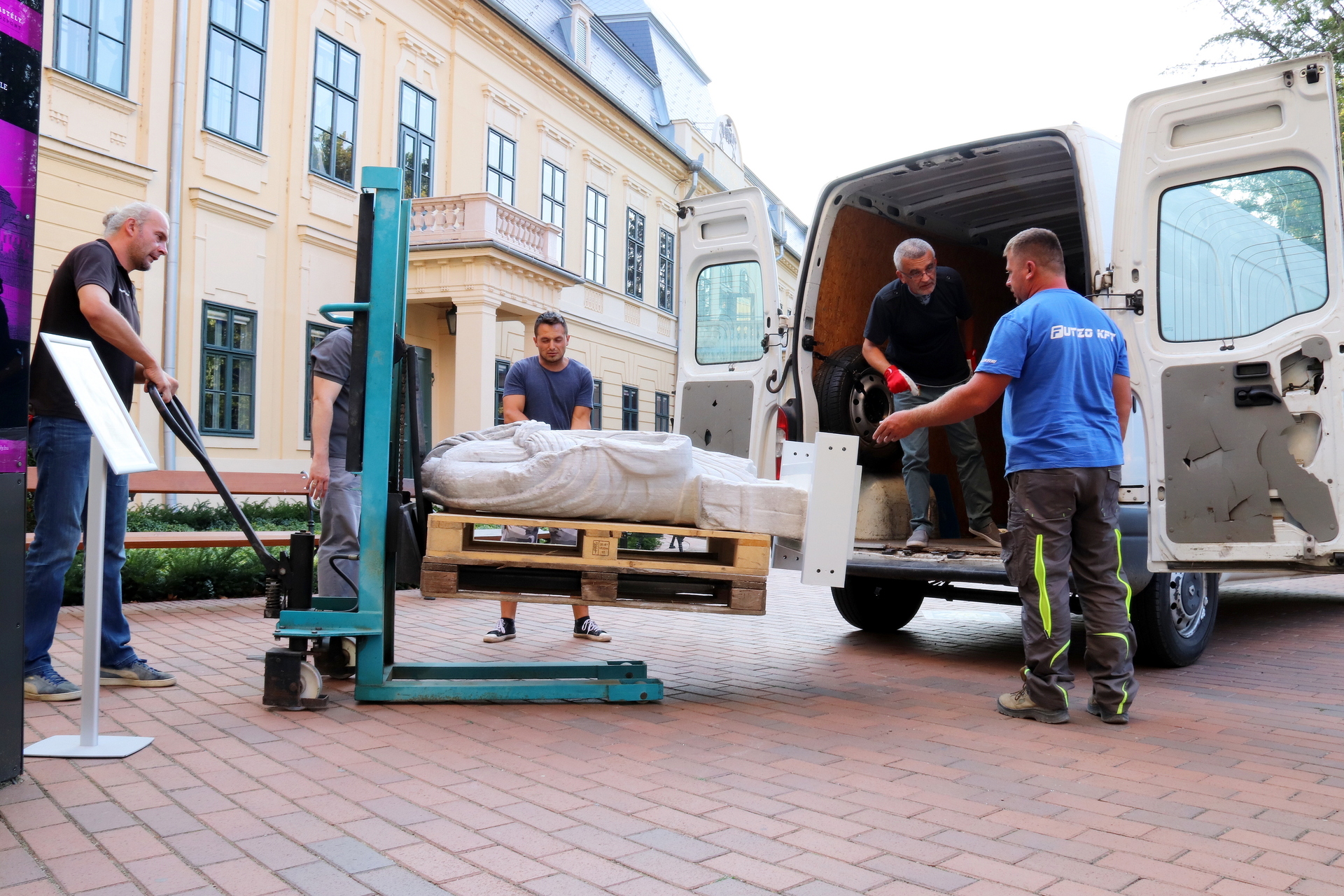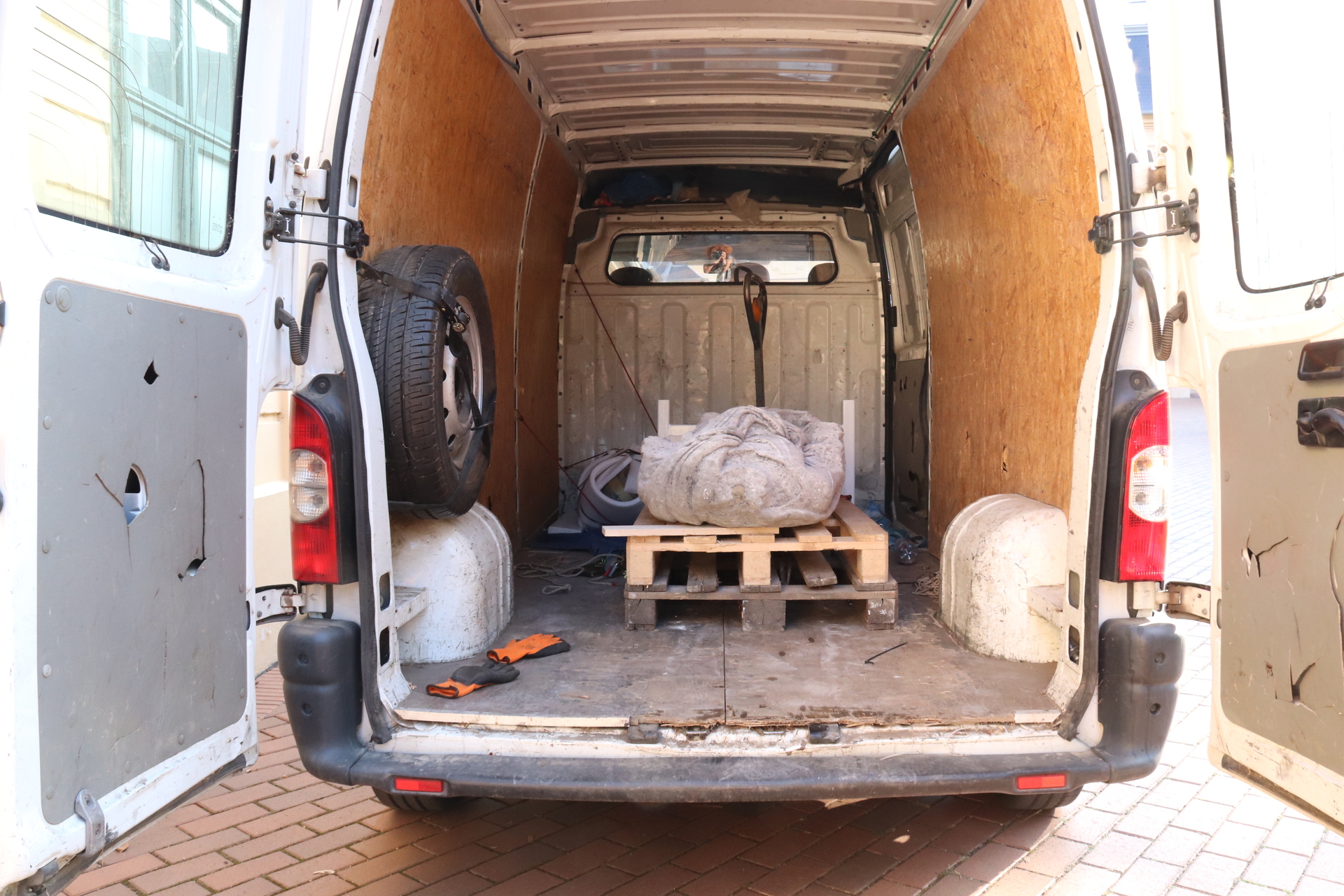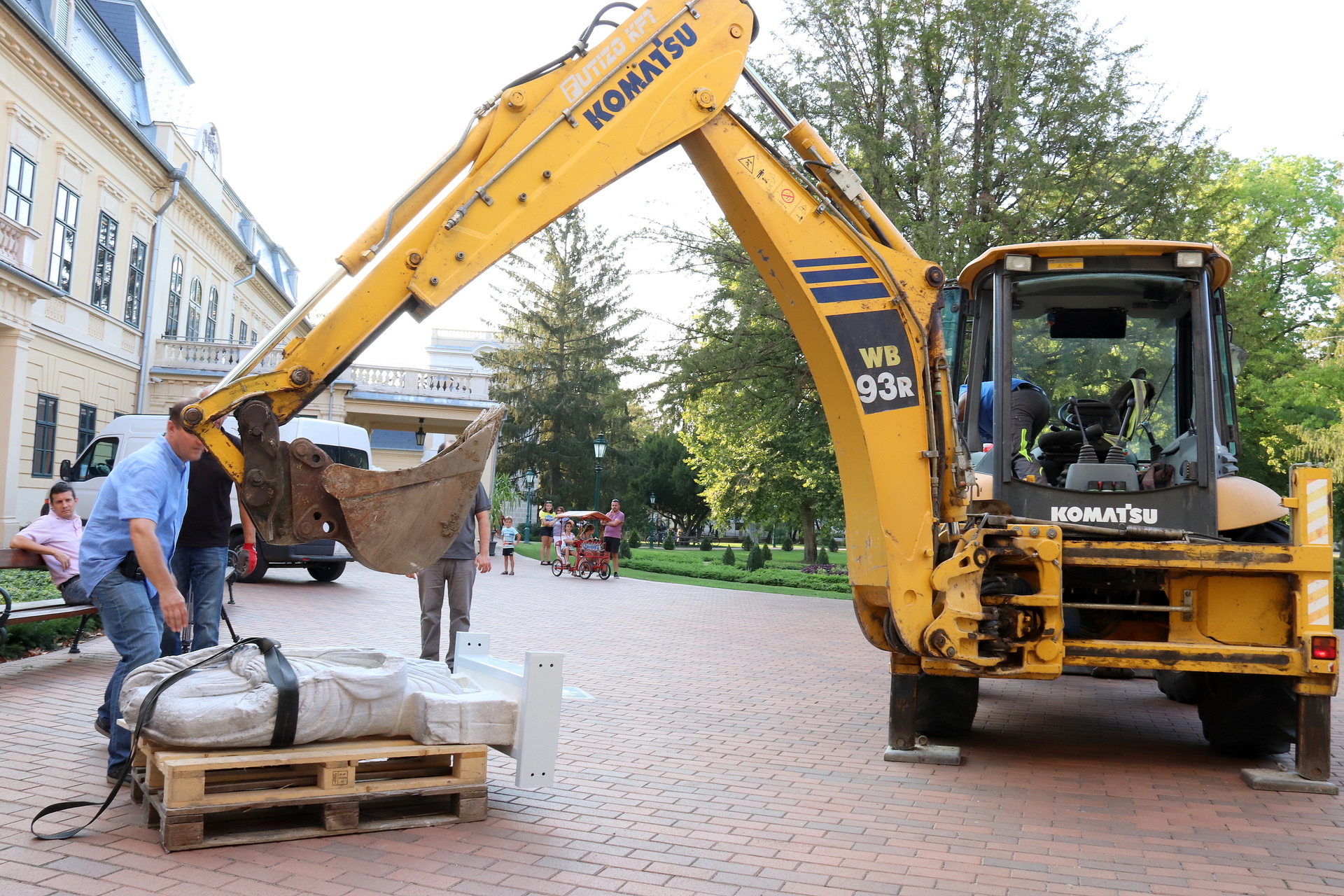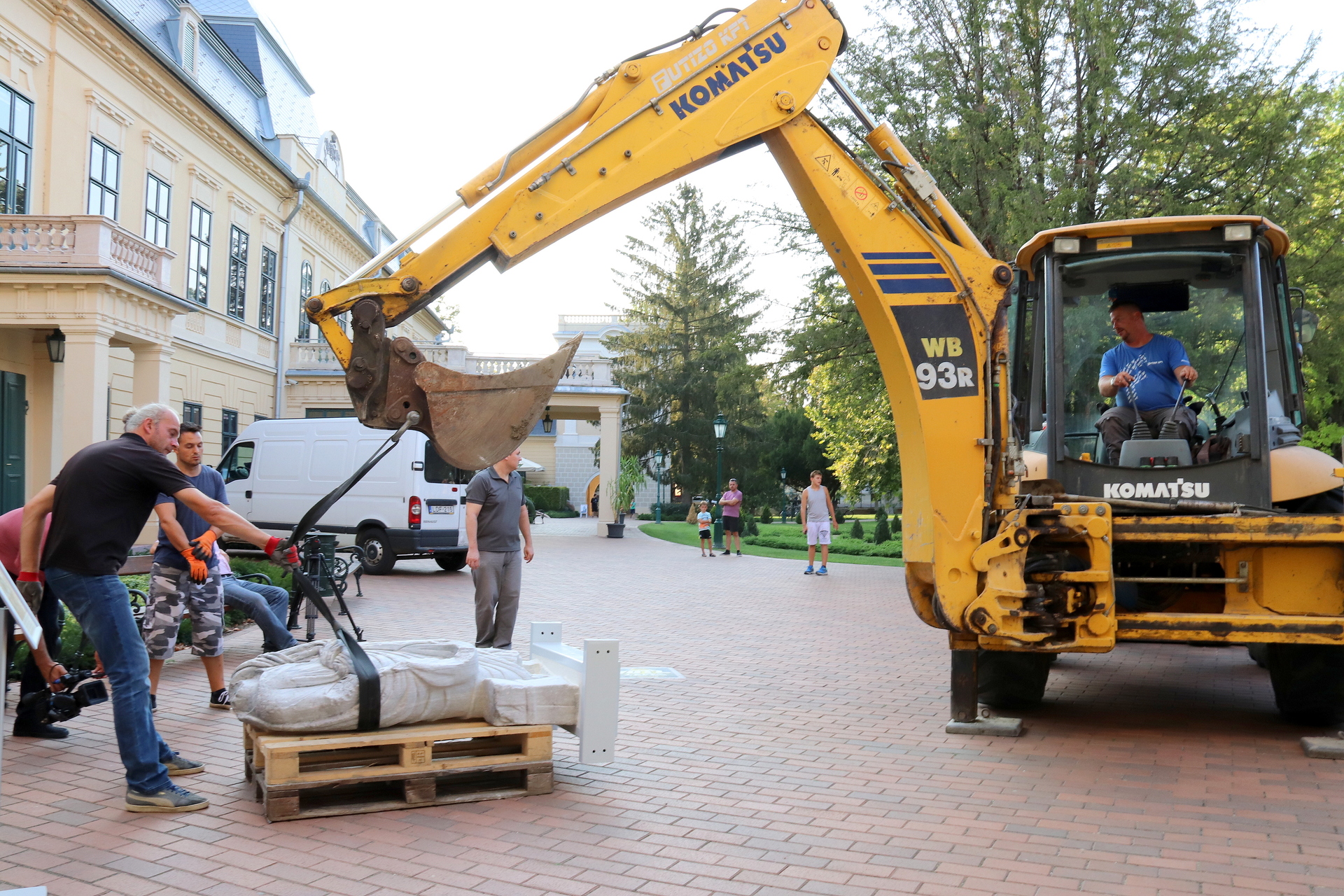 Nehezen, de törés nélkül került a helyére a több száz kilós restaurált római márványszobor