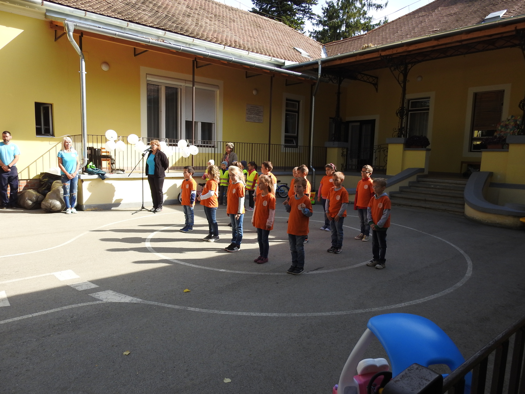 Szilágyi Ferencné tagintézmény-vezető köszöntőjében rámutatott: az új belvárosi körforgalom közelében található óvodába többen kerékpárral érkeznek reggelente, számunkra különösen fontos, hogy megtanuljanak biztonságosan közlekedni a forgalmas csomópont területén.