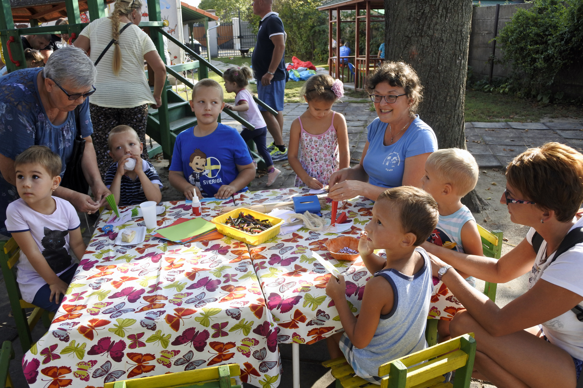 A délután programjait Pálovitsné Czene Ágota intézményvezető-helyettes ismertette: a gyerekeket ugrálóvár, sportolási lehetőség és barkácsasztalok is várta, valamint kivehették a részüket a magvalásból is. A vendégeket frissítő italokkal, szilvalekváros buktával és szalonnás lepénnyel kínálták.