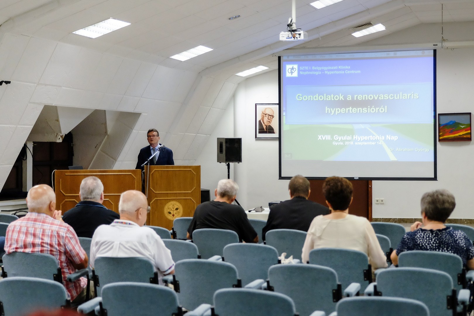Az előadások sorát dr. Ábrahám György szegedi egyetemi tanár Renovascularis hypertonia című értekezésével nyitotta meg. A stroke és a hypertonia kapcsolatáról dr. Jenei Zoltán debreceni tanszékvezető egyetemi docens beszélt, a tápanyag- és étrend-kiegészítők felől dr. habil. Barna István budapesti egyetemi docens közelítette meg a témát. Dr. Légrády Péter szegedi egyetemi adjunktus a dializált vesebetegek antihypertensiv kezeléséről osztotta meg gondolatait a jelenlévőkkel, dr. Benczúr Béla szekszárdi osztályvezető főorvos pedig a szívelégtelenség és a magas vérnyomás viszonyát elemezte.