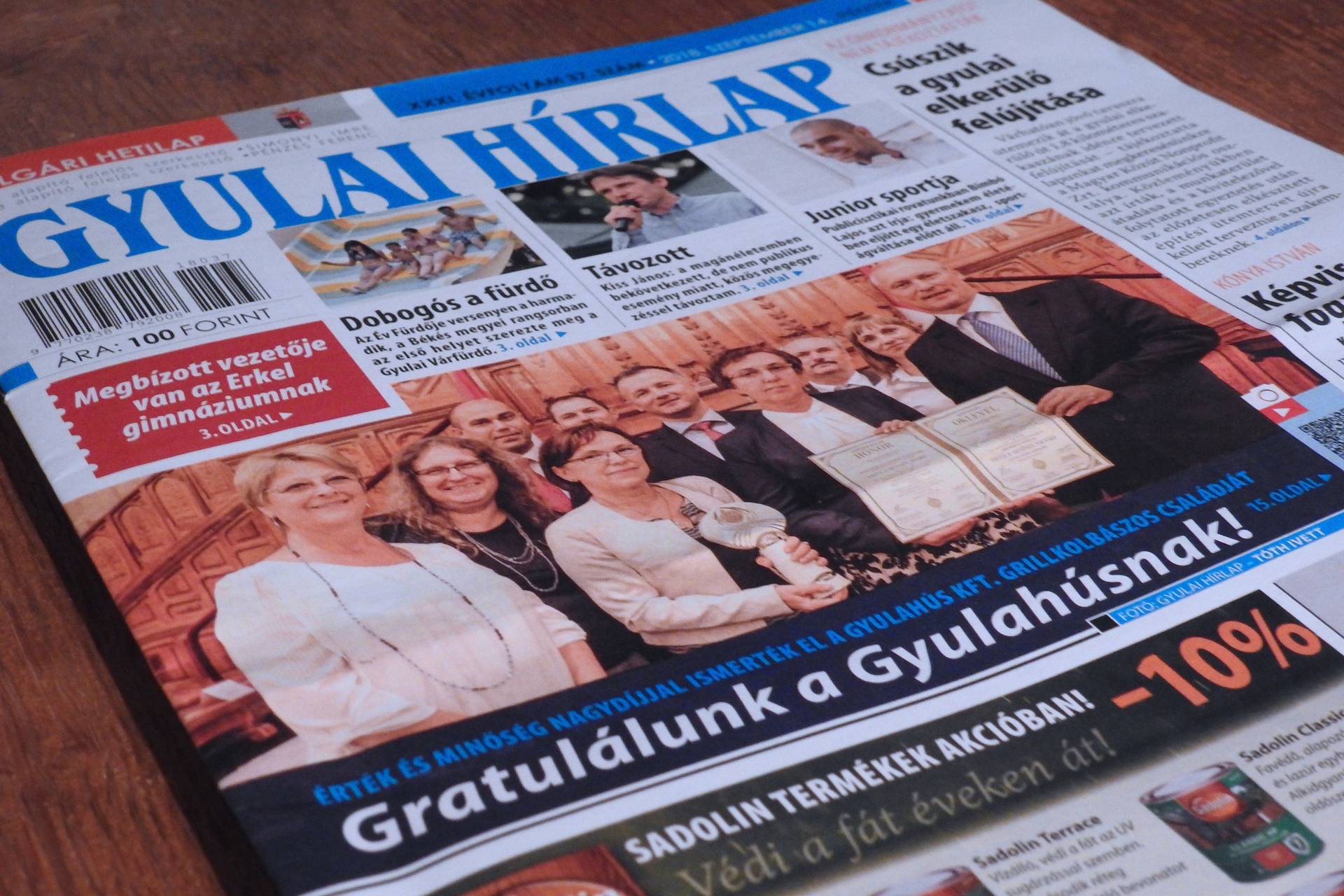 A friss Gyulai Hírlapban többek között arról írunk, hogy a jövő tavaszra ütemezhetik át a gyulai elkerülő út 1,8 kilométeres szakaszának idénre tervezett felújítását. Hogy miért csúszik a beruházás, arról a Magyar Közút Nonprofit Zrt. kommunikációs osztályát kérdeztük. Címlapfotónkon a Gyulahús Kft. munkatársai és Görgényi Ernő polgármester látható. Az önkormányzati társaság a közelmúltban Érték és Minőség nagydíjat vehetett át. Az elismerést a Deka Union Kft. is megkapta, a cég tulajdonosát, Dékány Ferencet életműdíjjal ismerték el. A sajtóban és az interneten megjelent hírekkel ellentétben nem politikai nyomásra, hanem személyes okokból hagyta ott a művelődési központot és az EDÜ-t szervező alapítvány kuratóriumát Kiss János. Minderről Facebook-oldalán írt a főszervező. Lapunkban arról is hírt adunk, hogy Tóth Istvánt nevezte ki egy évre az Erkel gimnázium megbízott vezetőjévé a Gyulai Tankerületi Központ. Az igazgatói posztra 2019 tavaszán írnak ki újabb nyilvános pályázatot. Lapunkból természetesen a sport, a kultúra, a jegyzet és az állandó rovatok sem hiányozhatnak.
