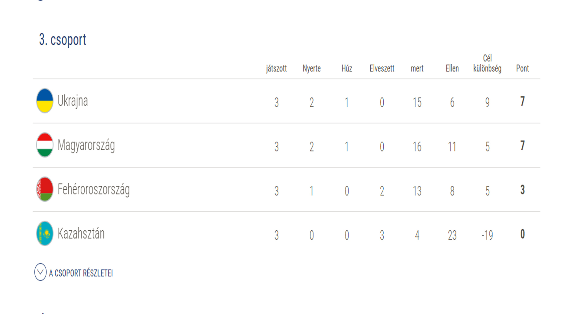 A forduló másik párosításban a favoritnak számító Ukrajna együttese hét nullás derbin gázolta le Kazahsztán legjobbjait, így Dombó János válogatottja a csoport második helyén fejezte be az Európa-bajnoki selejtezőtornát. A most megrendezett seregszemléről a házigazdák mellett Portugália, Oroszország és Spanyolország legjobbjai jutottak ki a jövő évi Európa-bajnokság döntőjére.
