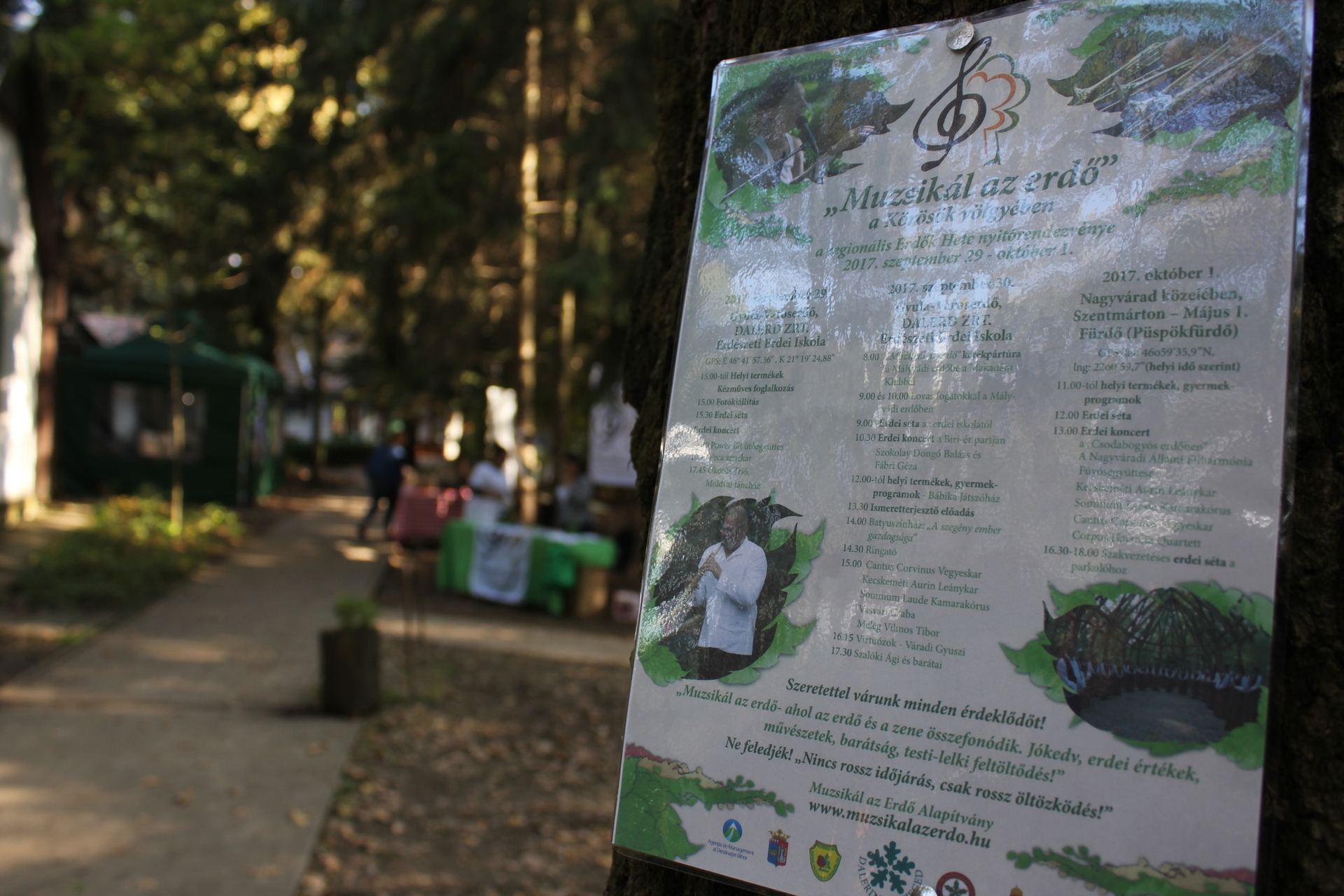 A program szeptember 28-án pénteken a gyulai erdei iskolában kezdődik Városerdőn, ahol 15 órától helyi termékek bemutatóján vehetnek részt az érdeklődők. Közben kézműves-foglalkozást is tartanak a gyerekeknek, és ugyanebben az időpontban egy kiállítást is megnyitnak a Muzsikál az erdő fotópályázat nyertes képeiből és gyermekrajzokból.