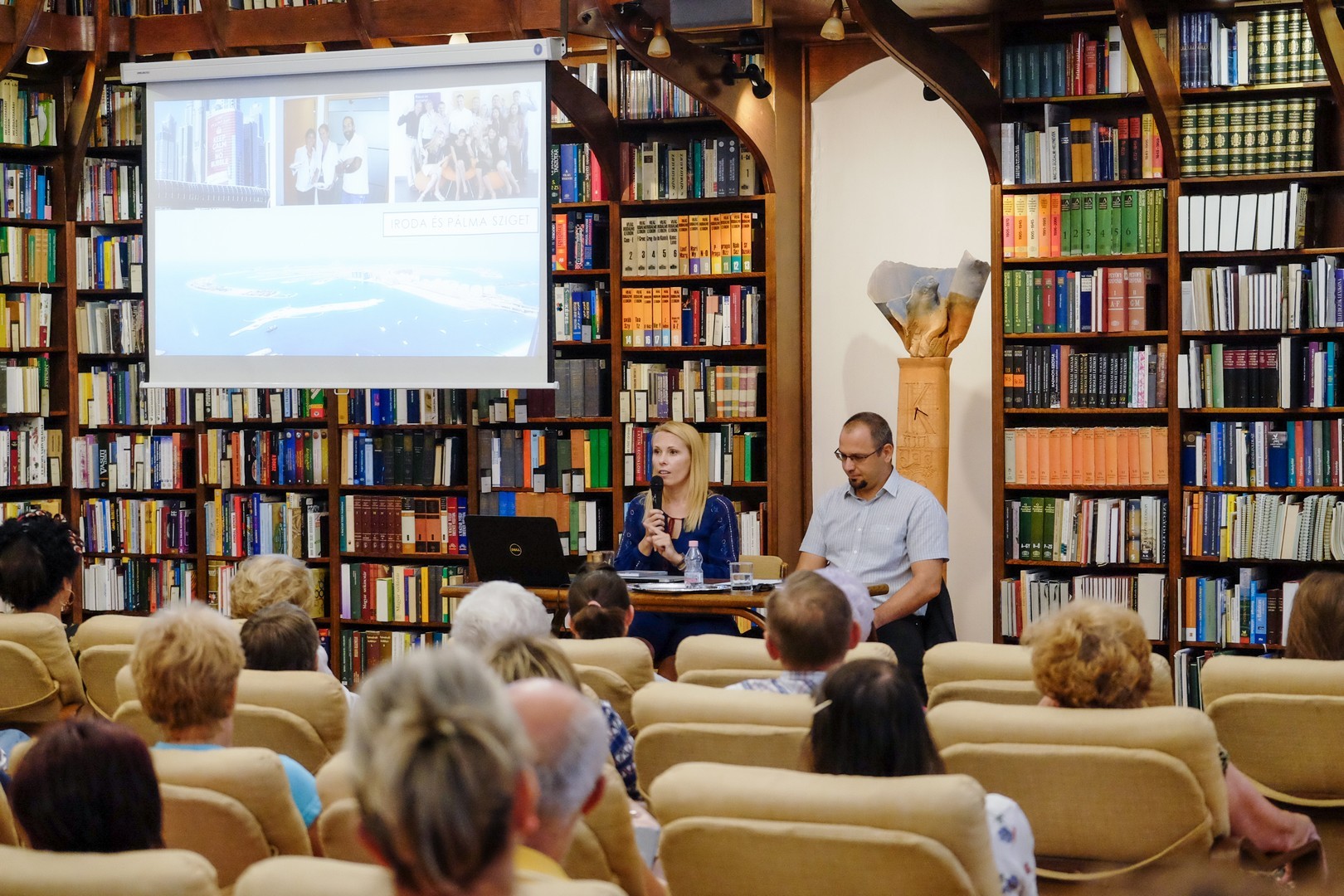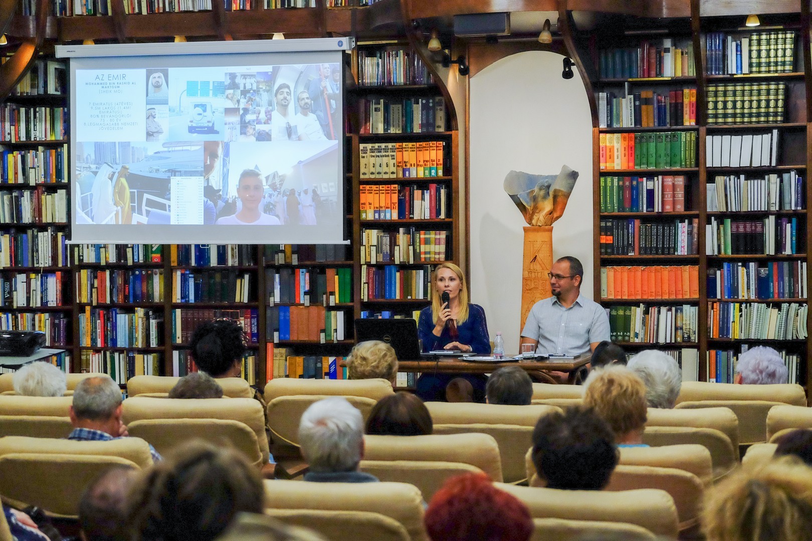 A diaképekkel színesített könyvtári rendezvényen számos érdekesség hangzott el a szaud-arabizációról is, a csütörtöki és pénteki szünnapról, a sivatagi homokfüggönyről, a sípályákról és az utcai vízisíelési lehetőségről, a tevetejről, a muzulmánoknak az izraelitákhoz való viszonyulásukról, és természetesen arról, hogy magyarokkal bárhol bármikor össze lehet találkozni. A részleteket a Közel-keleti karma című könyvében írta meg a két szerző.