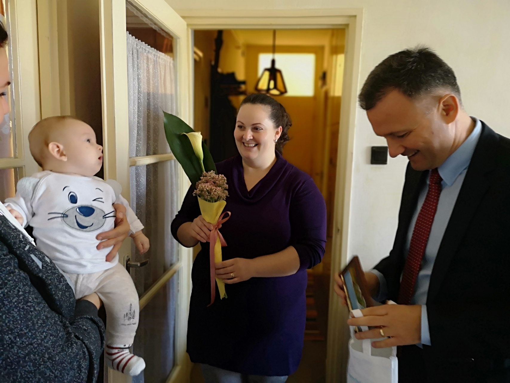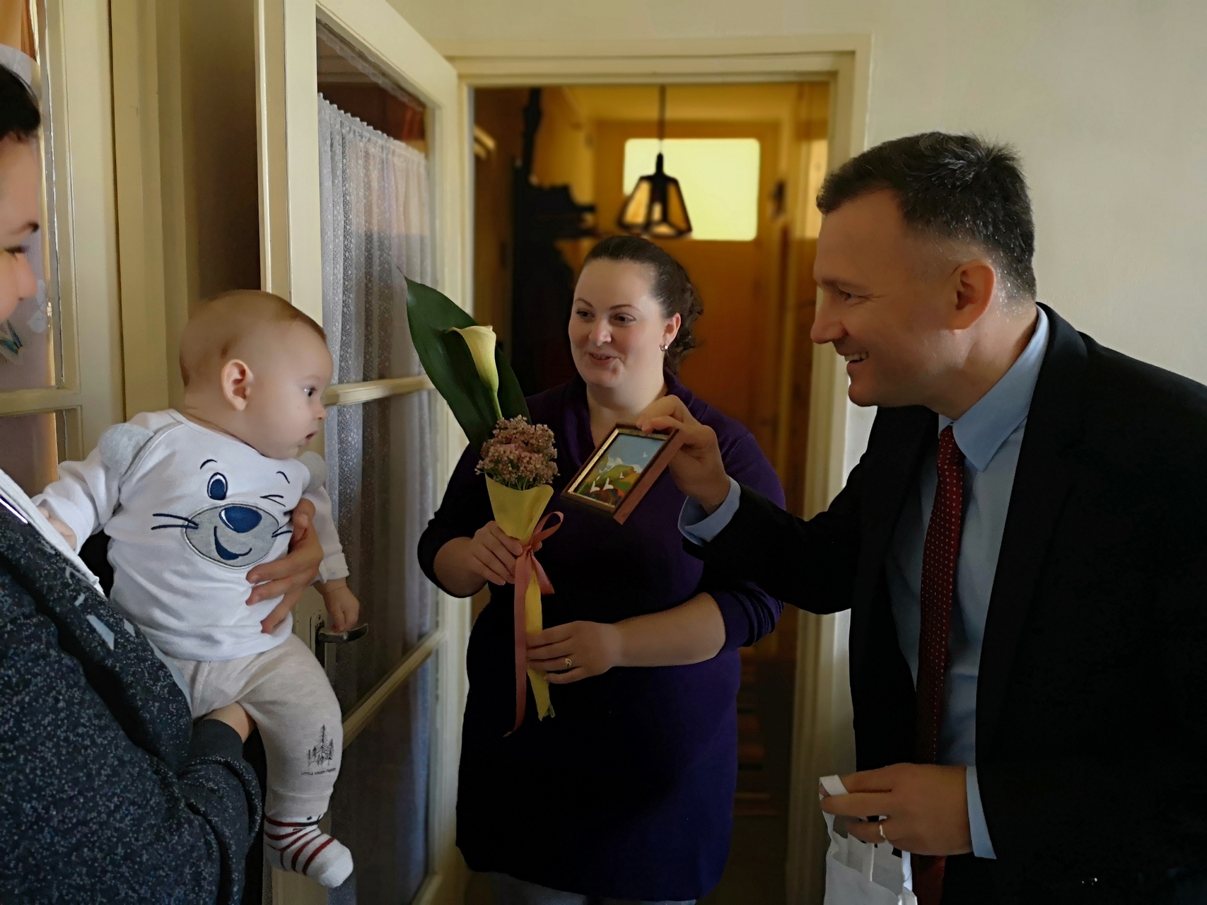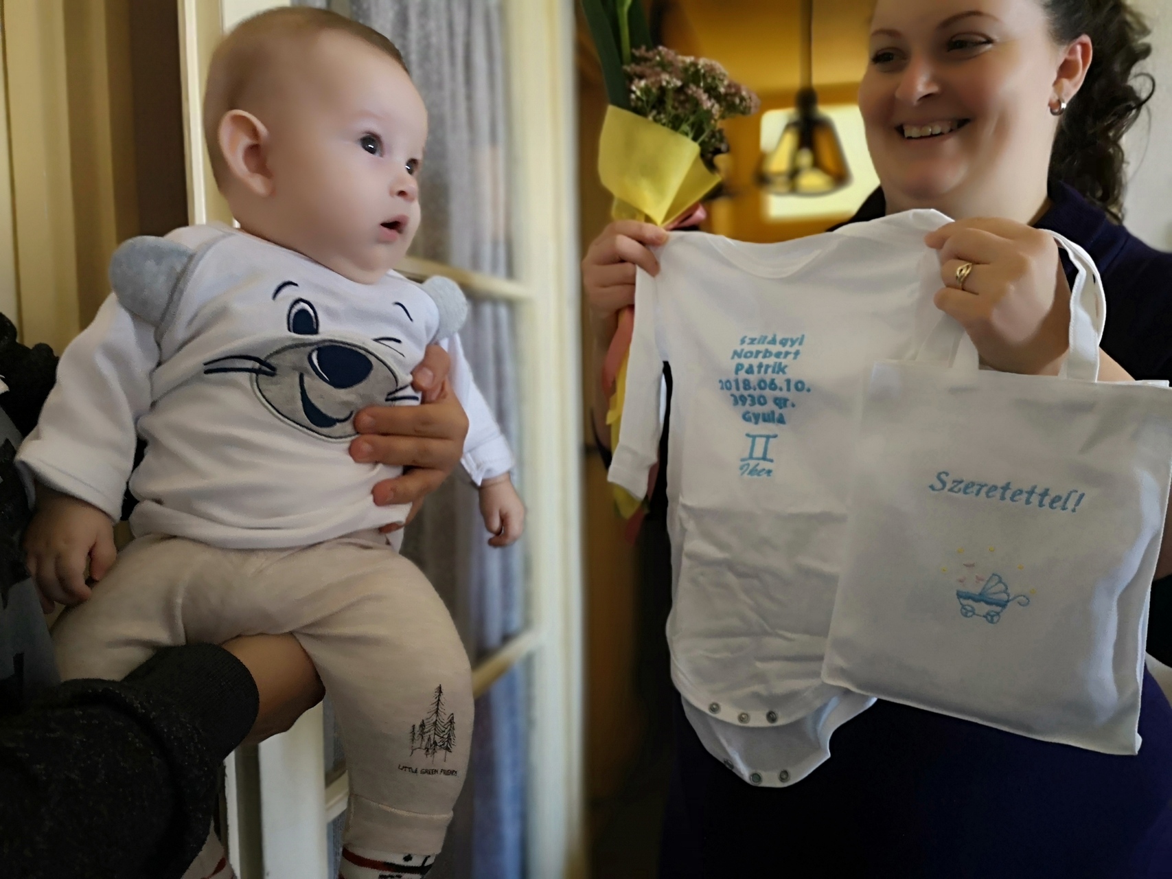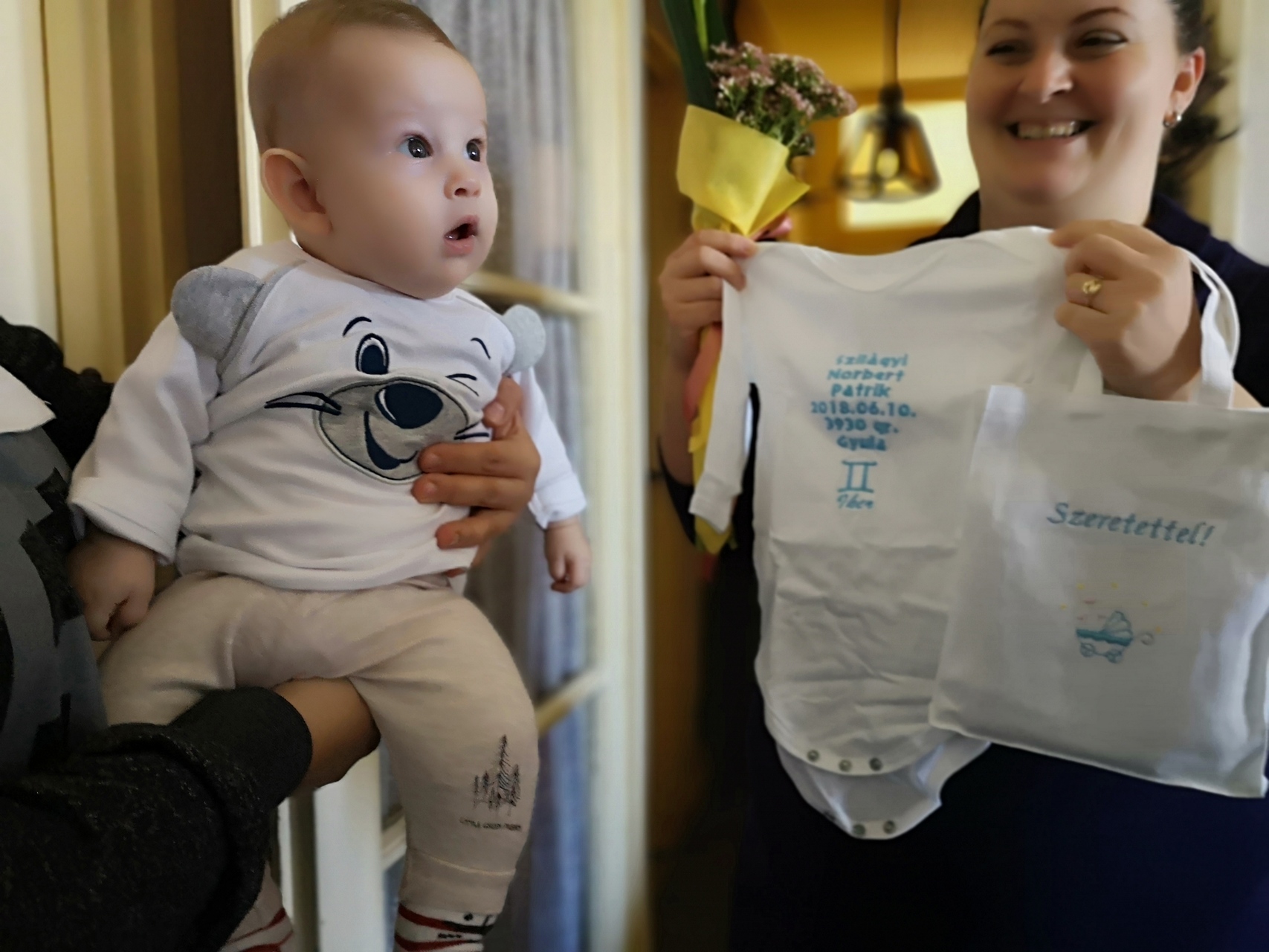 Az édesanya egy szál rózsát, az apróság pedig a nevével hímzett ruhácskát és Póka György egyik festményét kapta ajándékba a városvezetőtől.