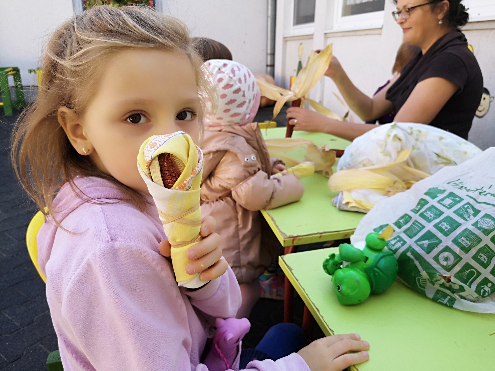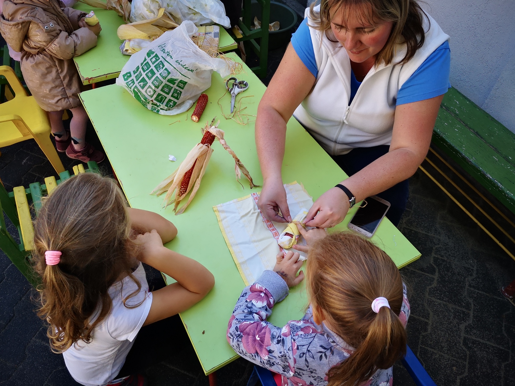 – Kenyeret is sütünk, így láthatják, hogy a kenyér milyen alapanyagokból és hogyan készül. A szőlőpréselés során azt is megtudhatják, hogy egy-egy üdítőitalnak mi az alapanyaga. A közös főzés során megismerik az ízeket, és azt, hogy hogyan készül például egy leves. A kukoricacsuhéból babákat készítünk, ebben az óvó nénik is segítenek a legkisebbeknek – tette hozzá.