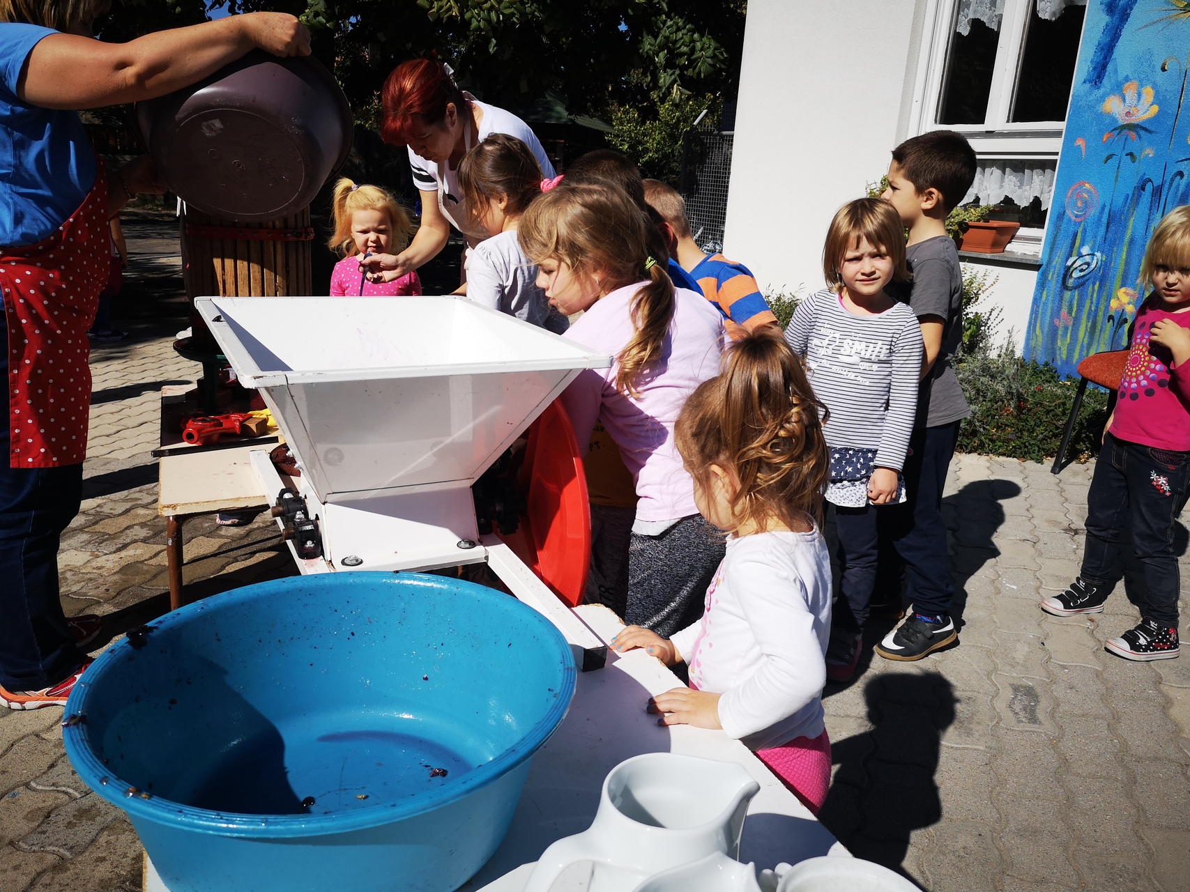 Szüreti mulatságot tartottak szeptember 28-án a németvárosi óvodában. A programon a gyerekek nemcsak szőlőt préselhettek, hanem őszi zöldségeket kóstolhattak, és kolbászfalatkákat lopkodhattak a készülő babgulyás hozzávalói közül.