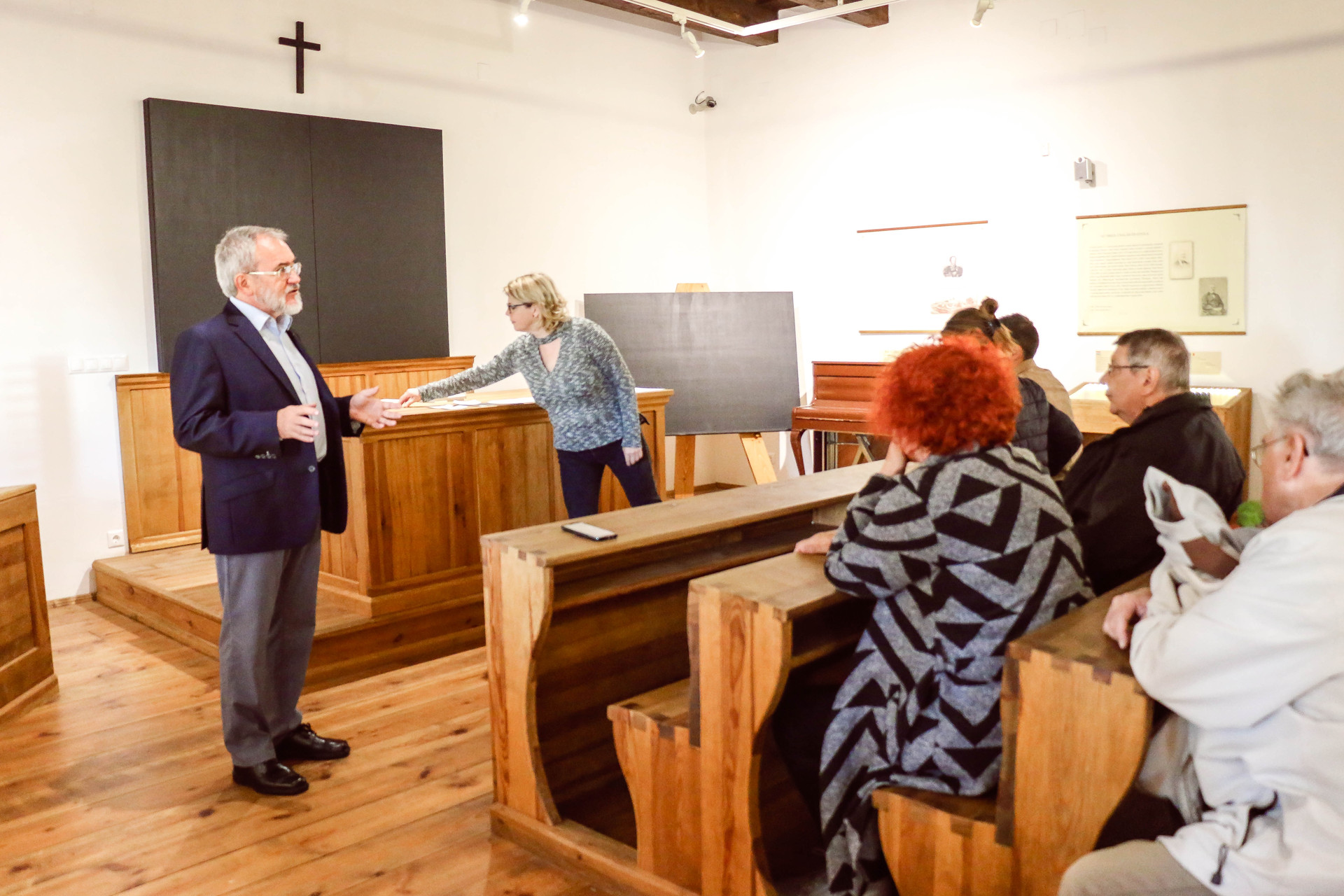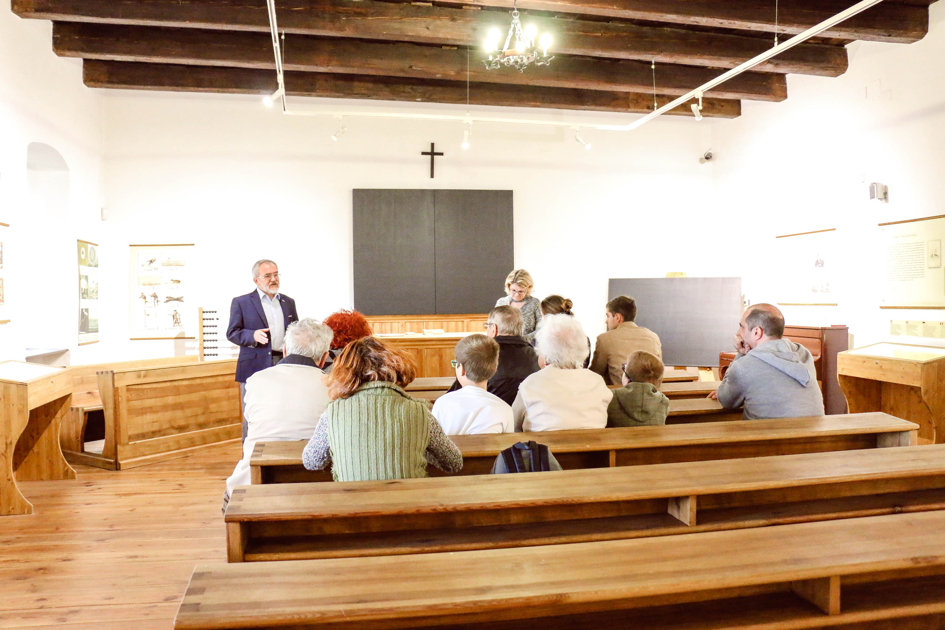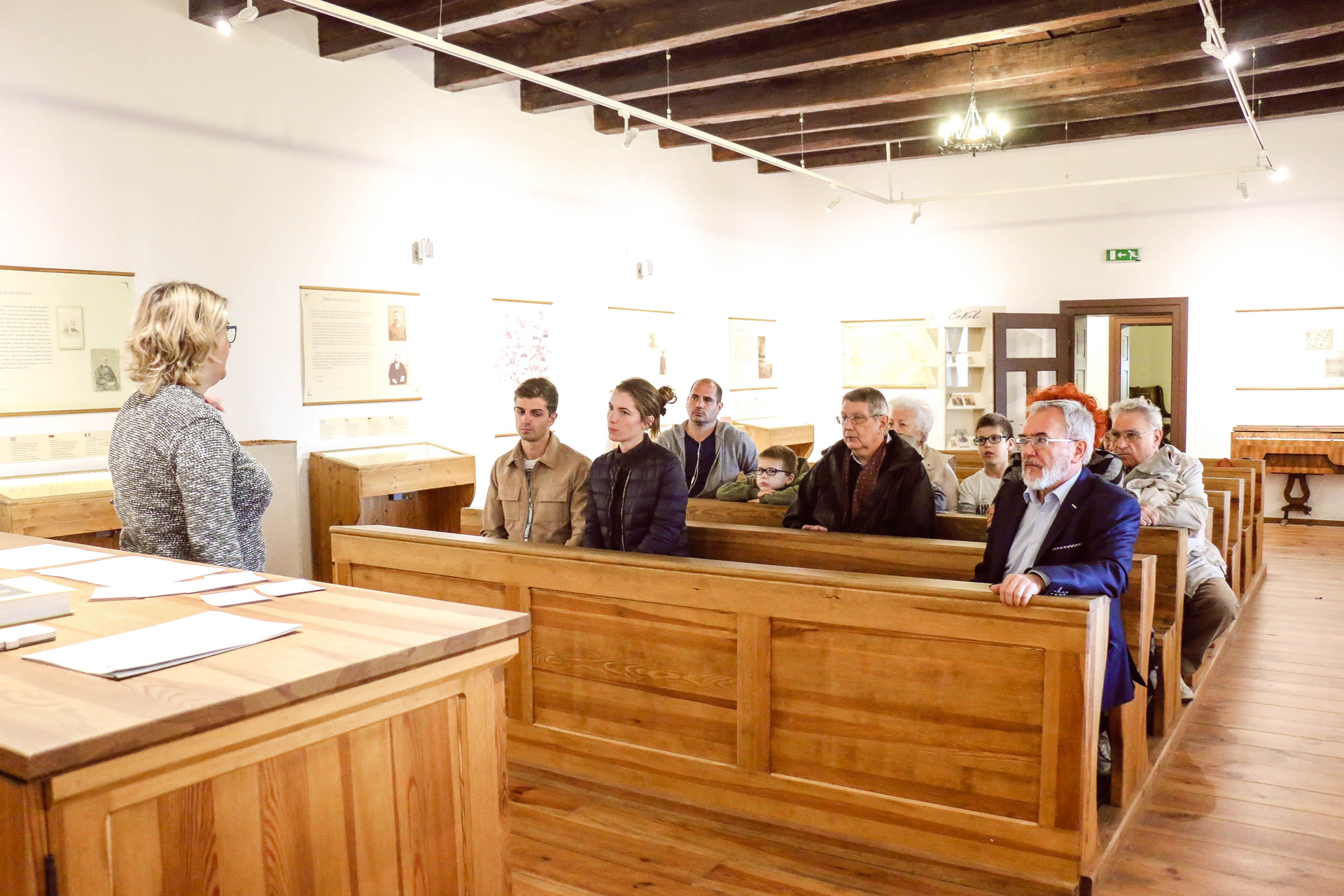 Erkel Ferenc szülőházában, az első németvárosi iskola épületében két ismert gyulai értelmiségi, Erdészné Németi Anikó magyar-történelem szakos gimnáziumi tanár és dr. Erdész Ádám, a Magyar Nemzeti Levéltár Békés Megyei Levéltárának igazgatója tartott előadást. A háromnegyed órásra tervezett összejövetelen arról hallhattunk, mire helyezték a hangsúlyt kétszáz évvel ezelőtt a magyarországi iskolákban, és hogy Erkel Ferenc, nemzeti himnuszunk megzenésítője milyen oktatásban részesült.