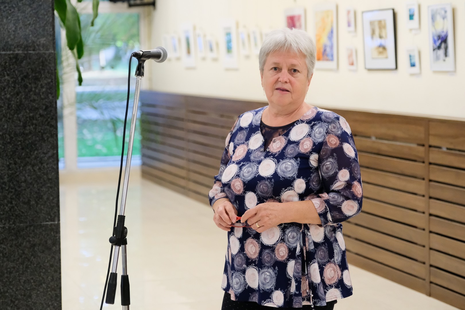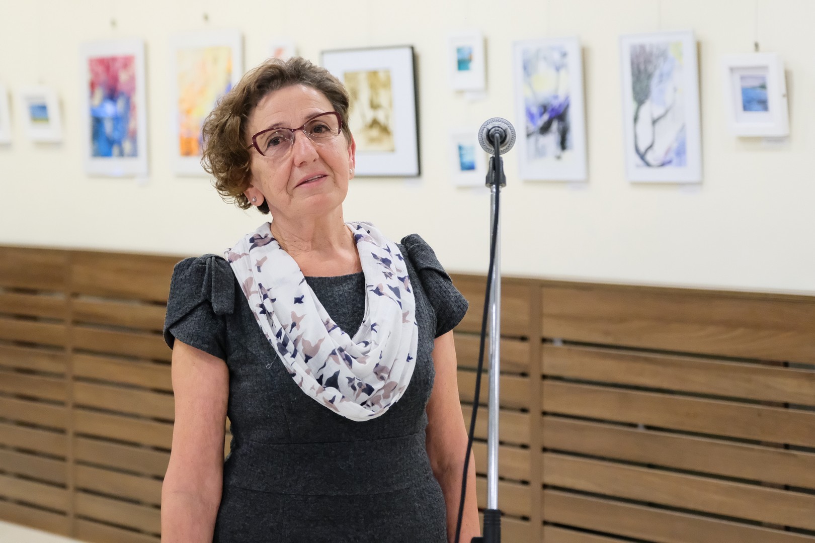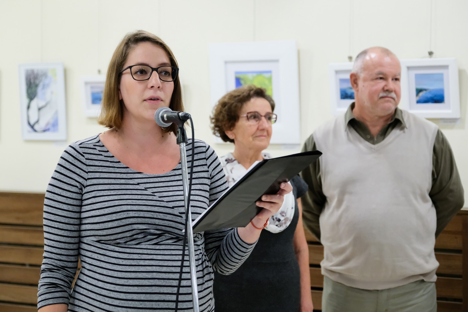 Pásztorné Rita, aki Békéscsabán él és alkot, elsősorban a művelődési központ munkatársainak a segítségét köszönte meg. A tárlatra azokat a festményeit hozta el, amelyeket önmaga is nagyon kedvel, és szeretné, ha ezek színesebbé tennék a befogadók hétköznapjait, csendes megnyugvást jelentenének egy-egy dolgos nap vagy hét után a szemlélőnek.