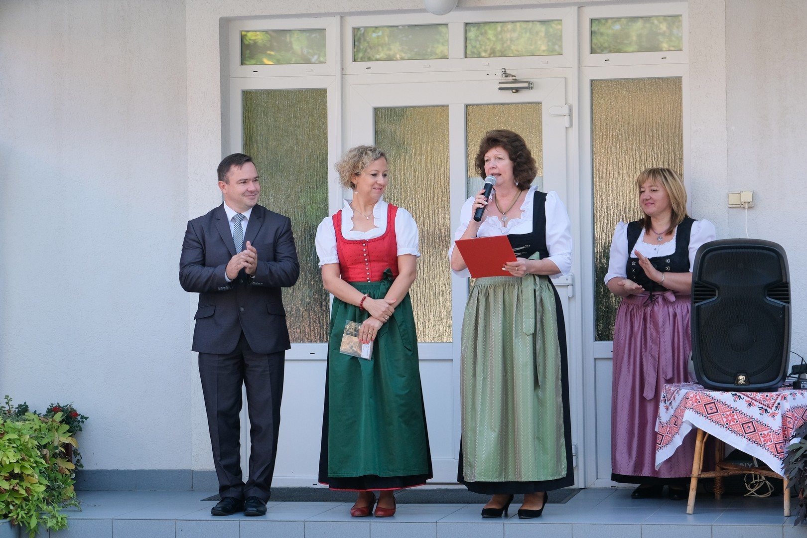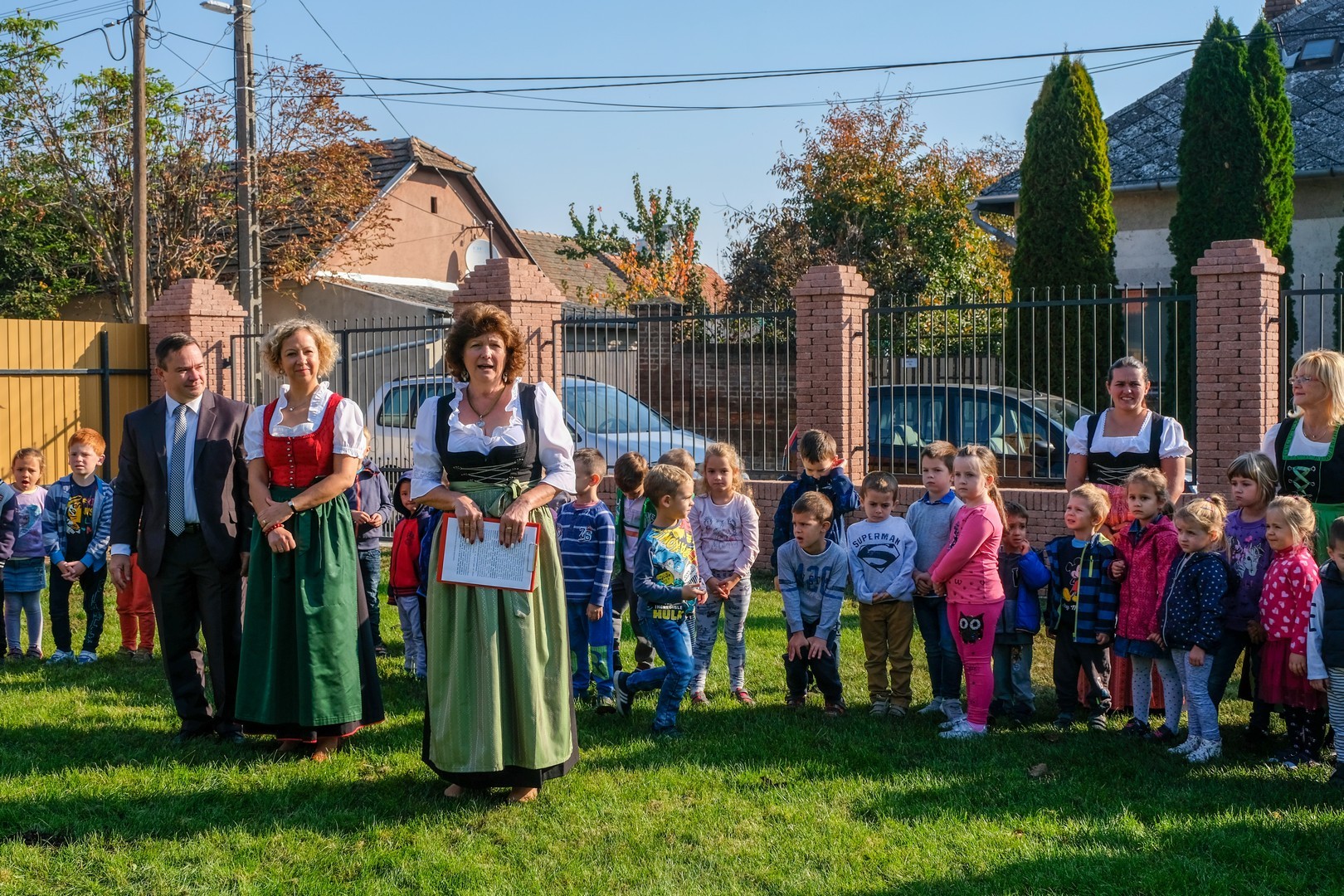Az ünneplőket Szilágyiné Solymosi Mária intézményvezető köszöntötte, aki elmondta, az ünnepnapon az elmúlt 150 év azon eseményeit szeretnék bemutatni, felidézni, amelyek során a Komáromi utcai óvodából a város német óvodája lett, azaz Németgyula óvodájából Gyula város német nemzetiségi óvodája. Az óvodapedagógus Márai Sándort idézte, és kifejtette: gyermeket nevelni és hagyományt őrizni, csoda, de gyermeket hagyományőrzésre nevelni a legnagyobb csoda, olyan csoda, amit nem lehet megmagyarázni.