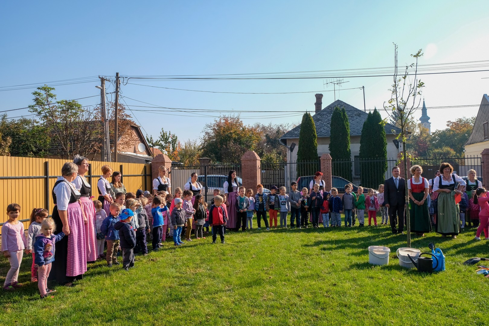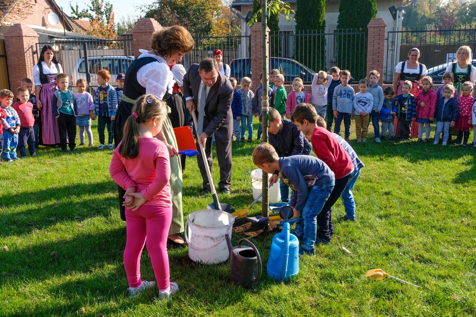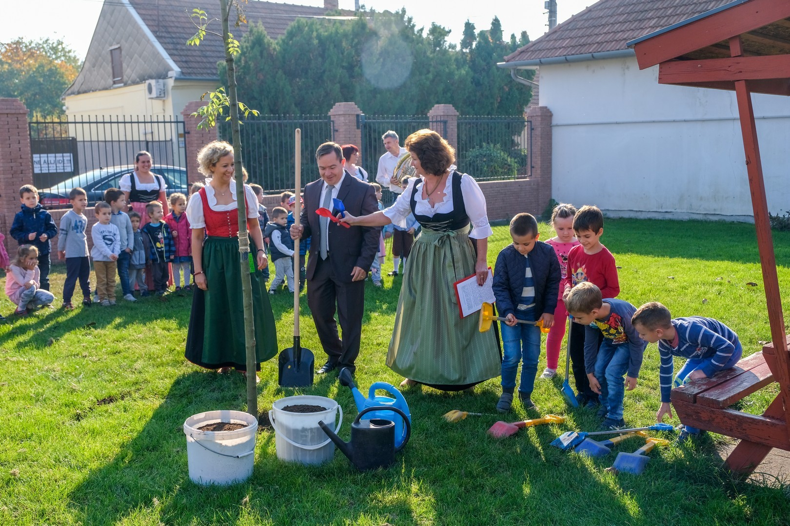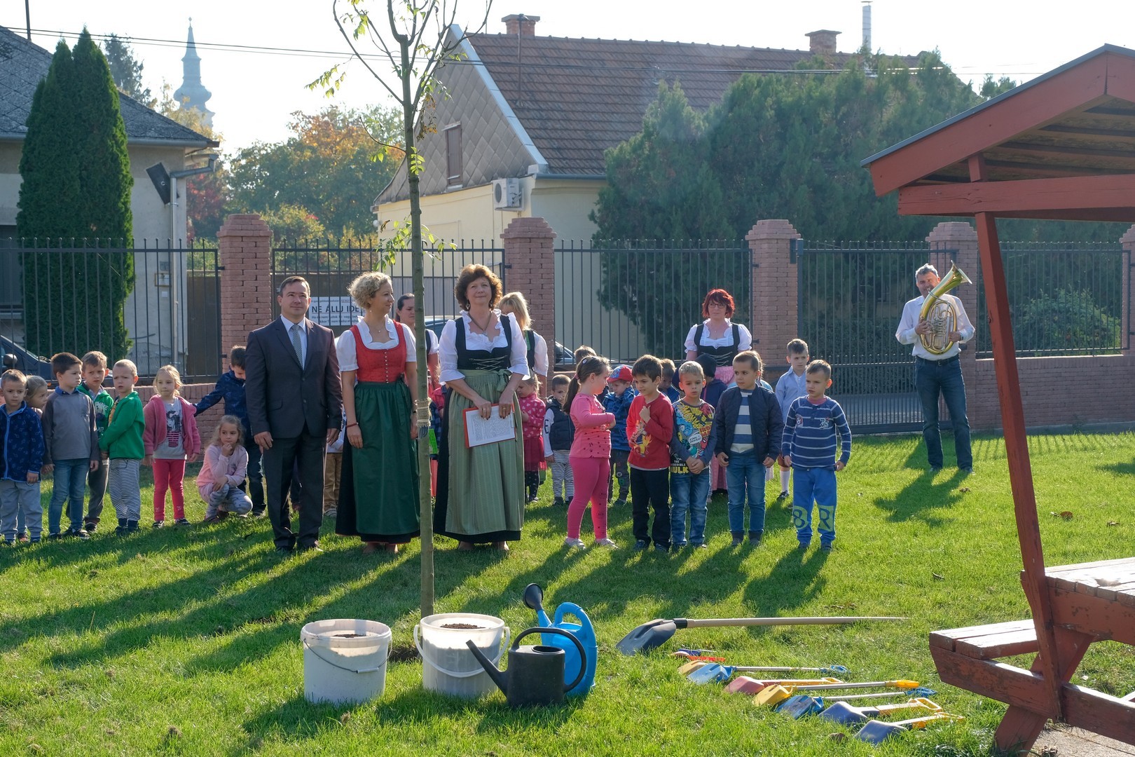 A hivatalos beszédek elhangzása után az ovisok képviselői elültettek az udvaron egy magas kőrist, mert gyorsan nő, s így hamar ad majd árnyékot a nyári melegben, és mert remélhetően 150 év múlva is élni fog. Mindeközben Döge Csaba zenetanár trombitán játszott.