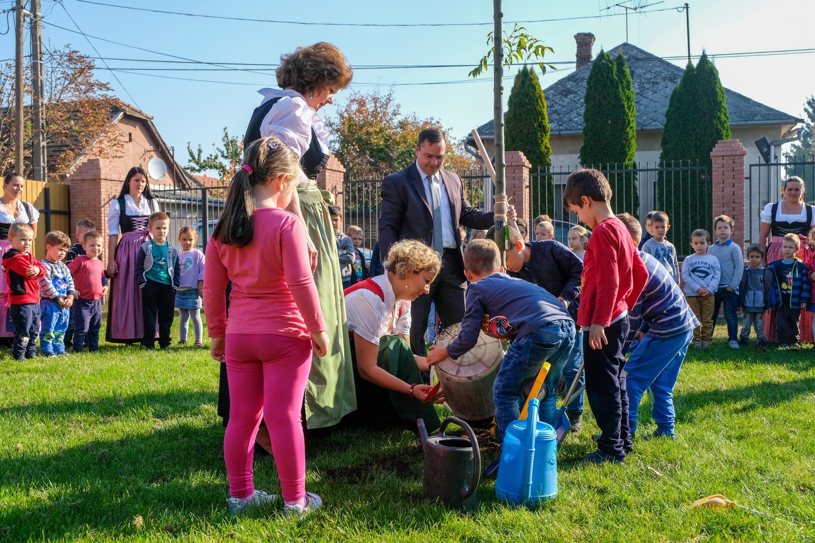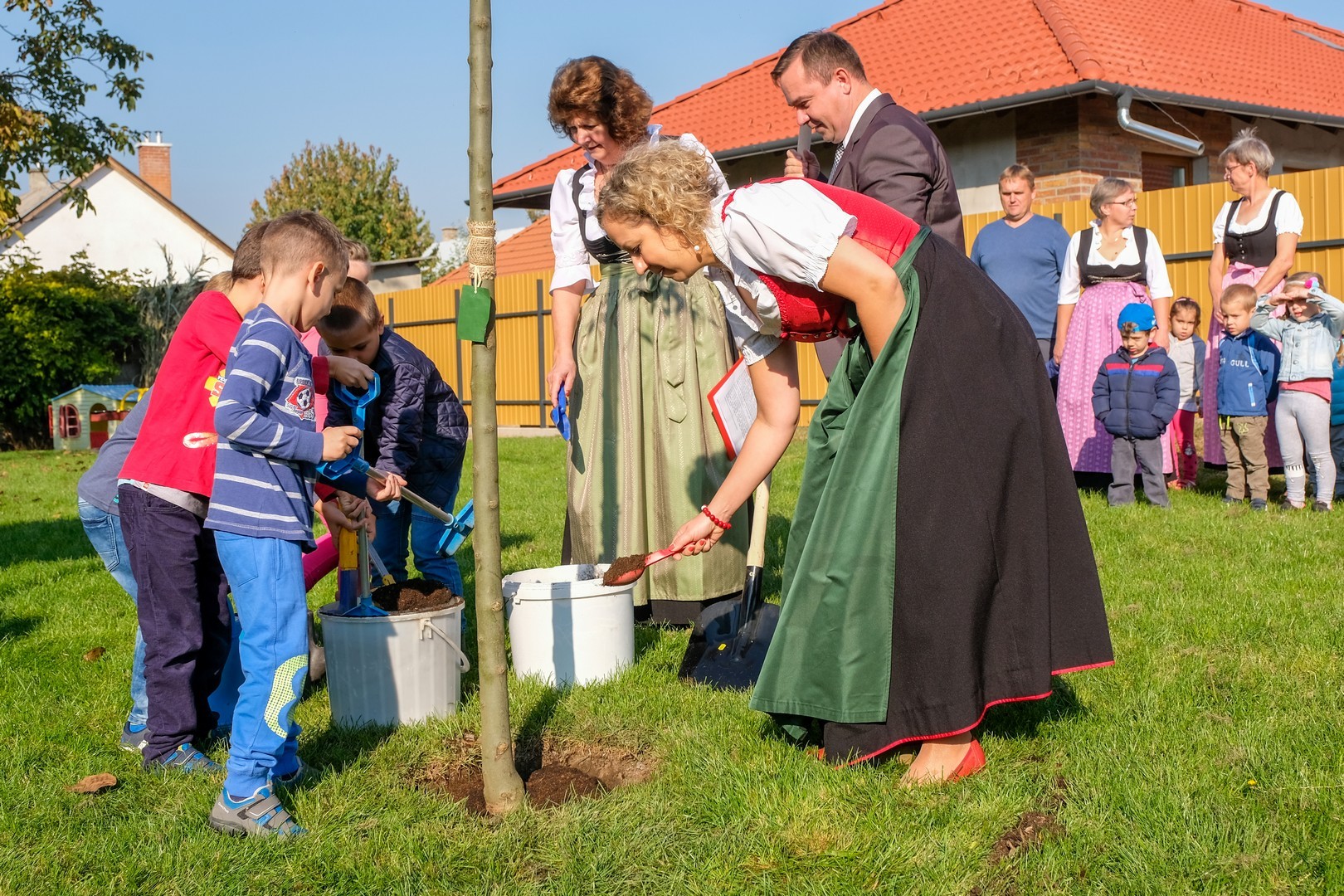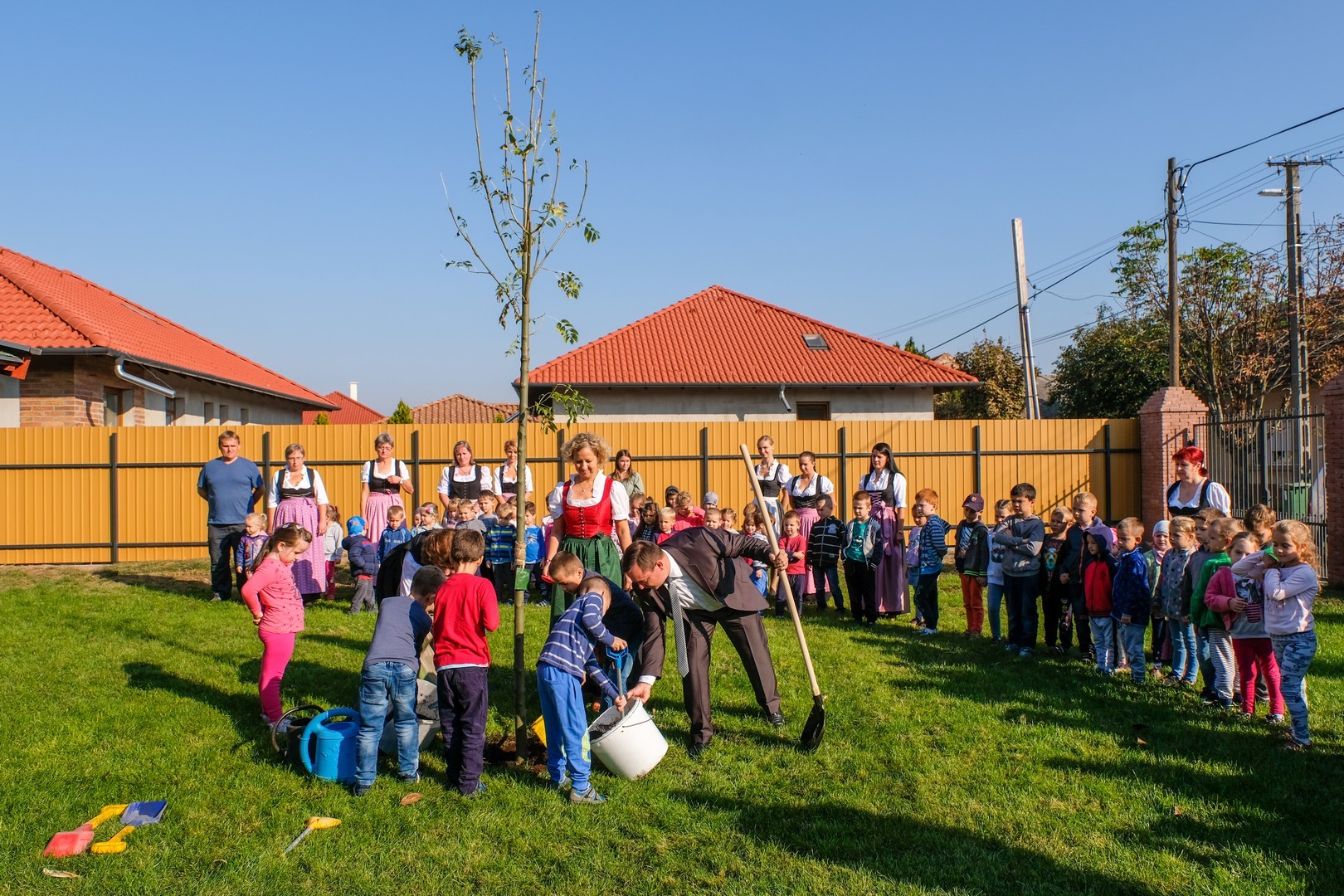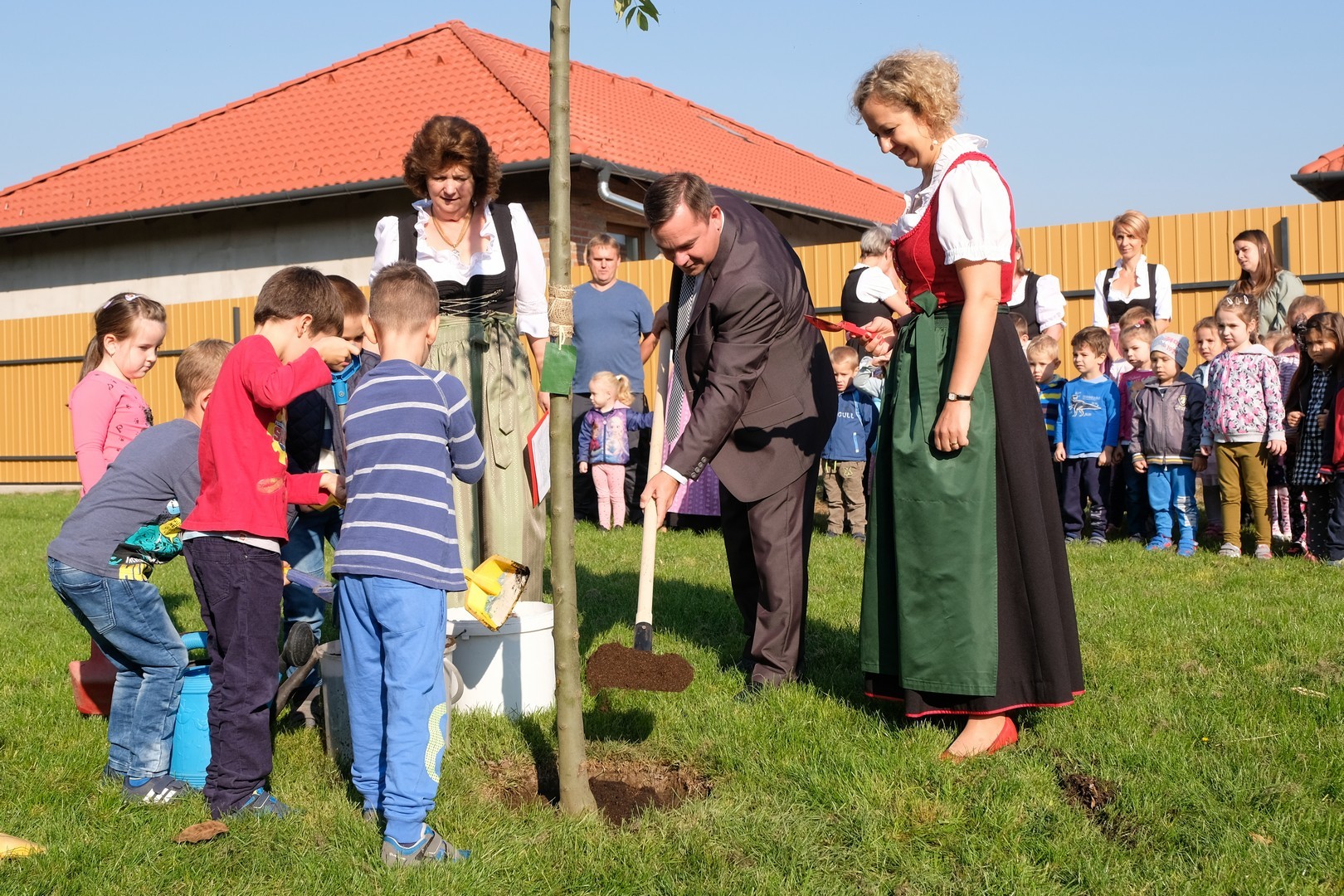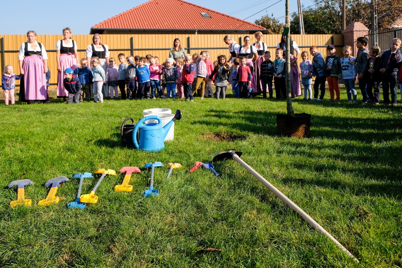 A hivatalos beszédek elhangzása után az ovisok képviselői elültettek az udvaron egy magas kőrist, mert gyorsan nő, s így hamar ad majd árnyékot a nyári melegben, és mert remélhetően 150 év múlva is élni fog. Mindeközben Döge Csaba zenetanár trombitán játszott.