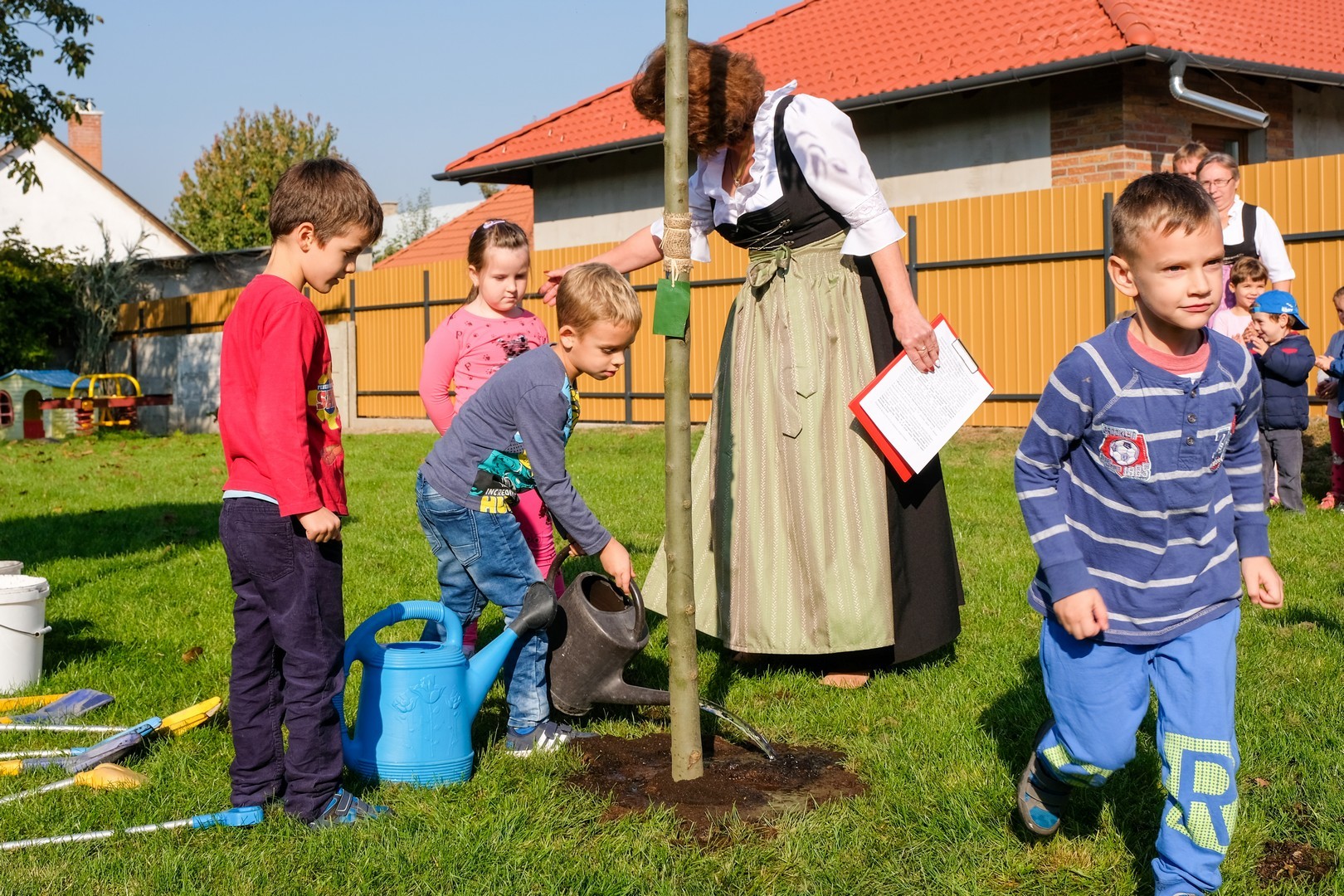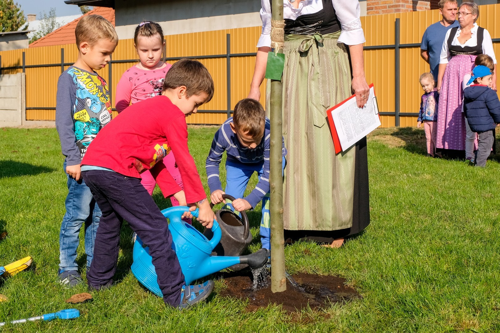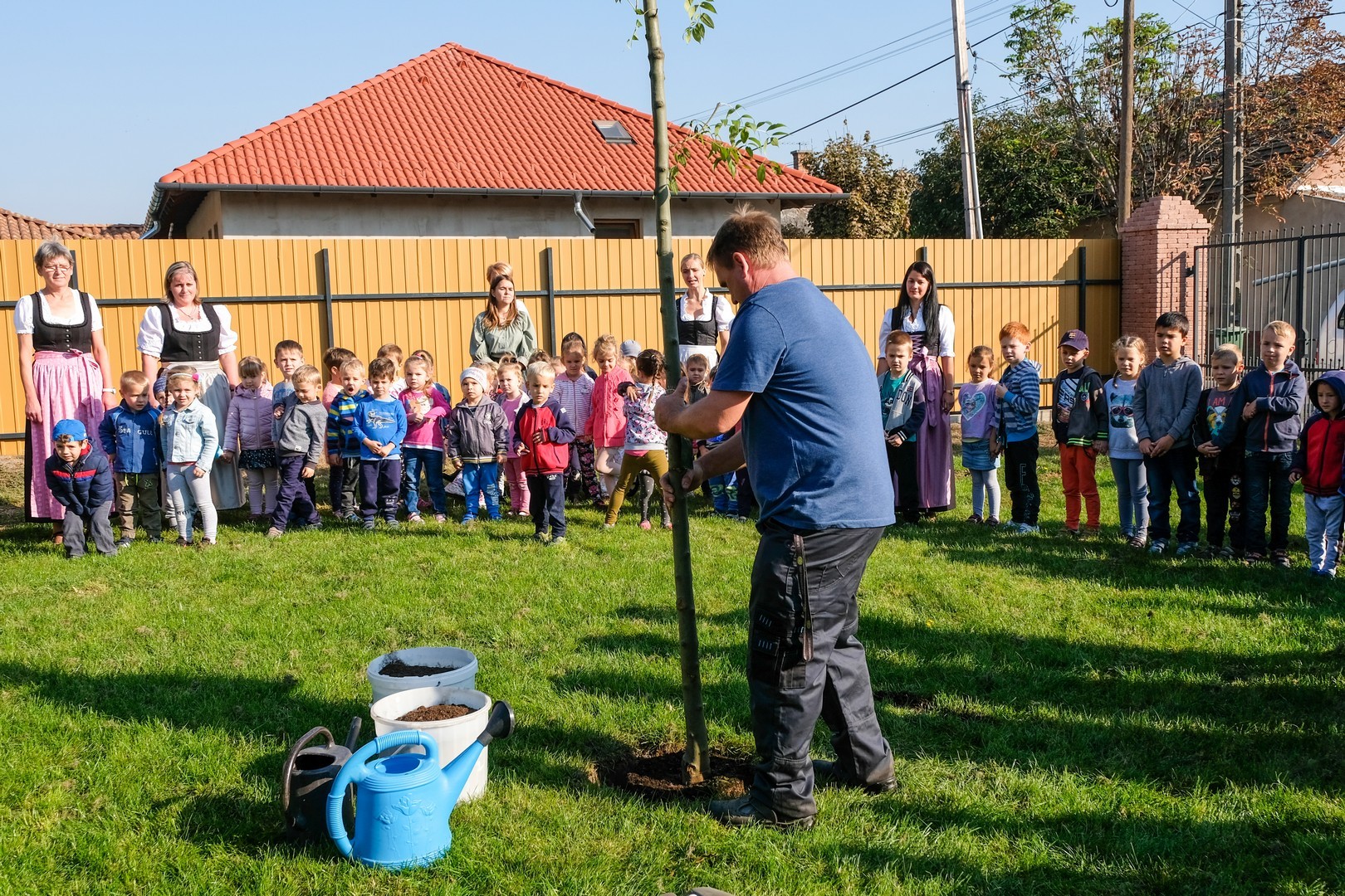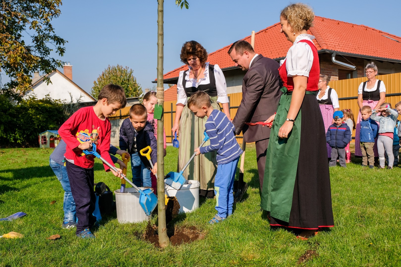 A hivatalos beszédek elhangzása után az ovisok képviselői elültettek az udvaron egy magas kőrist, mert gyorsan nő, s így hamar ad majd árnyékot a nyári melegben, és mert remélhetően 150 év múlva is élni fog. Mindeközben Döge Csaba zenetanár trombitán játszott.