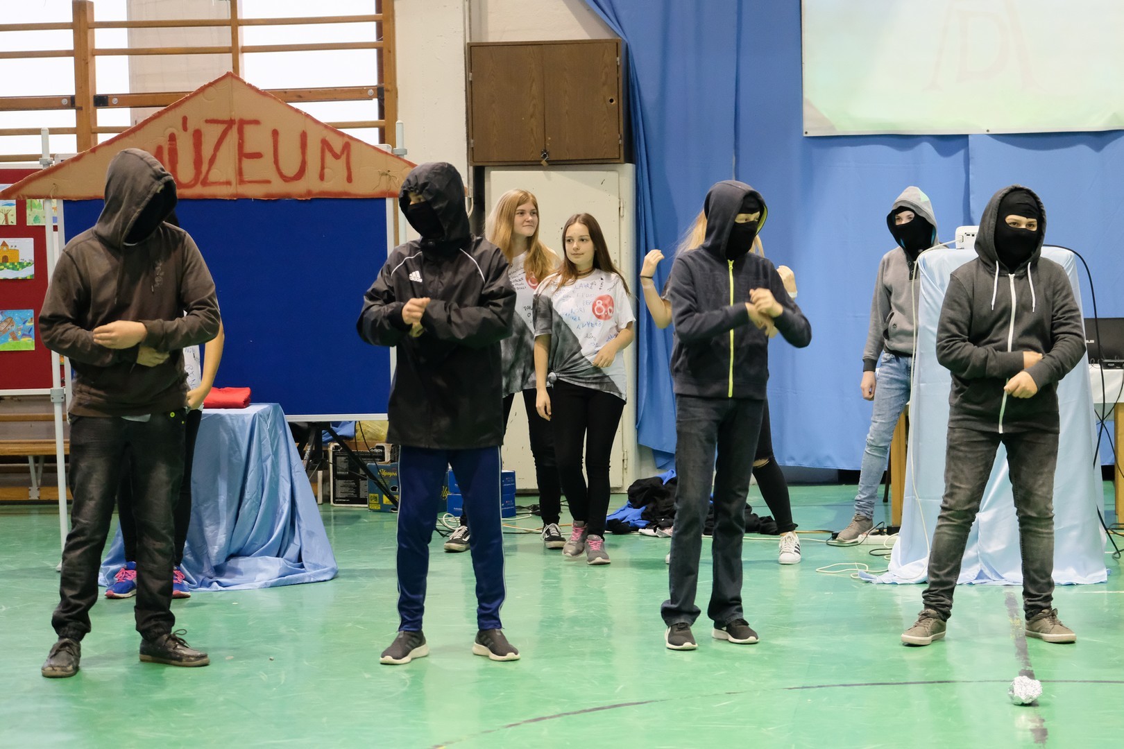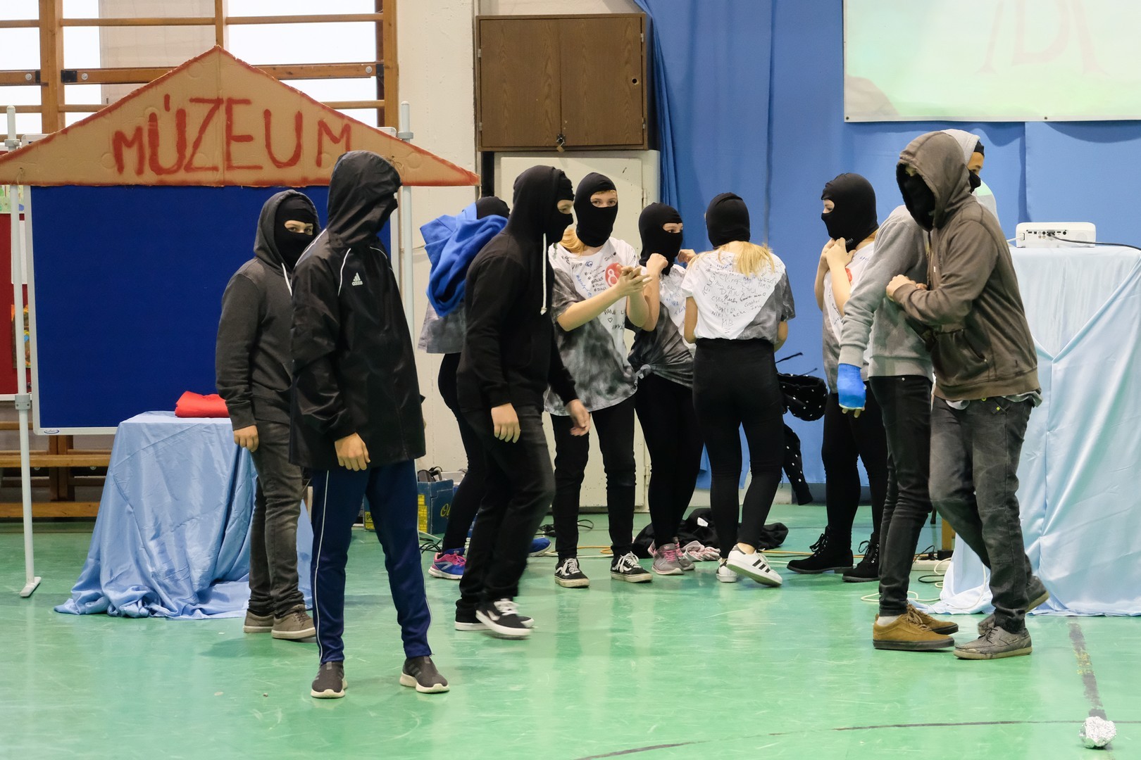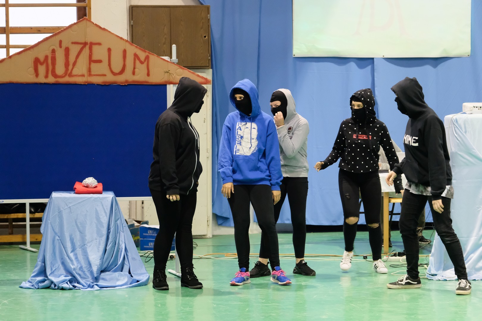 – Ez egy kis színpadi előadás, amelyben egy nyomozás történetét mutatjuk be. A történet szerint a fiatalok egy gyémántot keresnek, én leszek a nyomozó, aki az előadás végén érkezik a színpadra. A diákok saját maguk találták ki az egész darabot, még a zenék vágását is ők készítették el. Szerettek volna gengszterek lenni, maszkot viselni, így alakult ki a nyomozós történet – árulta el.