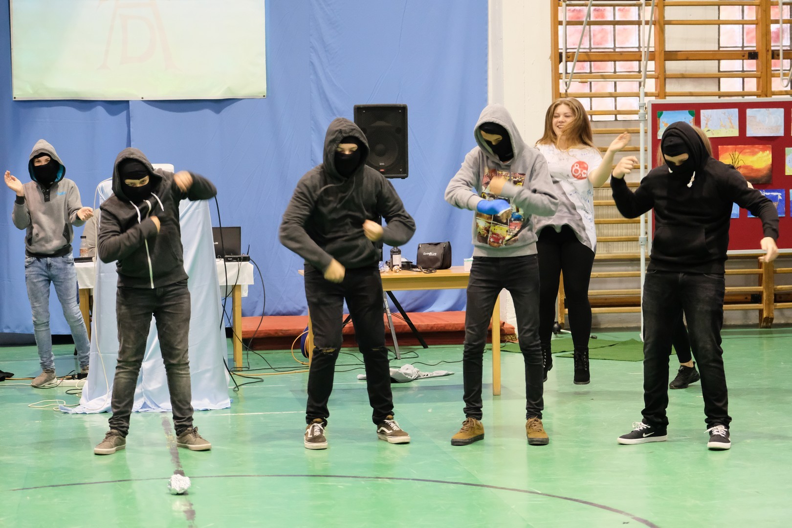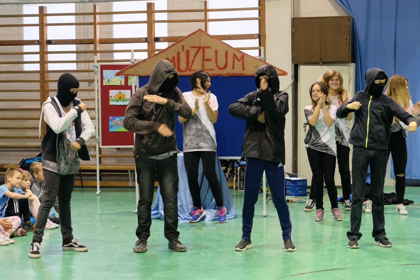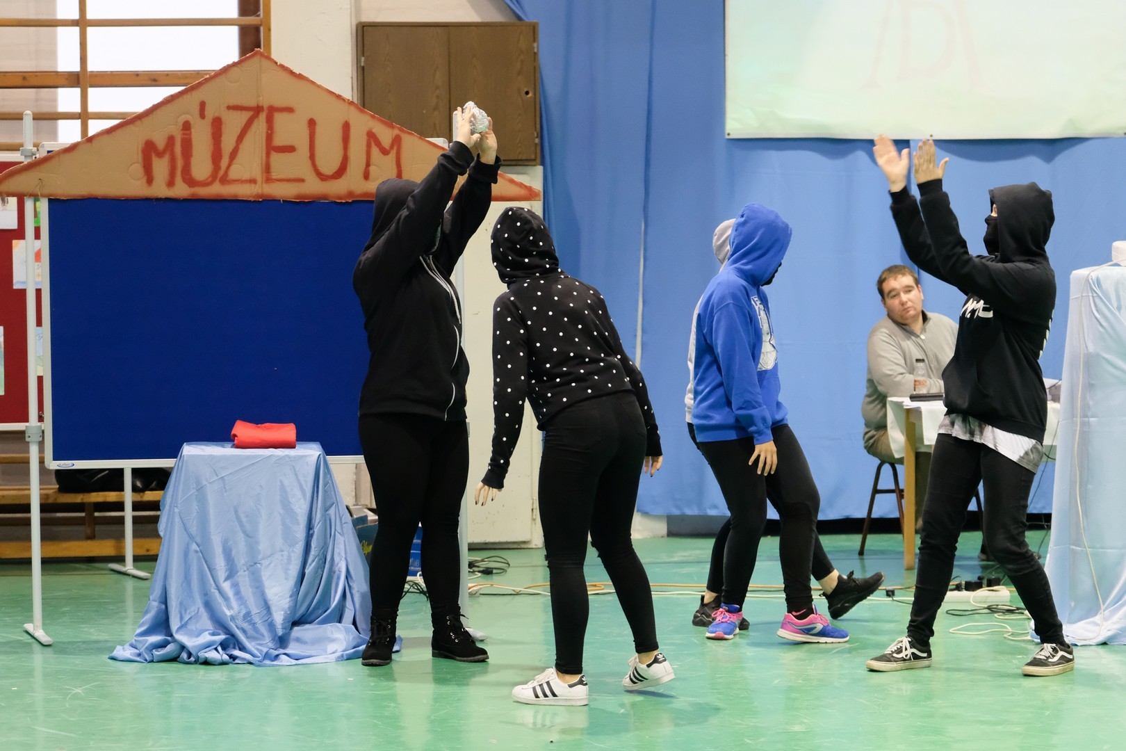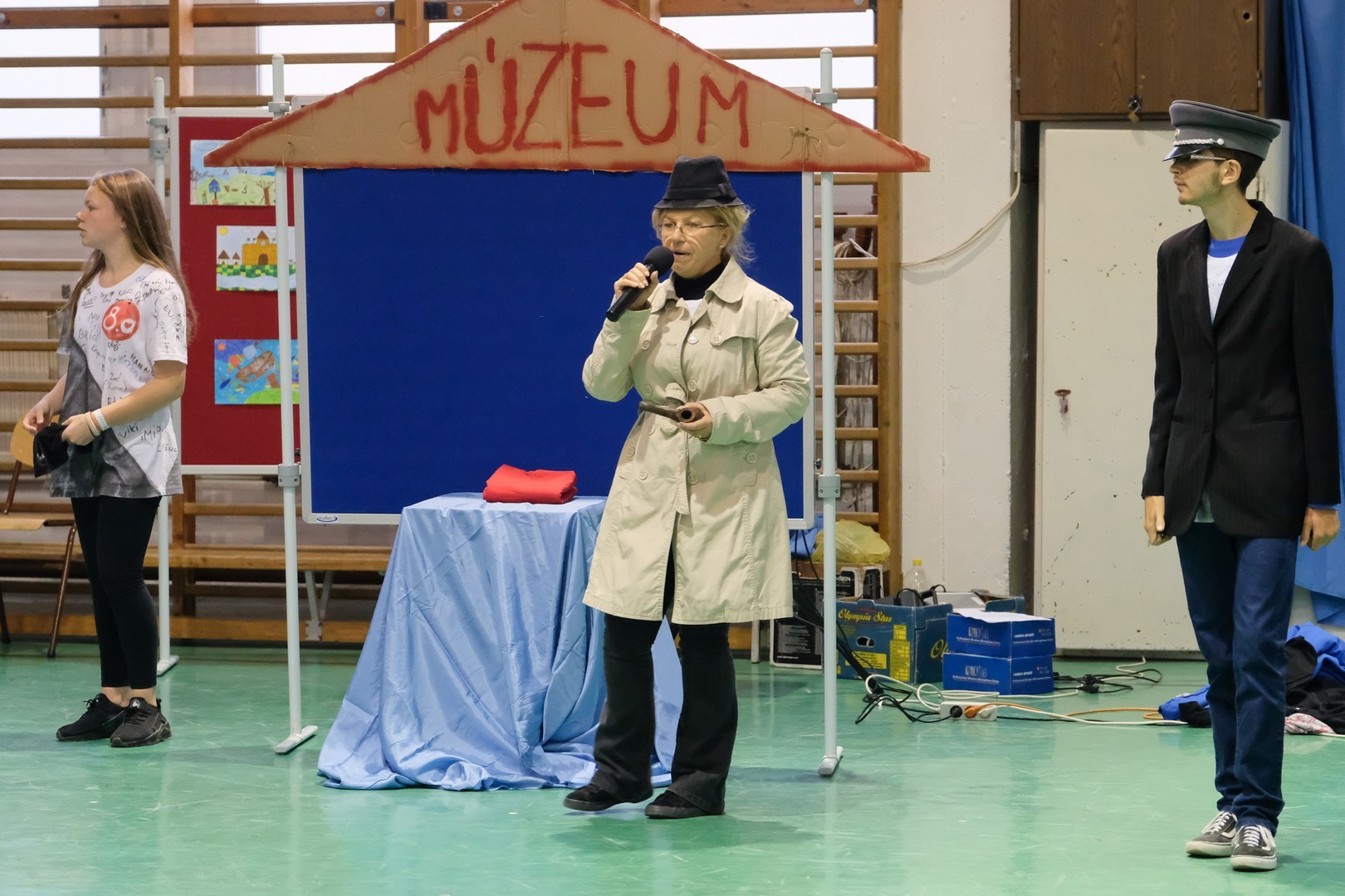 – Ez egy kis színpadi előadás, amelyben egy nyomozás történetét mutatjuk be. A történet szerint a fiatalok egy gyémántot keresnek, én leszek a nyomozó, aki az előadás végén érkezik a színpadra. A diákok saját maguk találták ki az egész darabot, még a zenék vágását is ők készítették el. Szerettek volna gengszterek lenni, maszkot viselni, így alakult ki a nyomozós történet – árulta el.