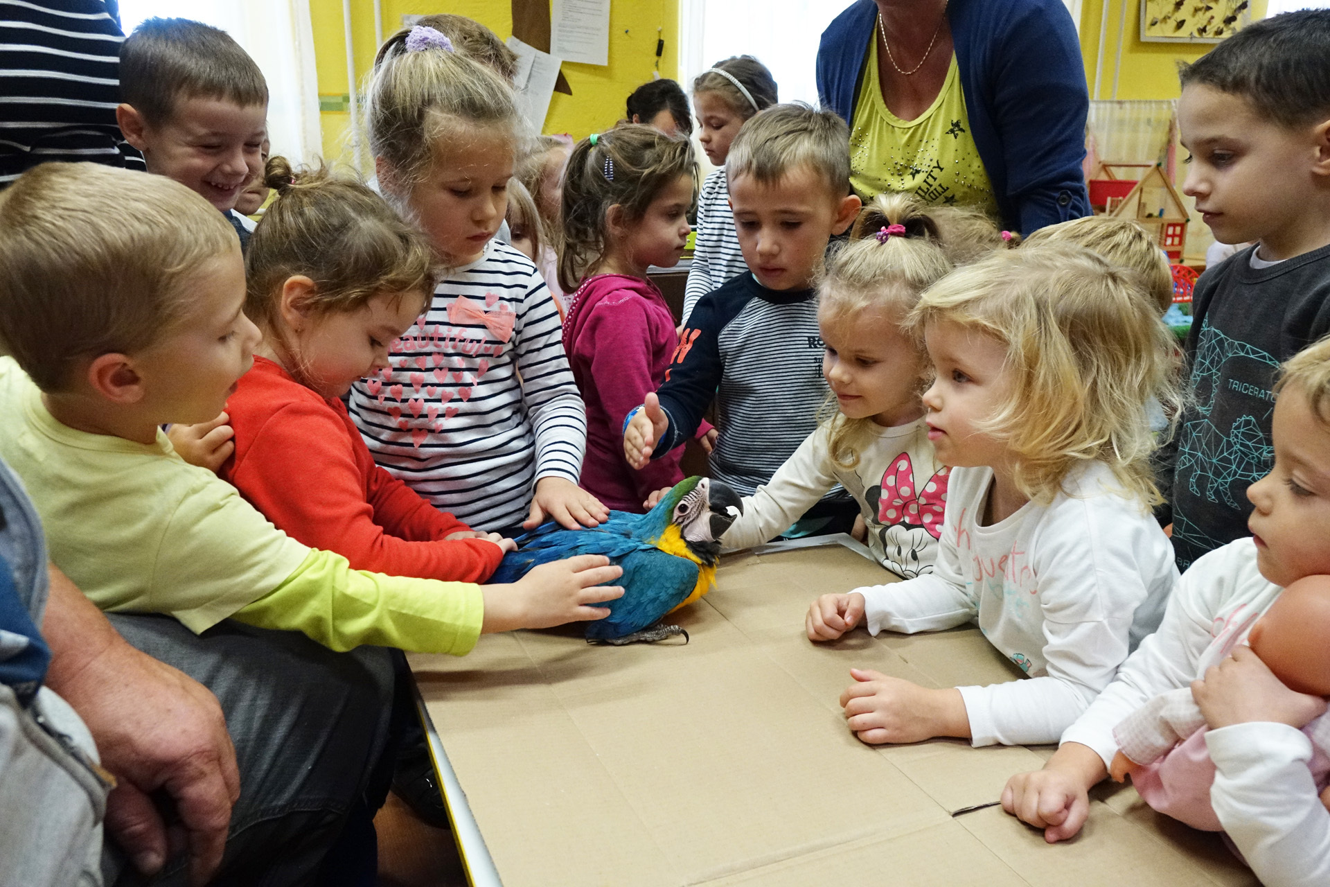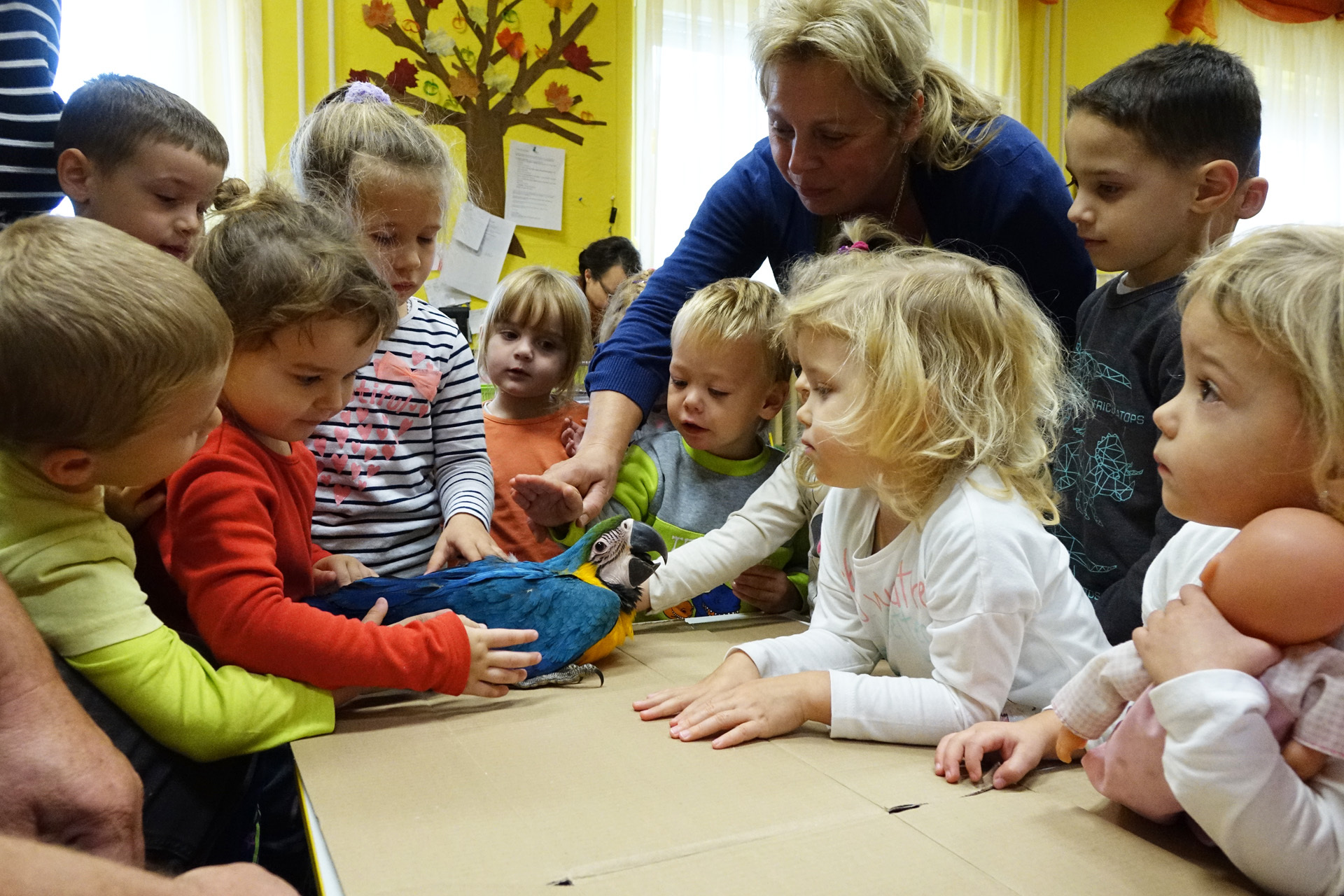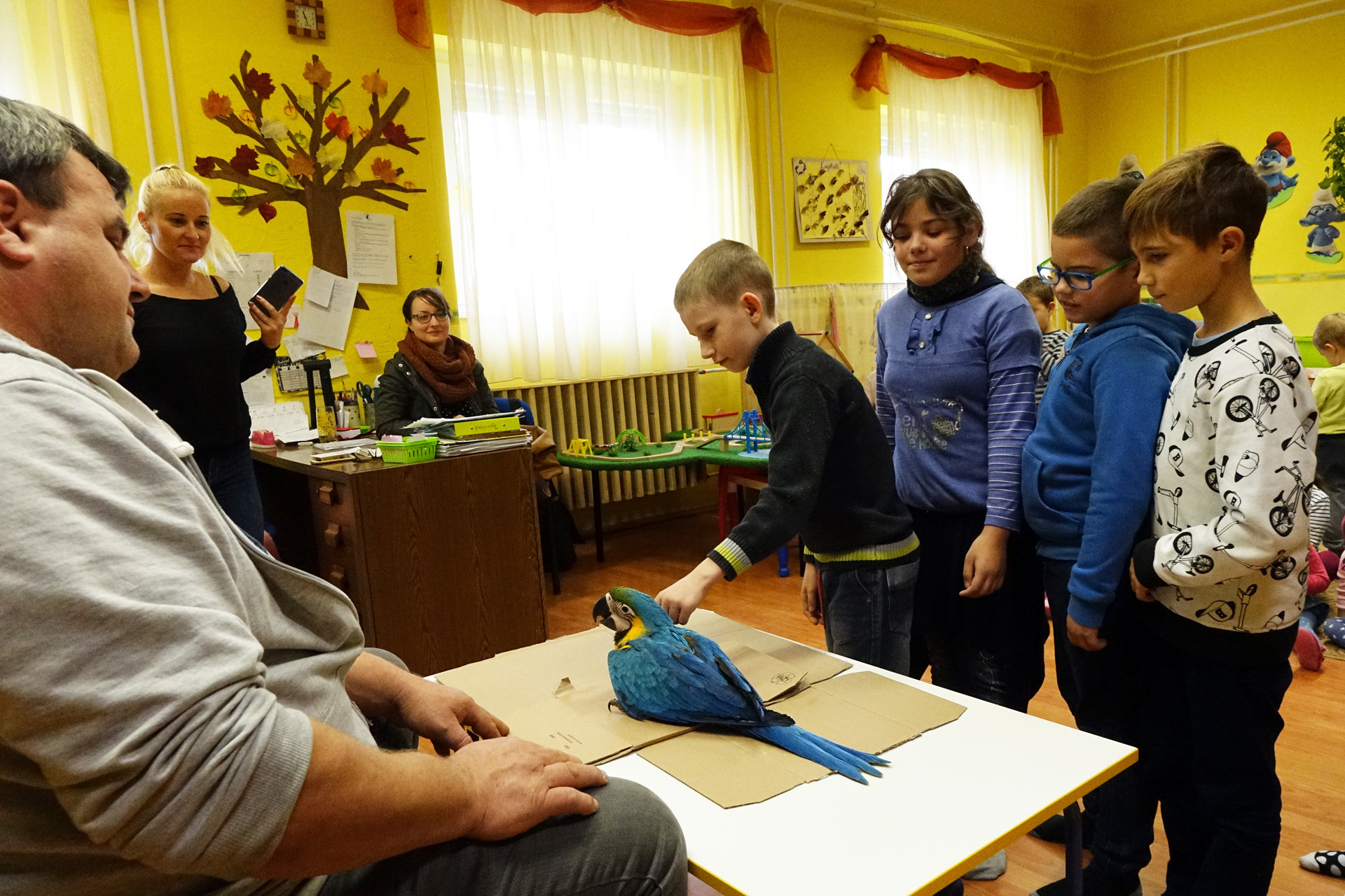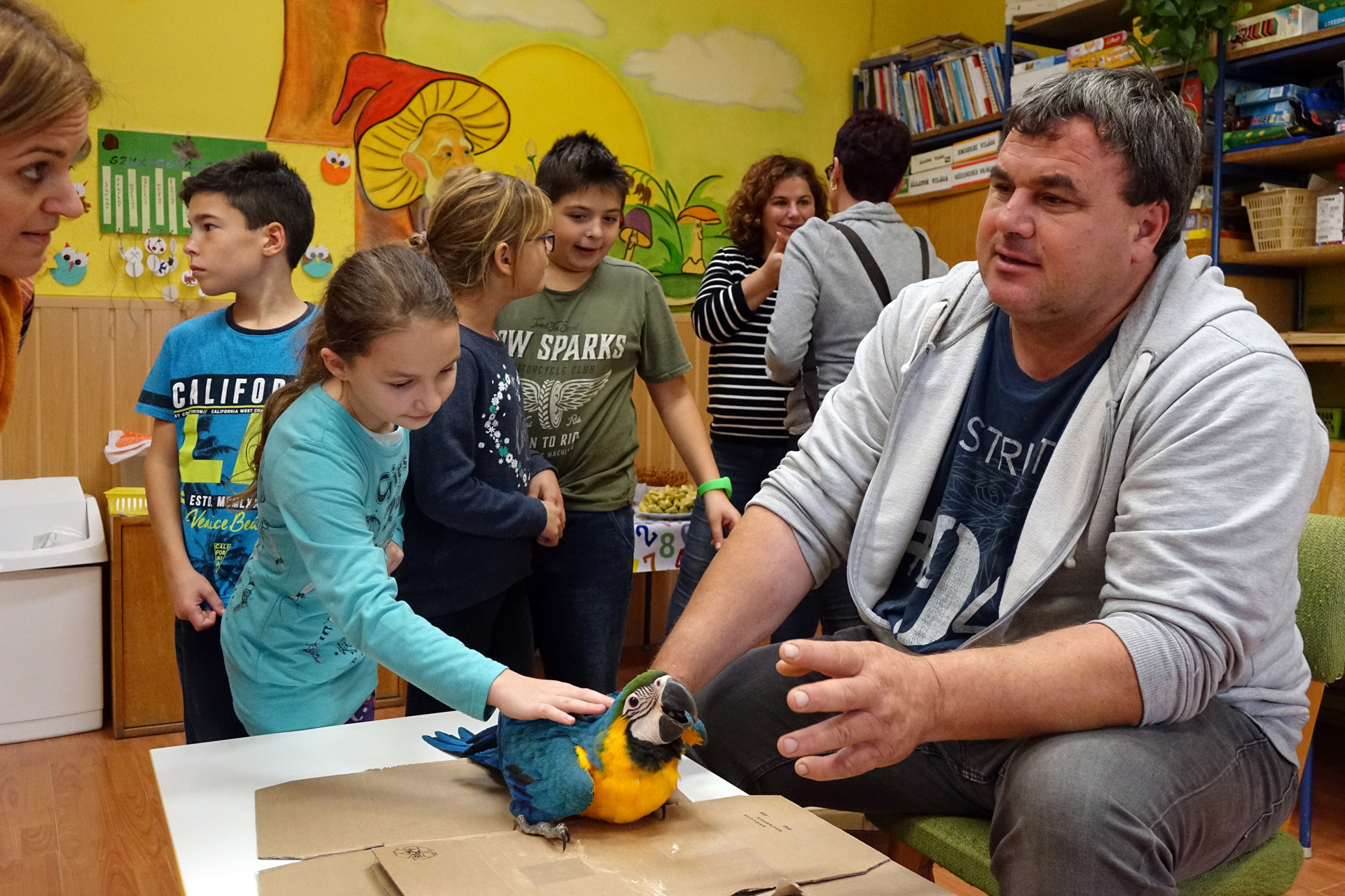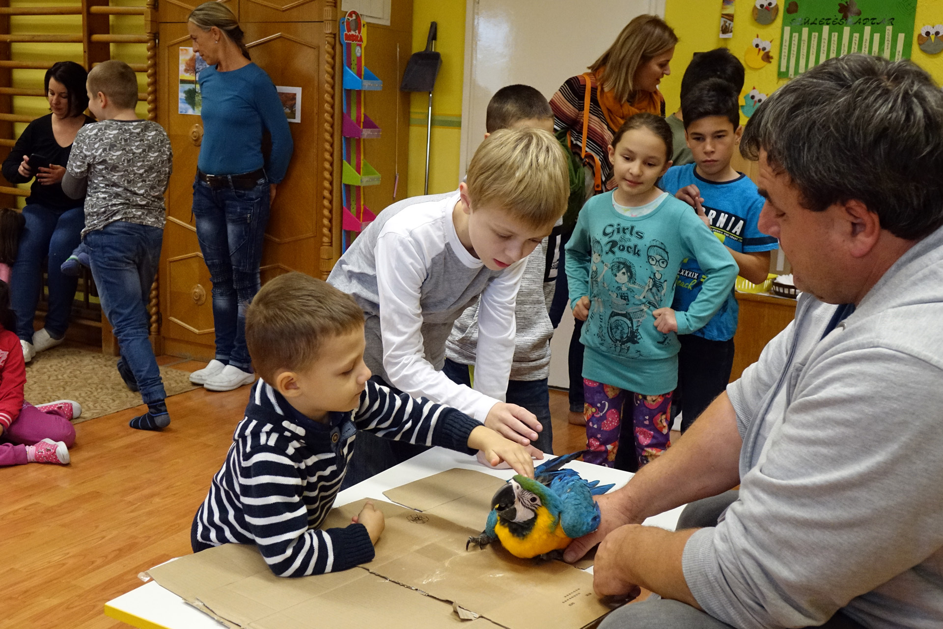 A tagintézményben ottjártunkkor Fülöp János madarász tartott szakkört az óvodásoknak és az Implom-iskola egyik osztályának. A gyerekek a szakember jóvoltából egy fiatal arapapagájt is szemügyre vehettek közelebbről.