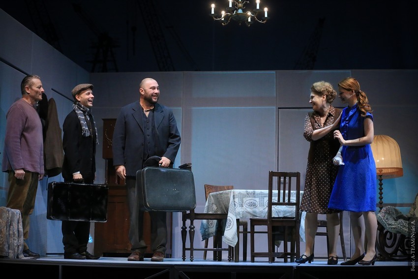 Míg a Jászai Mari- és Kossuth-díja Szakács Györgyi jelmezei nagyon egyszerűek, hétköznapiak, a díszlet annál beszédesebb. Eddiék lakószobájában játszódik mindkét felvonás, a lakás vékony falai körül lépcsők, átjárók jelzik a szűkebb környezetet. Távolabb a ház fölé magasodnak a brooklyni kikötő óriásdarui, mintegy bezárva, rabságban tartva, „megfigyelve” az ötvenes évek dokkmunkásait. Megpecsételve sorsukat, hogy innen nincs kitörés. Vagy mégis? Vagy mégsincs?