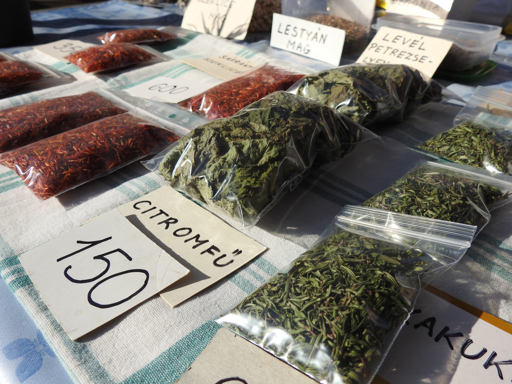 Ottjártunkkor az egyik standnál kakukkfüvet, citromfüvet, sáfrányos szeklicét és kapormagot is találtunk. Mint megtudtuk, a szárított növényeket teaként és fűszerként is fogyasztják a vásárlók.