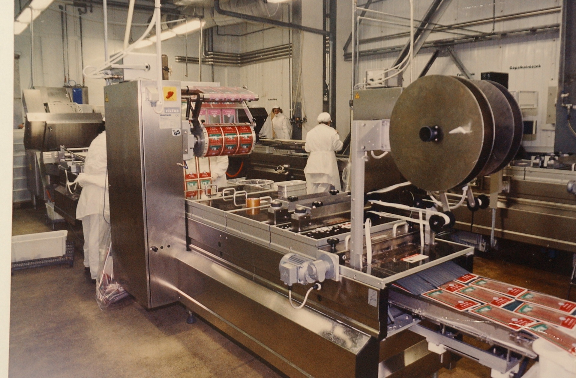 – Alighogy beindult az új üzem, szembe kerültünk az export alapfeltételét jelentő higiéniai fejlesztések végrehajtásának szükségességével.. Ez az évente megtartott belföldi és export állatorvosi szemlék tapasztalataiból következően folyamatos munka volt. Érintette az épületeket (burkolatok, szellőzés, rozsdamentes szerkezetek stb.), az épületgépészetet (82 ⁰C víz; 12 ⁰C teremhőfok; ezek regisztrálása stb.), de jó néhány technológiai berendezés cseréjét is. Jó példa erre a marha bőrfejtő cseréje, vagy a korszerű töltő gépek beállítása. Bővíteni kellett a hűtési kapacitást, kompresszorok kondenzátorok cseréjével. Megemlíthető a főzőkutter beállítása, ami nélkül a májas gyártása – egyáltalán a megalkotása, „feltalálása” – szóba sem kerülhetett volna. – sorolta Szabó László.