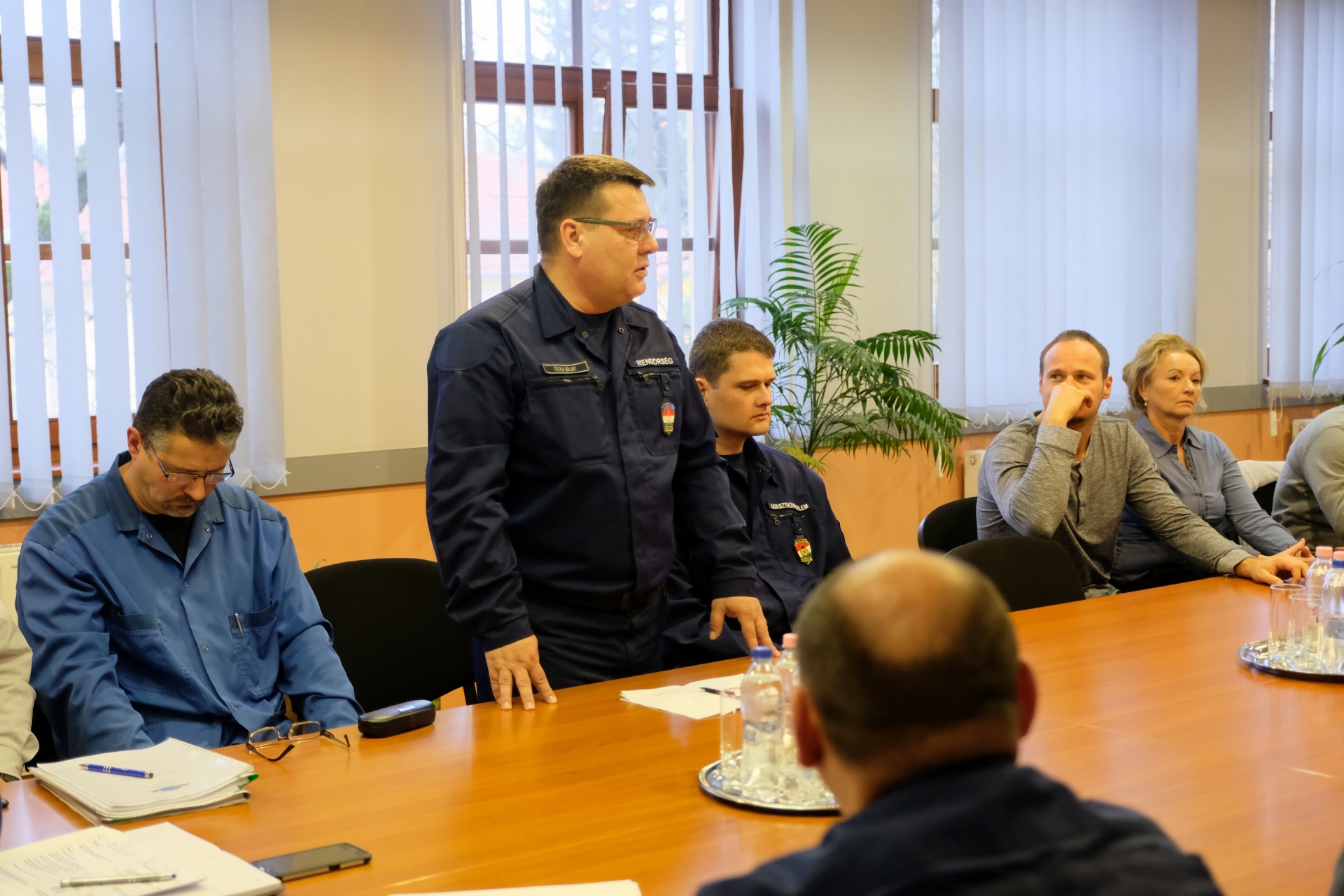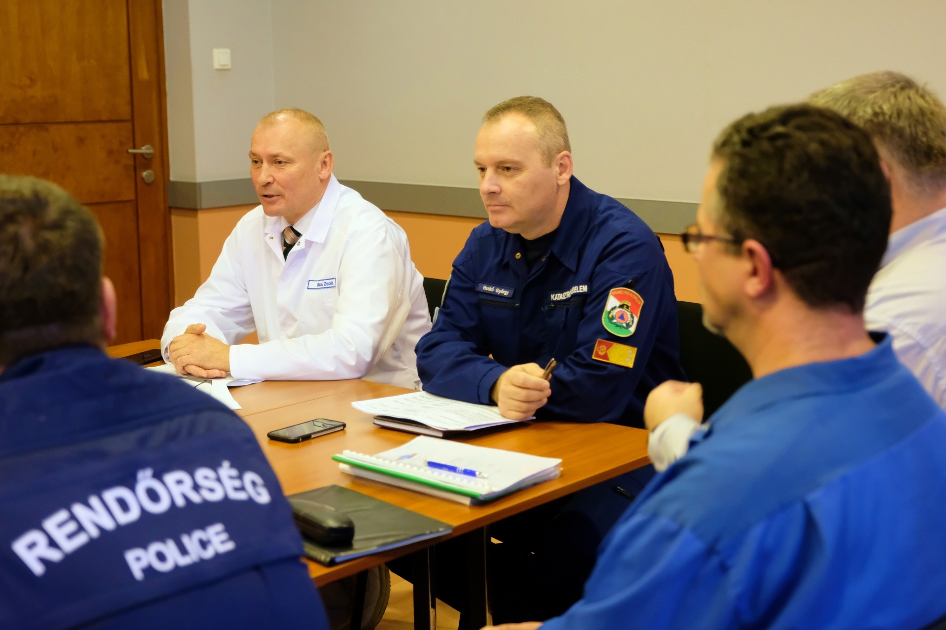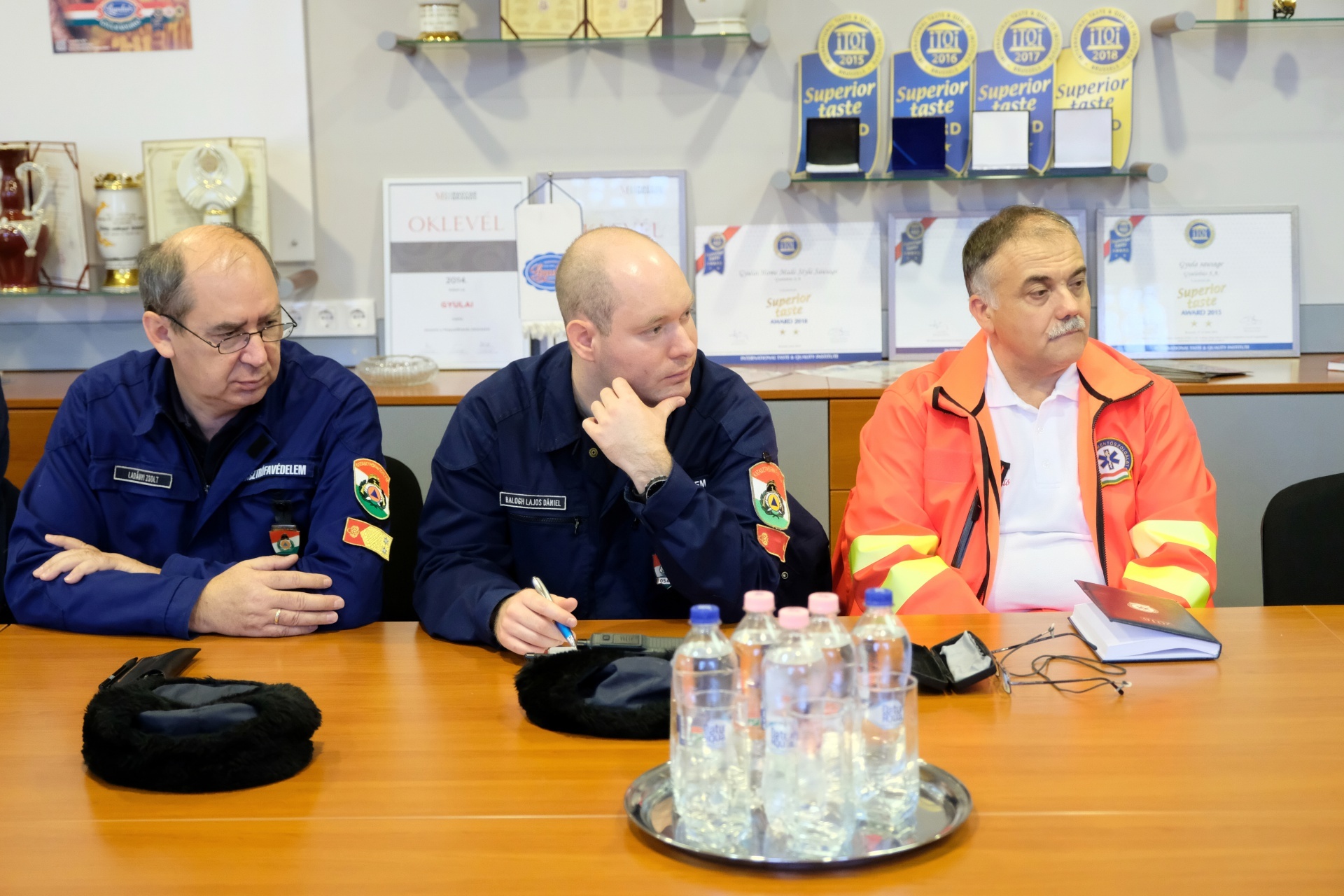 Tesztelték a Gyulahús Kft. vészhelyzeti jelzőrendszerét a cég Kétegyházi úti telephelyén november 21-én. A gyakorlat előtt az illetékes szervek a Béke sugárúti épületben tartottak megbeszélést. A részletekről Daka Zsolt ügyvezető számolt be nekünk.