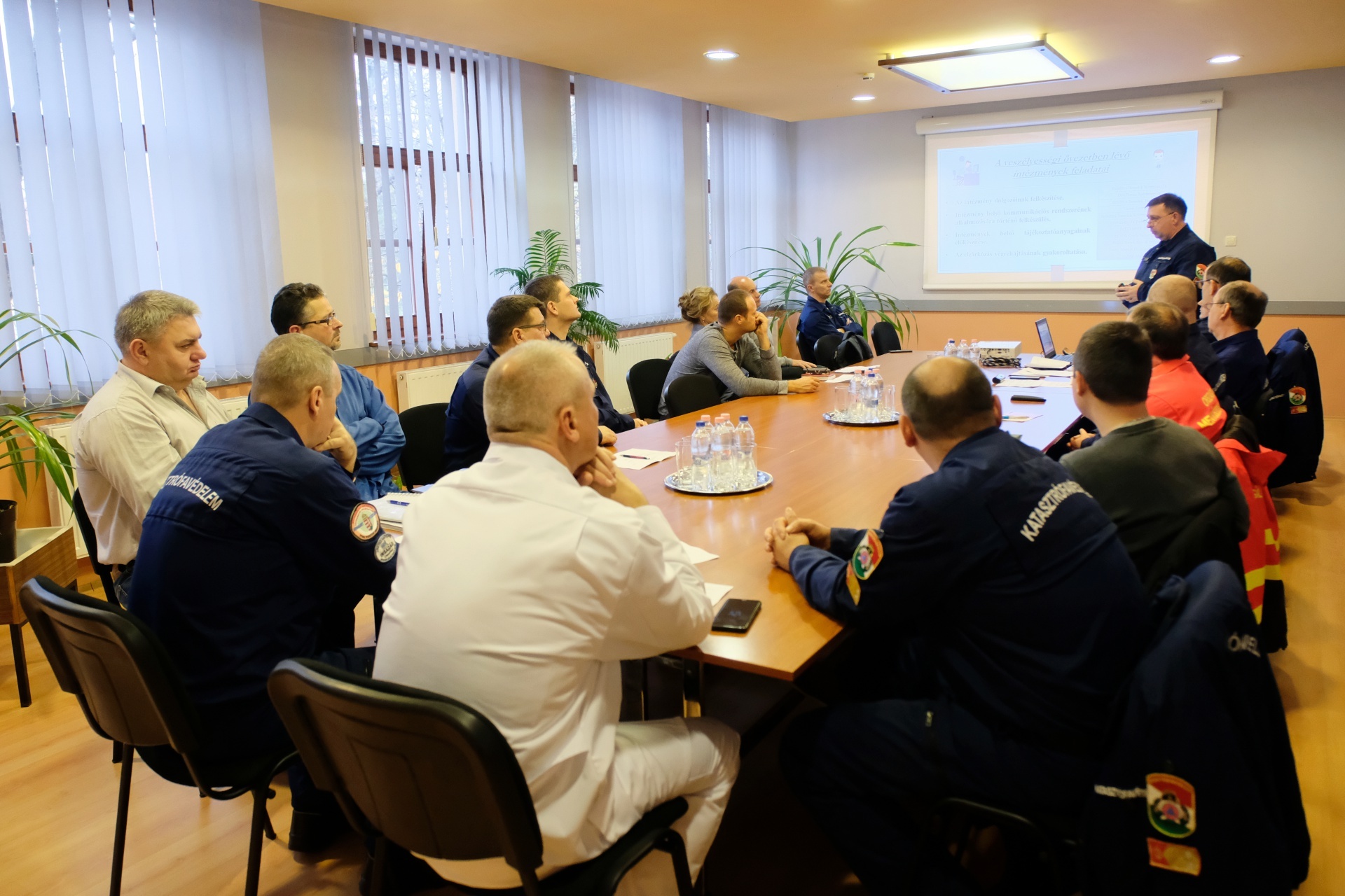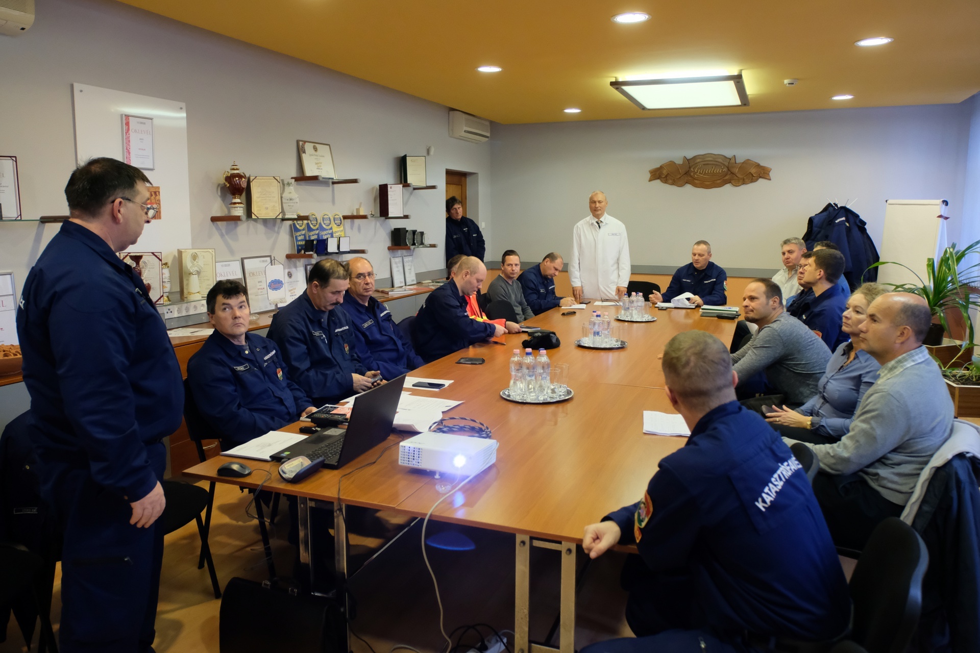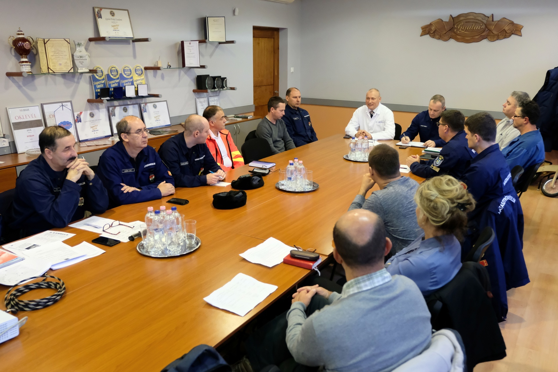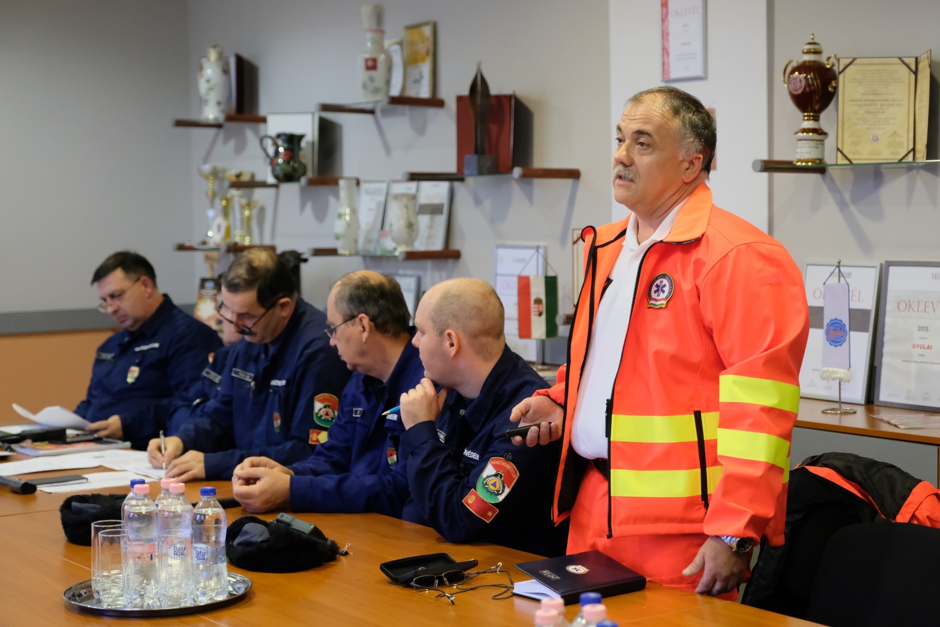 Tesztelték a Gyulahús Kft. vészhelyzeti jelzőrendszerét a cég Kétegyházi úti telephelyén november 21-én. A gyakorlat előtt az illetékes szervek a Béke sugárúti épületben tartottak megbeszélést. A részletekről Daka Zsolt ügyvezető számolt be nekünk.