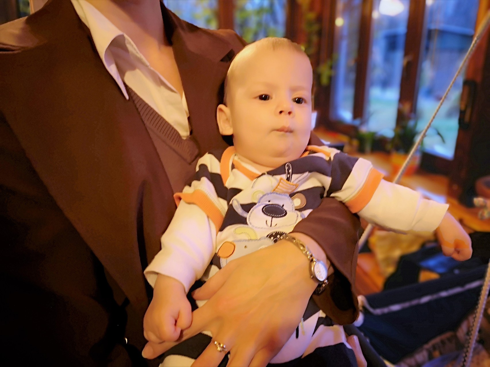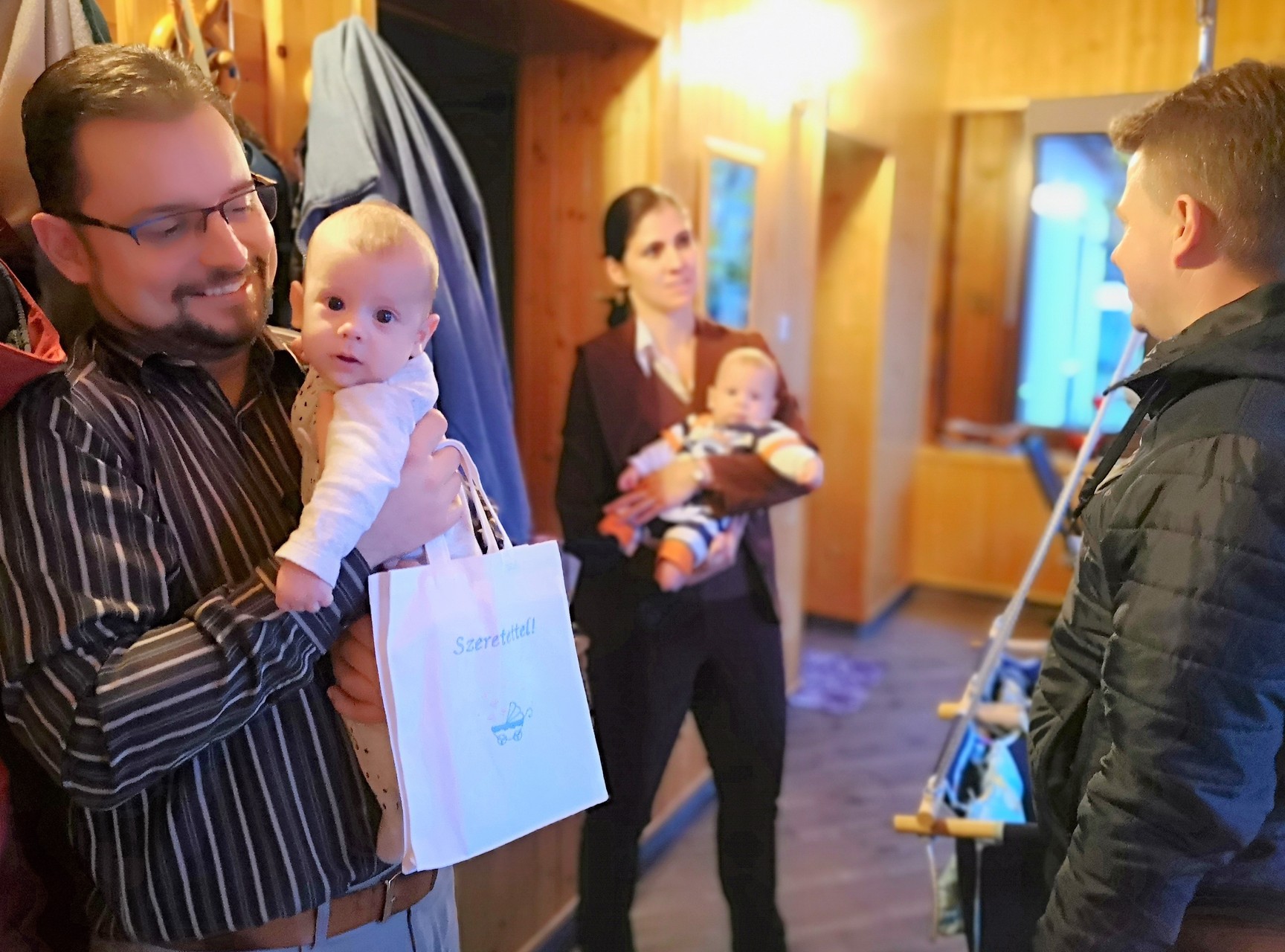 A szokásokhoz híven egy csokor virágot, egy Póka György-festményt és egy, a babák nevével és horoszkópjával hímzett kisruhát kapott a család.