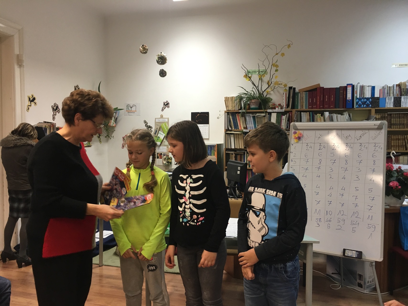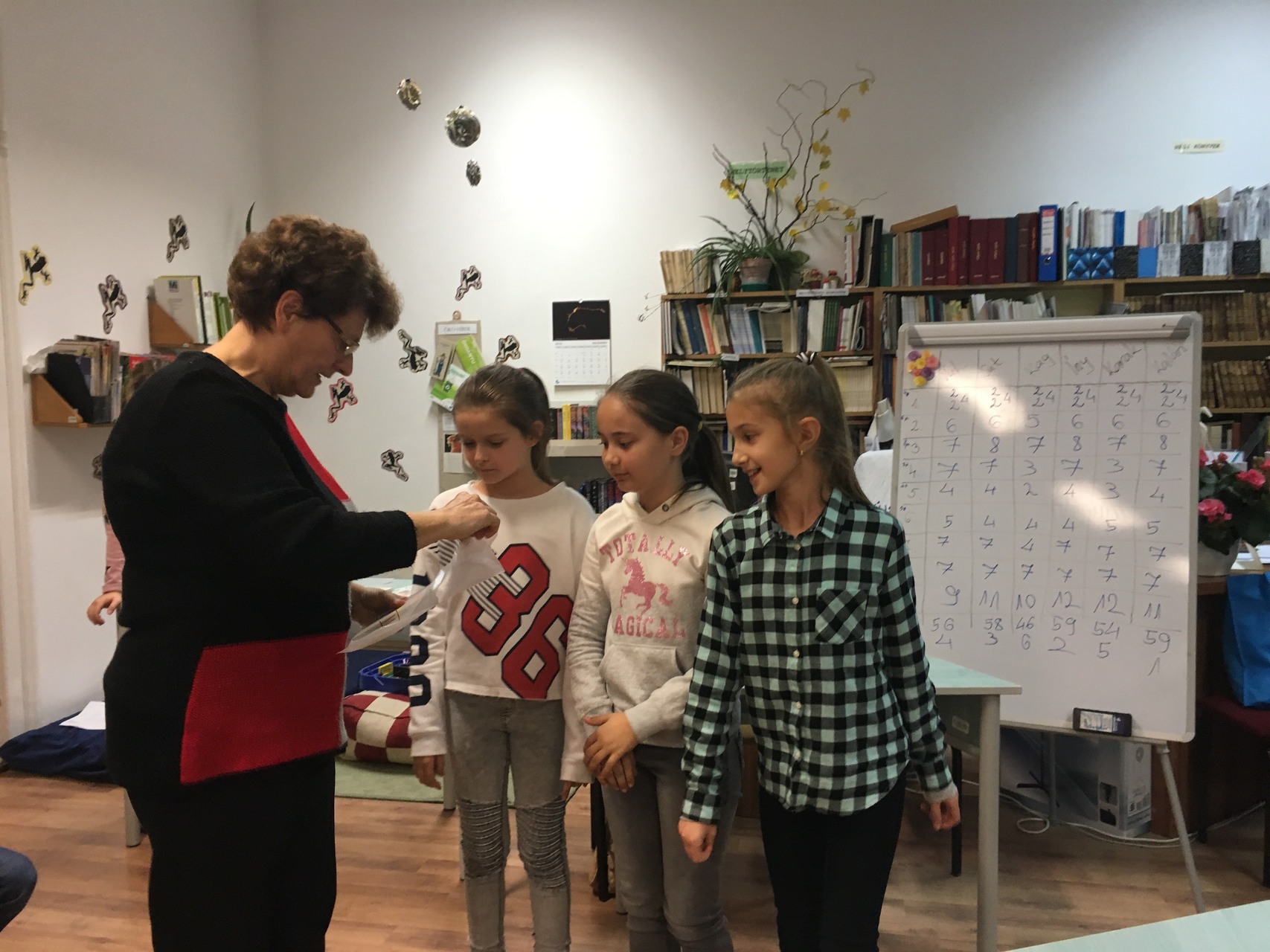 Köszönjük a lelkes munkáját Miklós Gáborné nyugdíjas kolléganőnknek, aki már harmadik éve rendszeresen készít vetélkedőket az alsós évfolyamok számára. Januárban a harmadik évfolyamosokkal találkozunk.