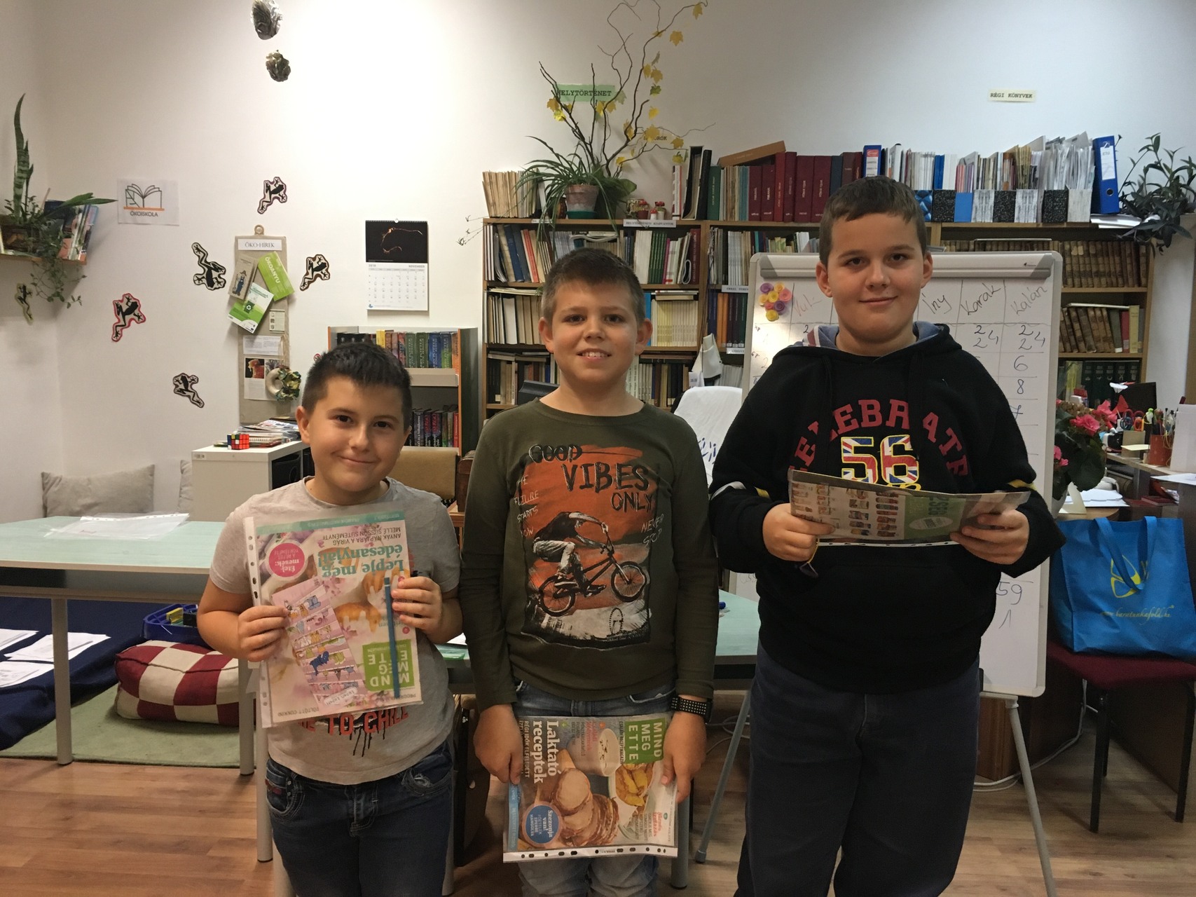 A szoros versenyben pluszkérdéssel kellett dönteni a helyezettek között. A játék örömén kívül minden csapattag apró ajándékkal térhetett vissza az osztályába. Elmondhatjuk, hogy hasznos információkkal gazdagodtunk, s igazán kellemes délutánt töltöttünk együtt.