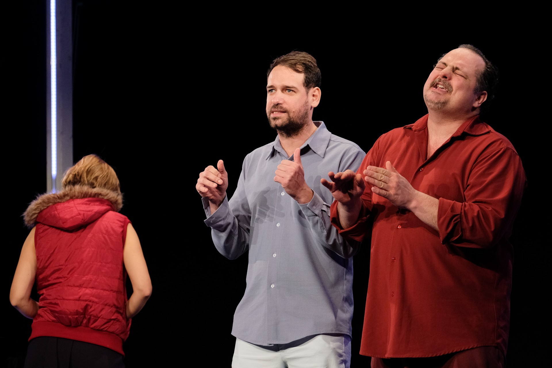 Merthogy mit látunk? Öt hétköznapi ember összeroppanását, azokat a gyermek- és fiatalkori pillanatokat, amelyek ellenvetést nem tűrően eldöntötték, merre menjenek tovább. Ezek a parancsok többnyire kívülről érkeztek, mint például Ötvös András esetében, aki Böjte Csaba ferences atya életútját választja mintának, ám közelebb kerülve a katolikus mennyországhoz nagyon gyorsan szembesül azzal, hogy a kívülálló által látott csillogás egyáltalán nem reális. Az előadás itt a pedofilbotrányokat helyezi előtérbe, rámutatva, valami nagyon nincsen rendben, hisz a cölibátus követelménye több rosszat szül, mint jót.