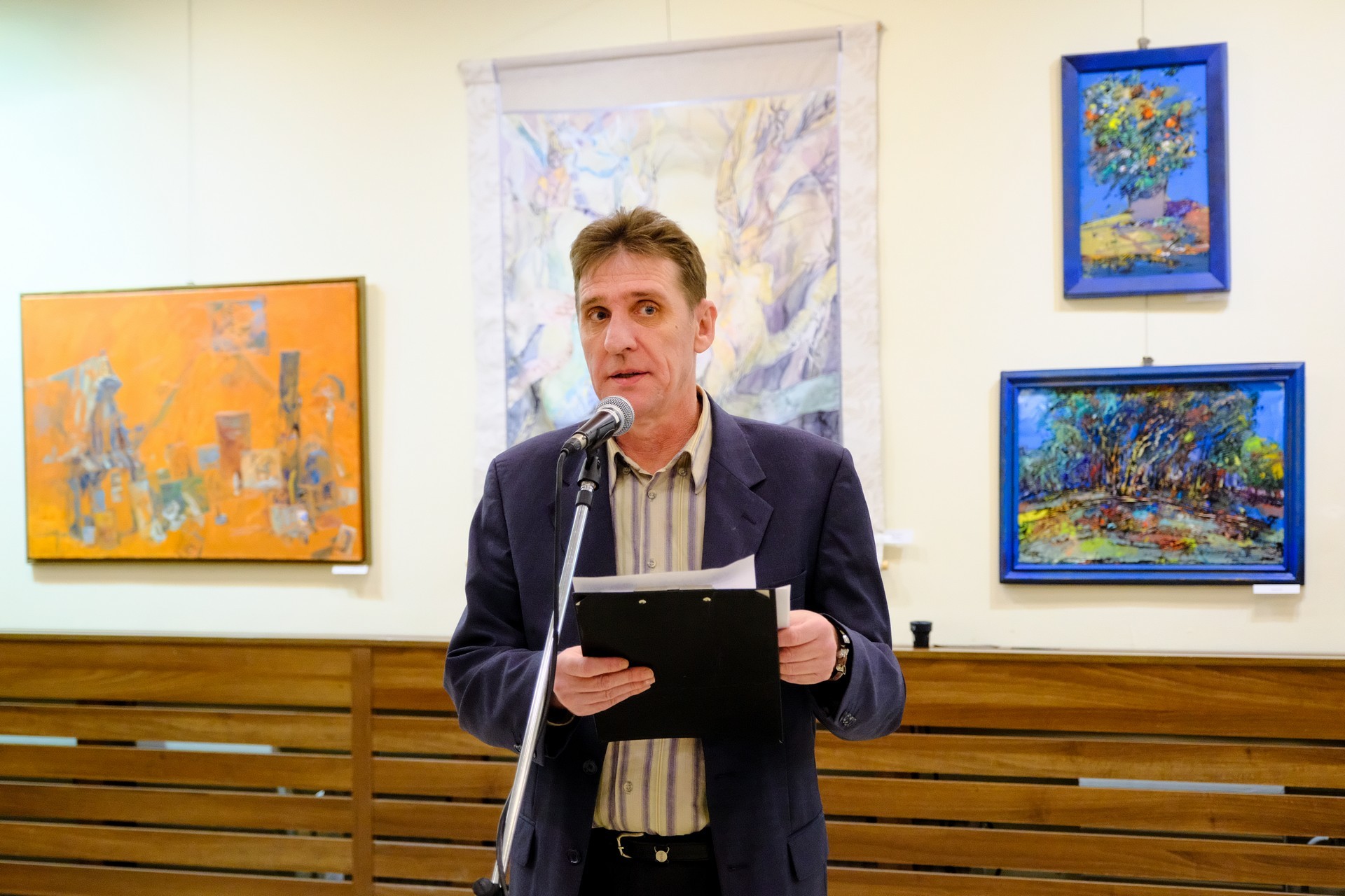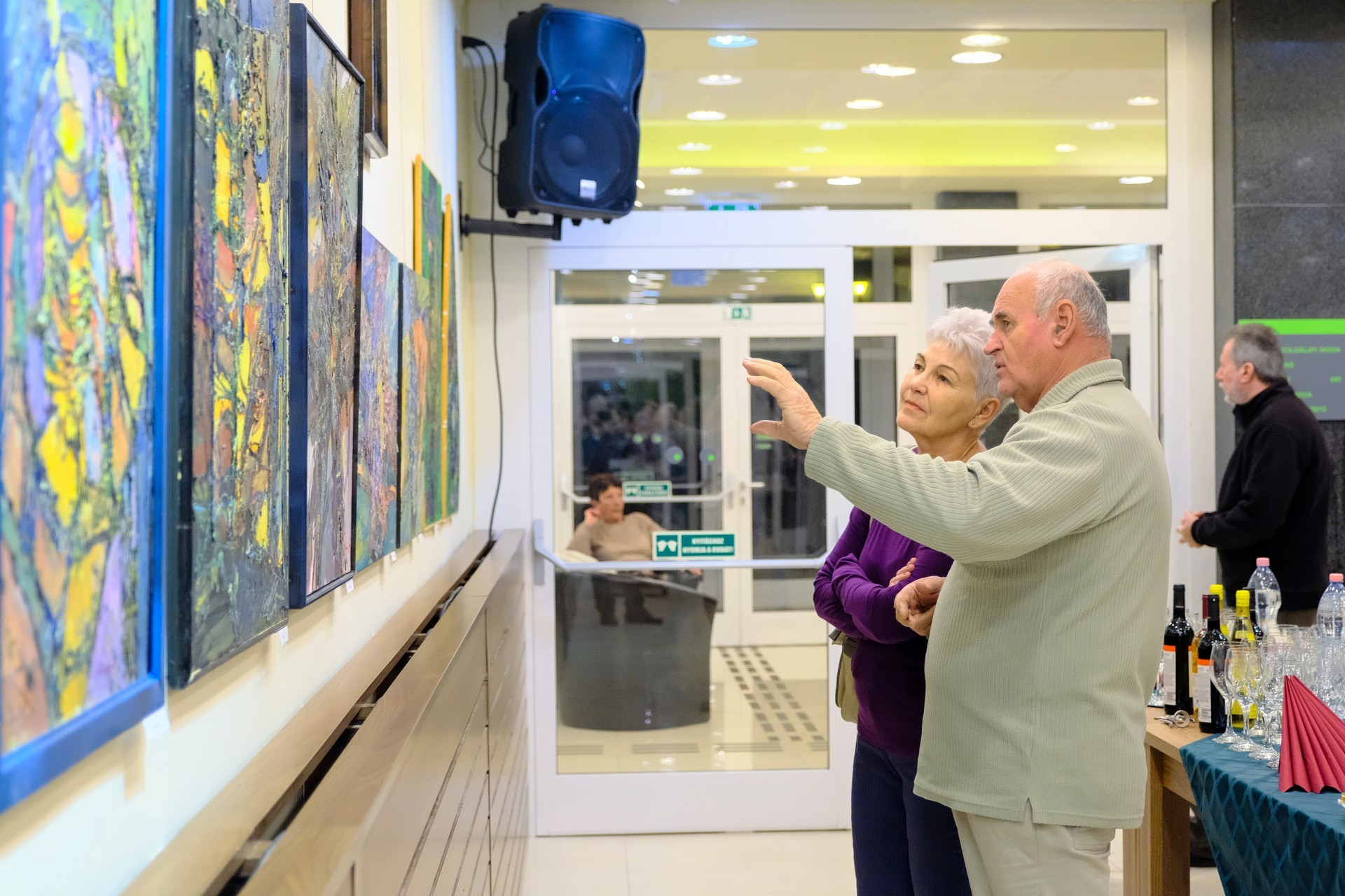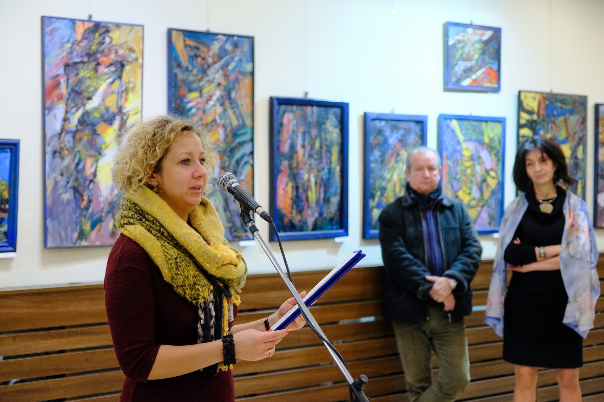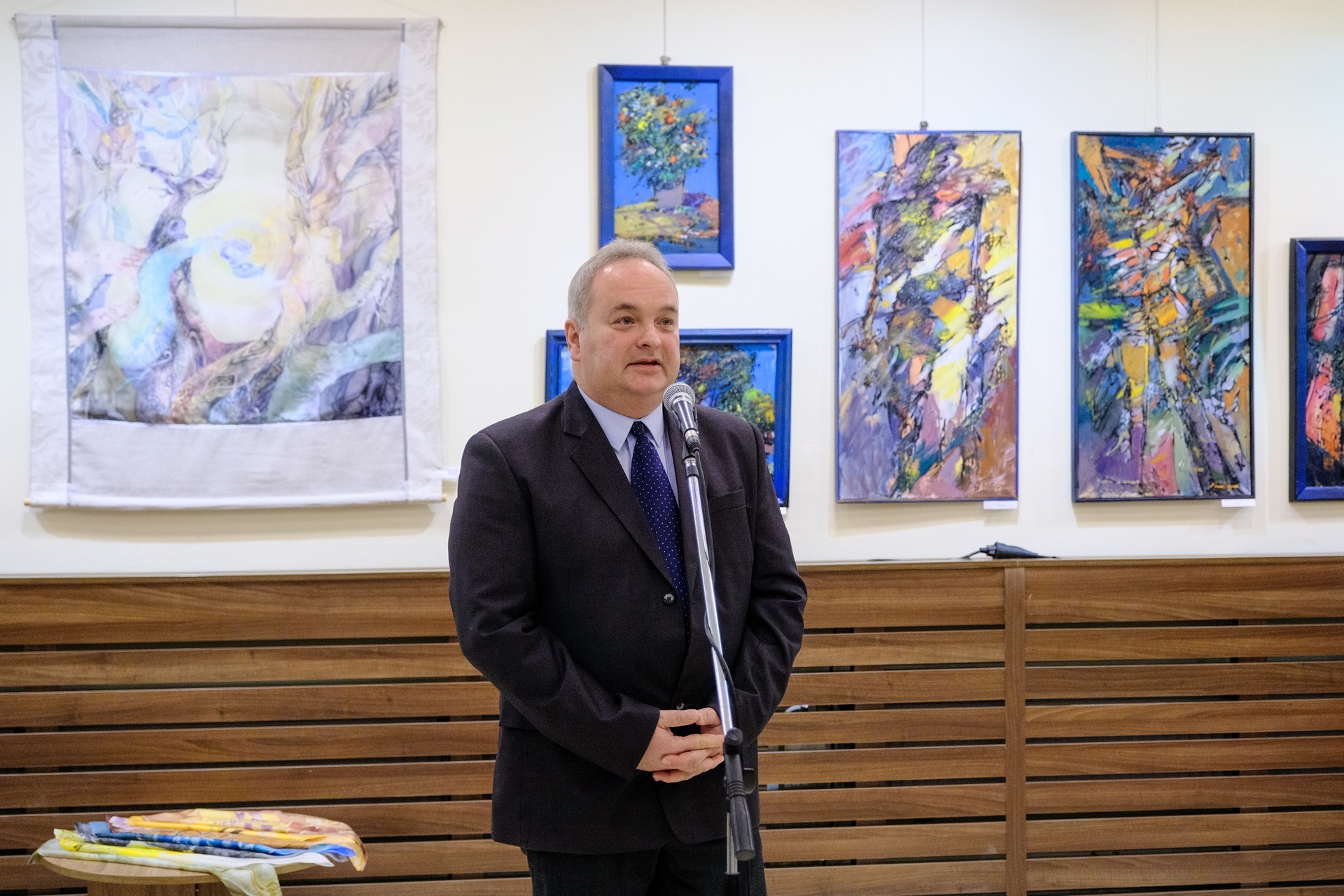 A megnyitón elhangzott: a német nemzetiségű Filcz Leopold a nagybányai egyetemen végzett festőszakon, míg barátja, a román Simion Pop a kolozsvári művészeti egyetemen szerzett diplomát. Lukács Katalin magyar textilművész, selyemfestő a nagybányai művésztelepen kezdte el képezni magát. A textilmérnöki végzettség megszerzése után a Magyar Iparművészeti Egyetemen diplomázott. Selyemfestészettel a 90-es évektől foglalkozik.