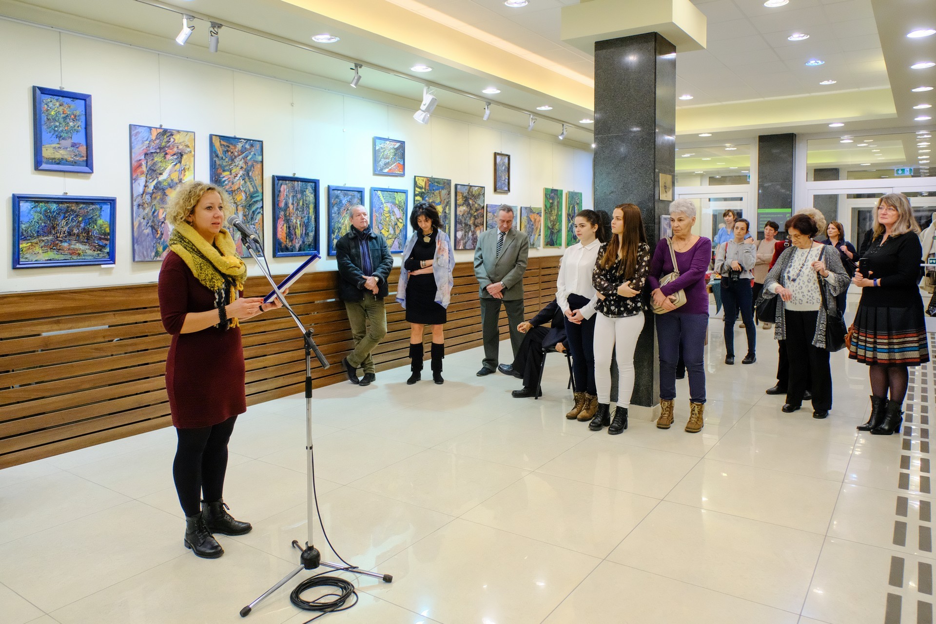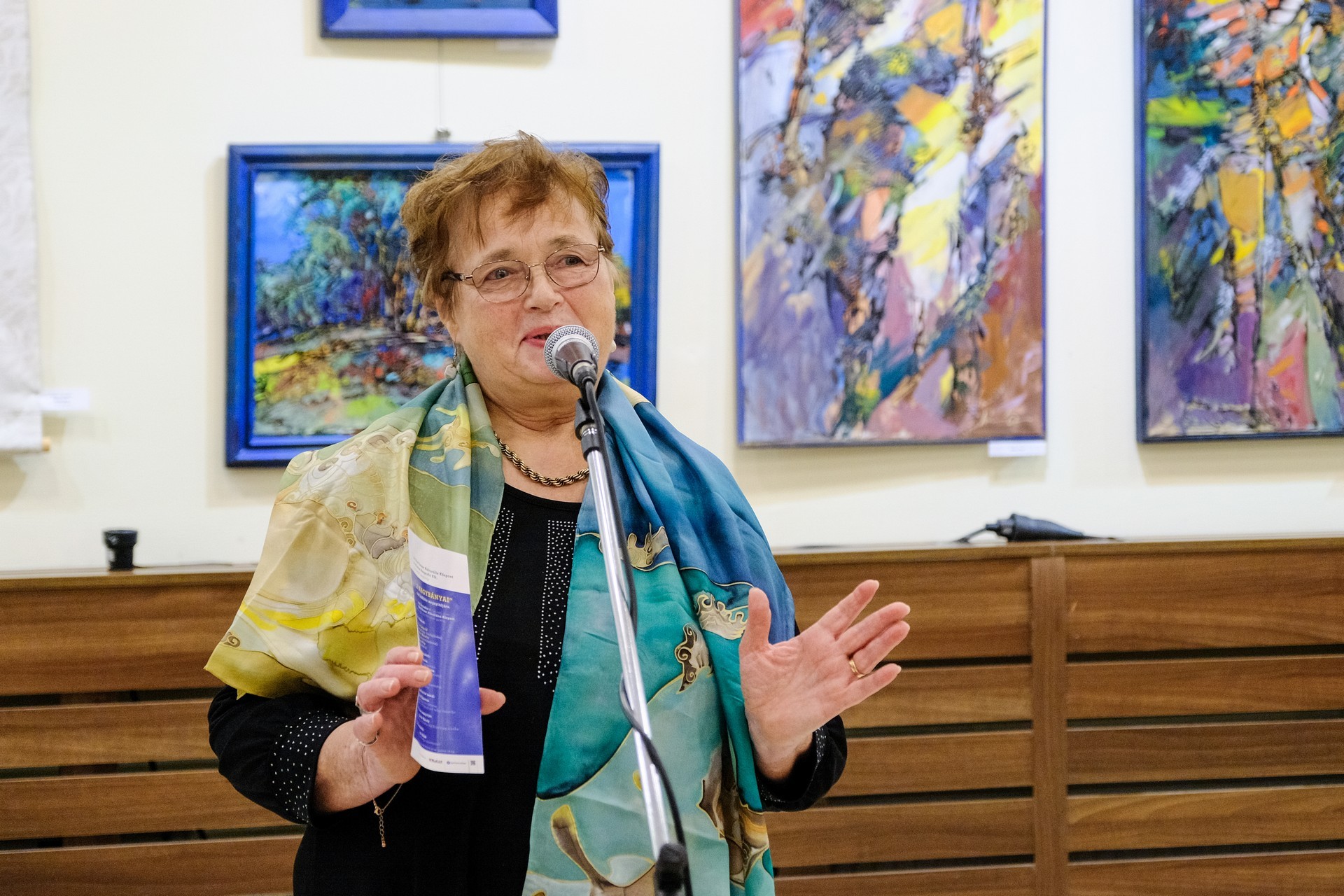 Az alkotókat és a megjelenteket románul üdvözölte Olteanu Florea, a gyulai román nemzetiségi önkormányzat alelnöke, Mittag Mónika, a fürdővárosi német nemzetiségi önkormányzat elnöke pedig német nyelven mondott köszöntőt.