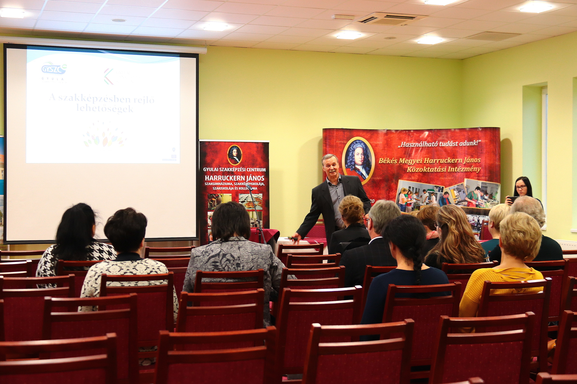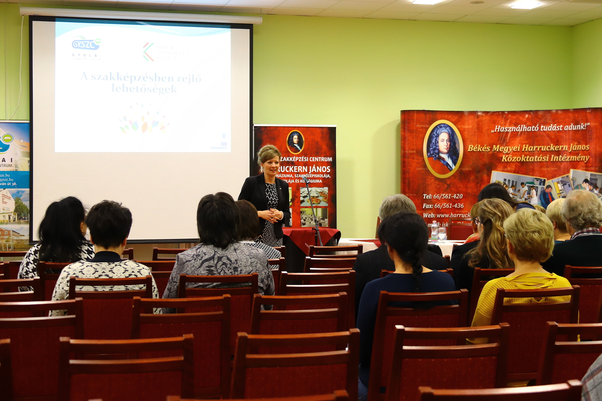 Fórumot tartottak általános és középiskolák képviselőinek részvételével a gyulai Harruckern János iskolában, ahol a megjelenteket elsőként Kovács Zsuzsanna, a Gyulai Szakképzési Centrum főigazgatója köszöntötte. Az intézményvezető kifejtette, a fórum megszervezése azzal a céllal fogalmazódott meg bennük, hogy megmutassák a szakmai továbbtanulási lehetőségeket az általános és középiskolákban dolgozó kollégáiknak, az ő közvetítésükkel pedig a pálya- és iskolaválasztás előtt álló tanulóknak.