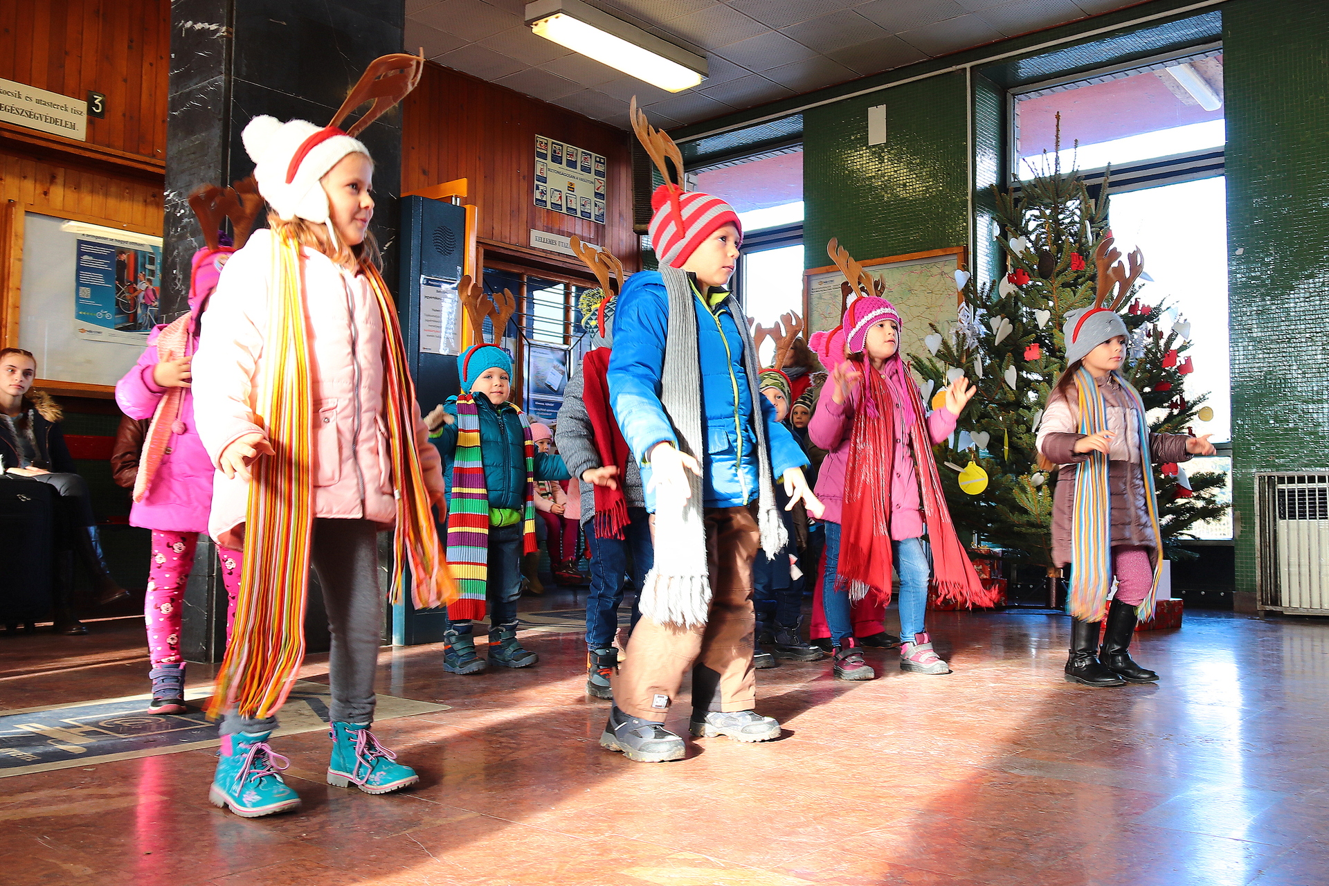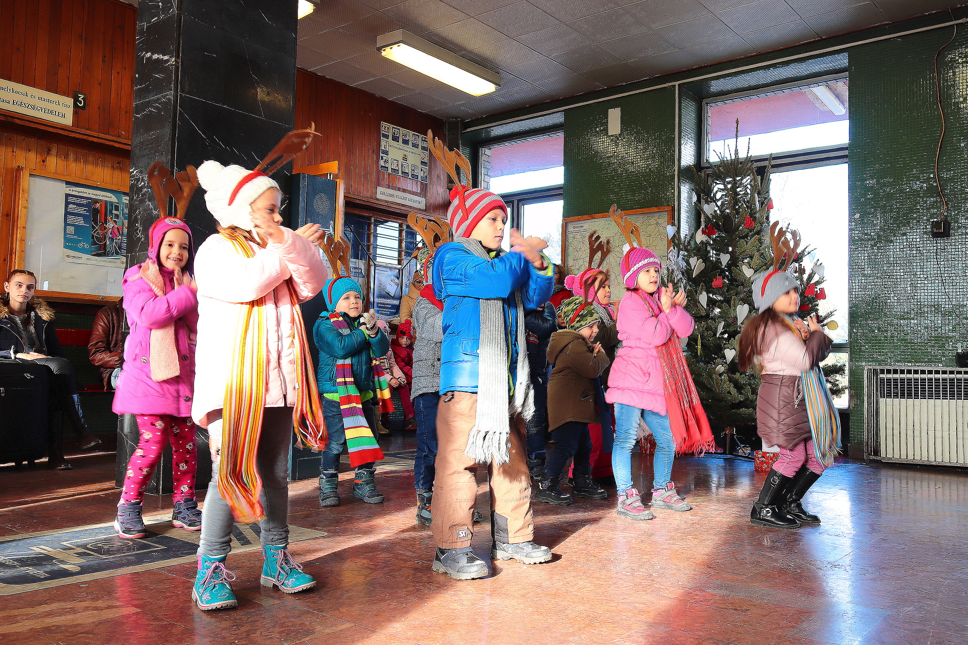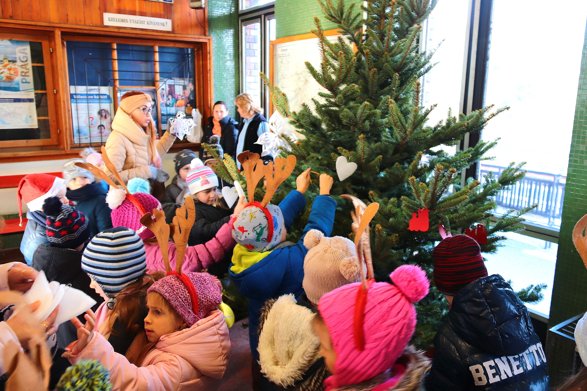 Akkora ünnepi hangulat sosem volt még a MÁV gyulai várótermében, mint december 14-én. Ezen a napon ugyanis a Béke sugárúti ovisok népesítették be a helységet, ahol előbb saját készítésű díszeikkel karácsonyfát varázsoltak az örökzöldből, majd a vonatra várakozók legnagyobb meglepetésére és örömére eljárták rénszarvastáncukat.
