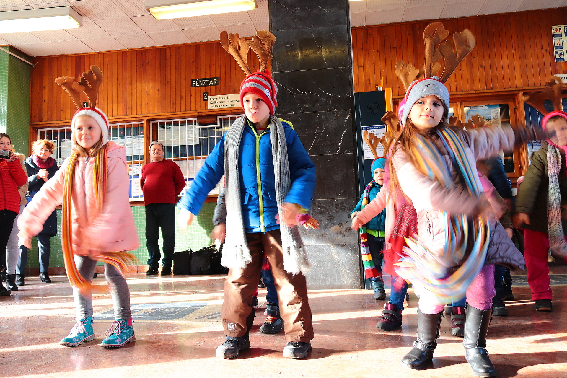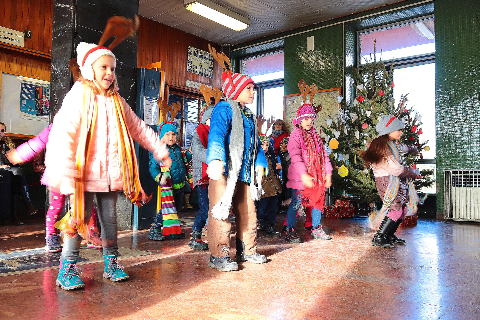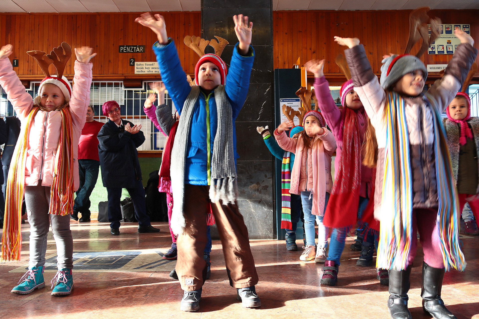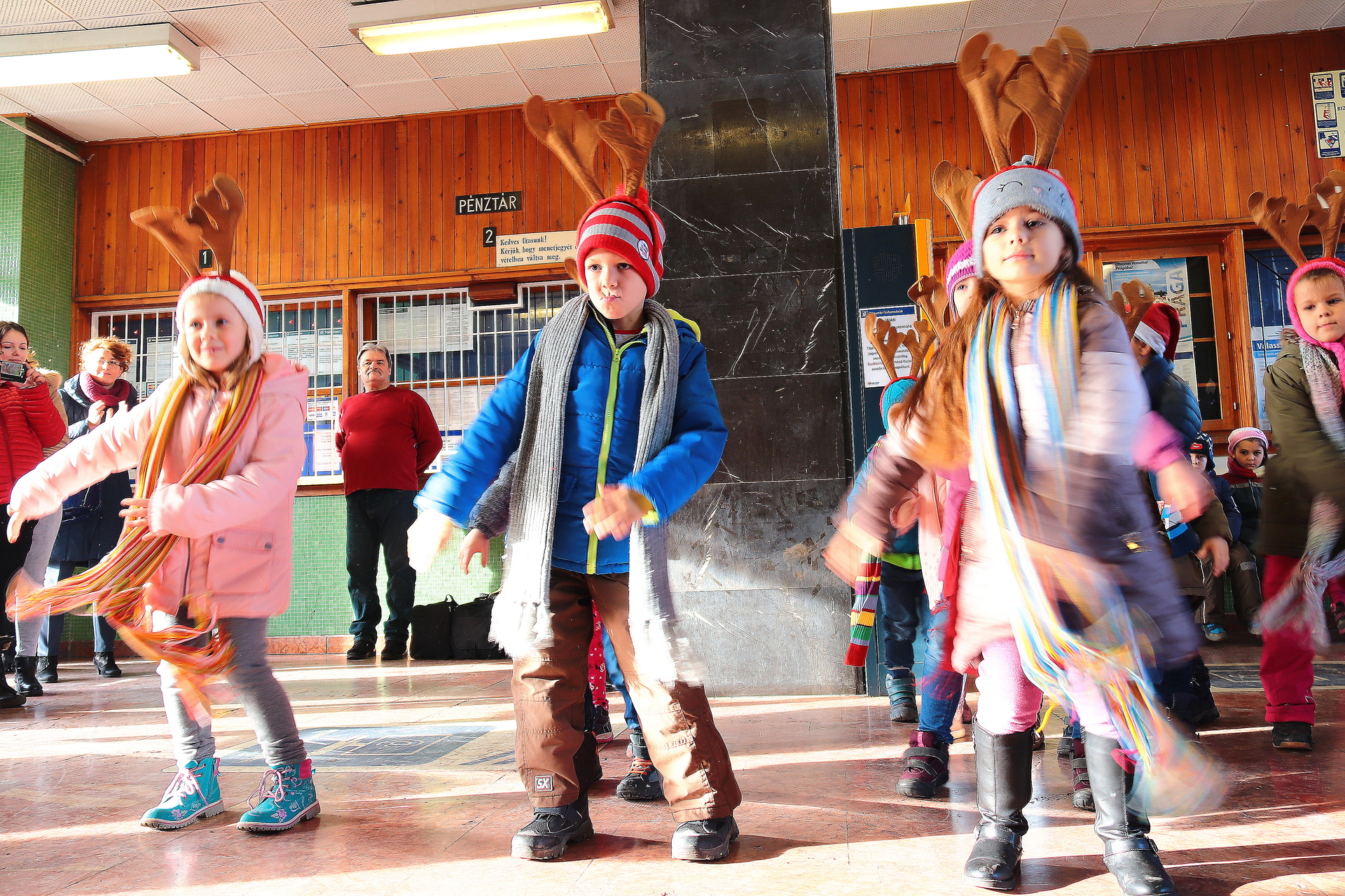 Akkora ünnepi hangulat sosem volt még a MÁV gyulai várótermében, mint december 14-én. Ezen a napon ugyanis a Béke sugárúti ovisok népesítették be a helységet, ahol előbb saját készítésű díszeikkel karácsonyfát varázsoltak az örökzöldből, majd a vonatra várakozók legnagyobb meglepetésére és örömére eljárták rénszarvastáncukat.