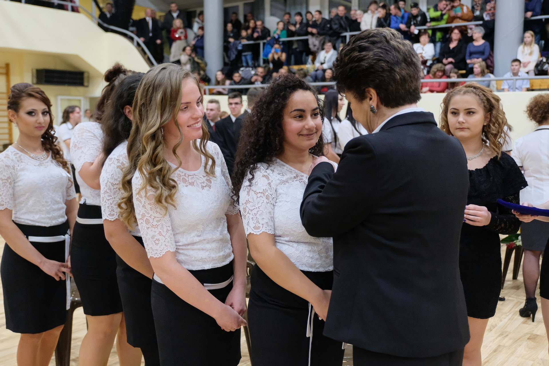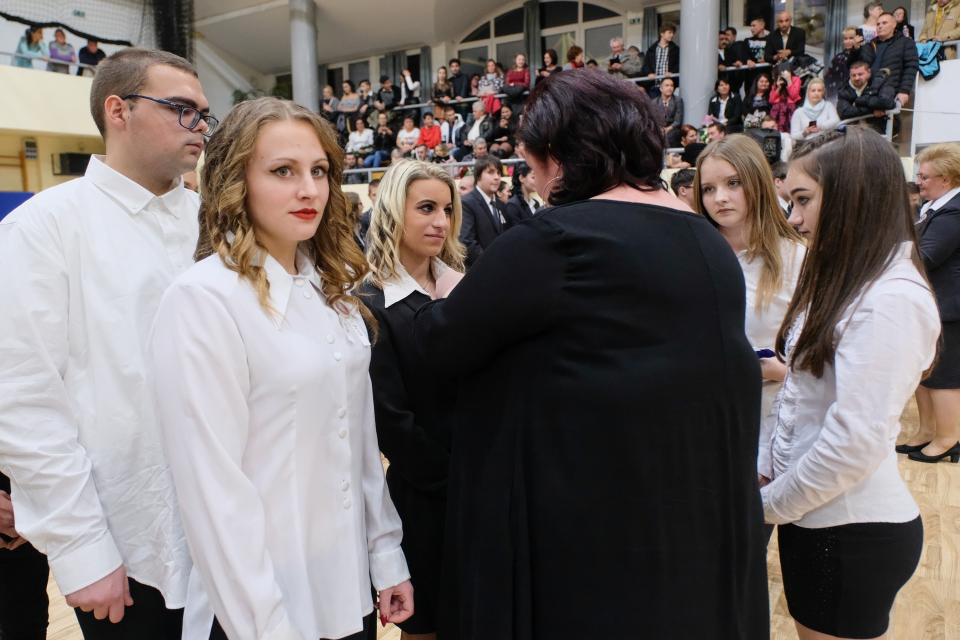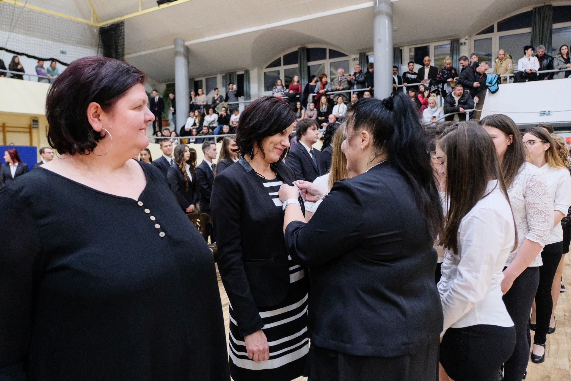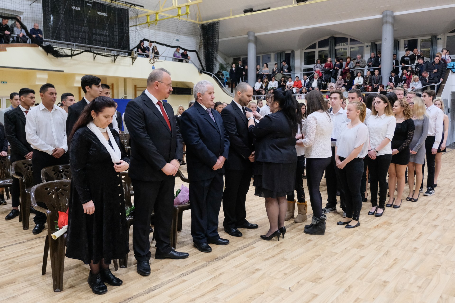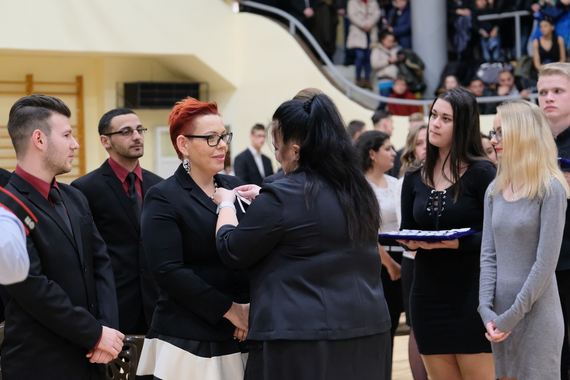 Az első szalagot a szülői munkaközösség vezetője, Kincses Anikó tűzte fel Kovács Zsuzsanna főigazgató és Czeglédiné Szappanos Anita inggallérjára, tőlük az osztályfőnökök, az osztályfőnököktől pedig a diákok is megkapták, hogy aztán megkezdődhessen a gálaműsor.