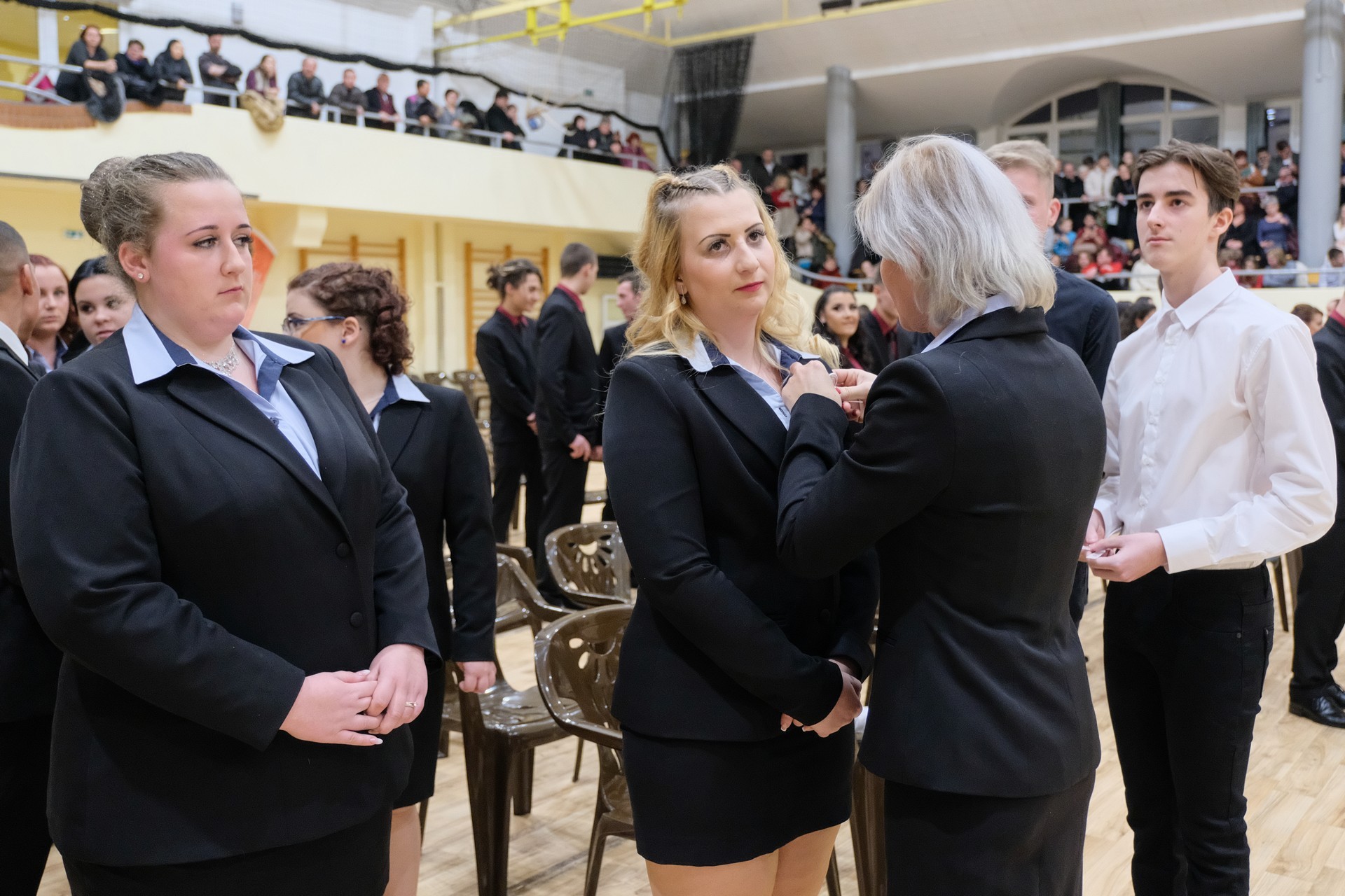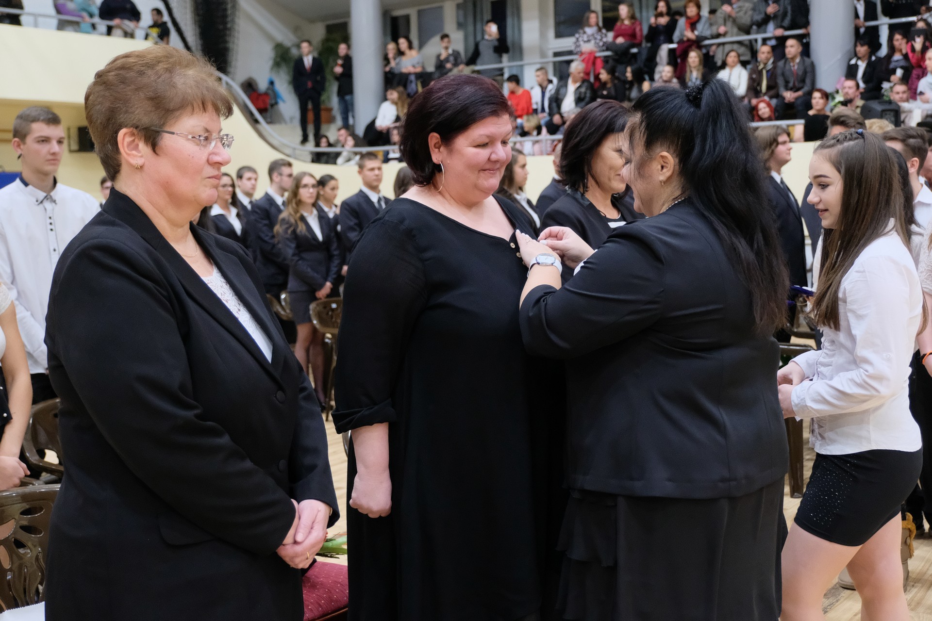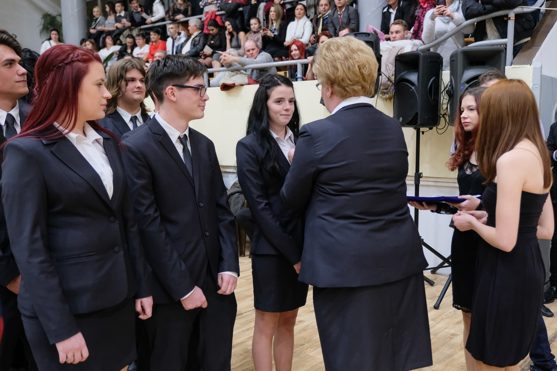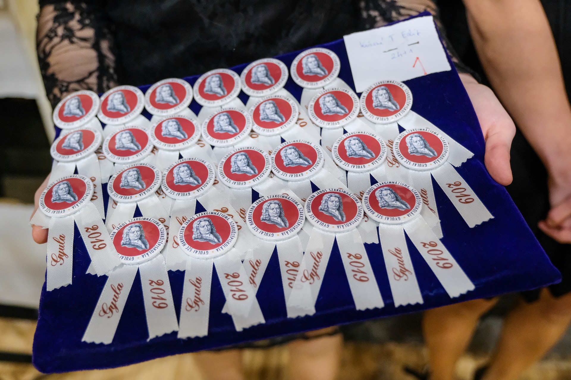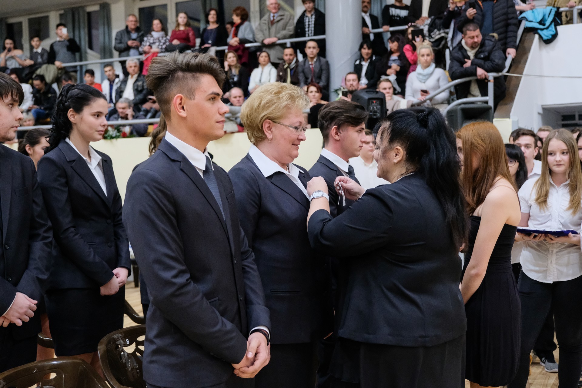Az első szalagot a szülői munkaközösség vezetője, Kincses Anikó tűzte fel Kovács Zsuzsanna főigazgató és Czeglédiné Szappanos Anita inggallérjára, tőlük az osztályfőnökök, az osztályfőnököktől pedig a diákok is megkapták, hogy aztán megkezdődhessen a gálaműsor.