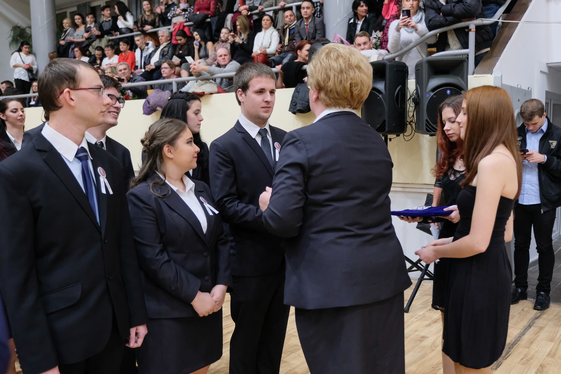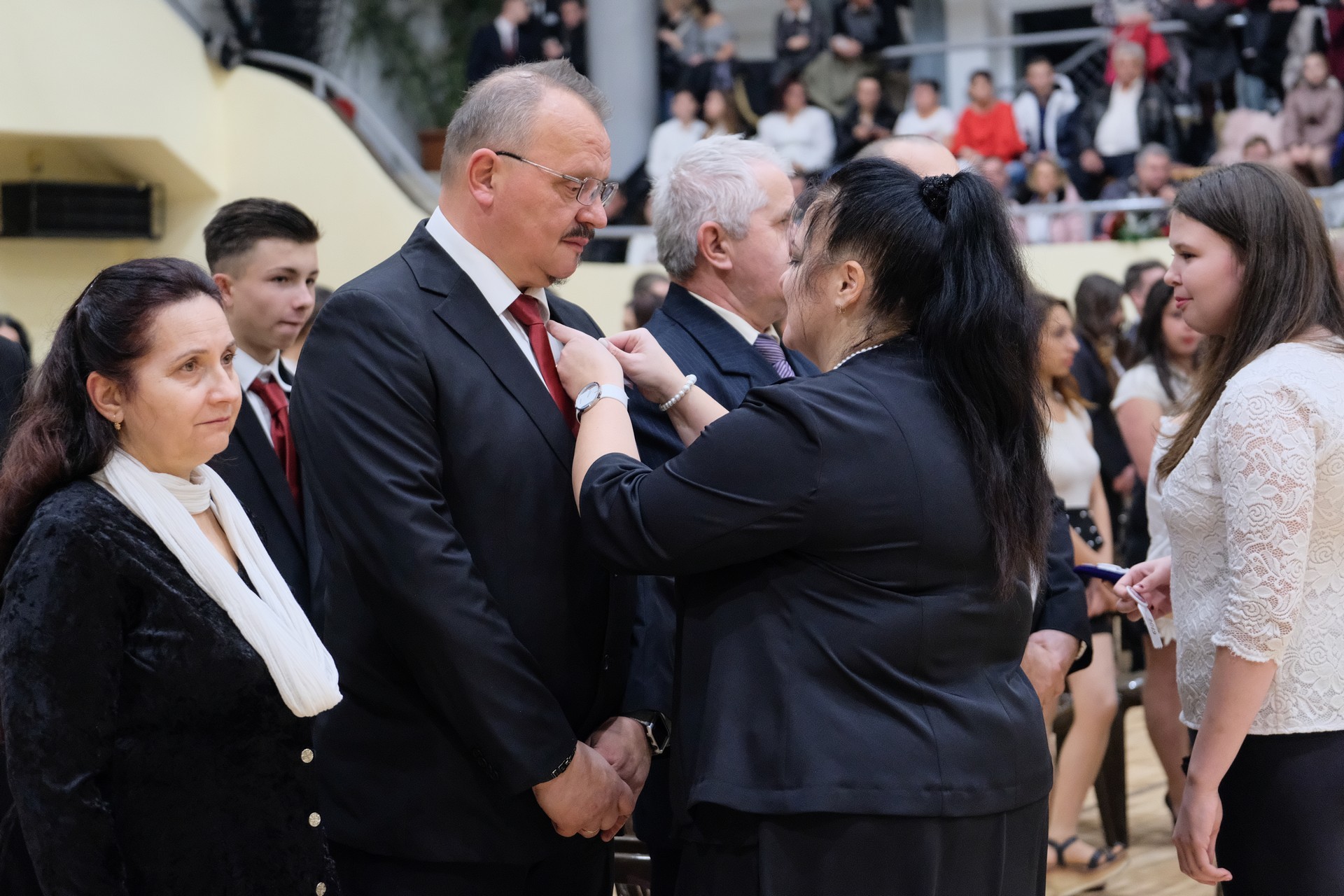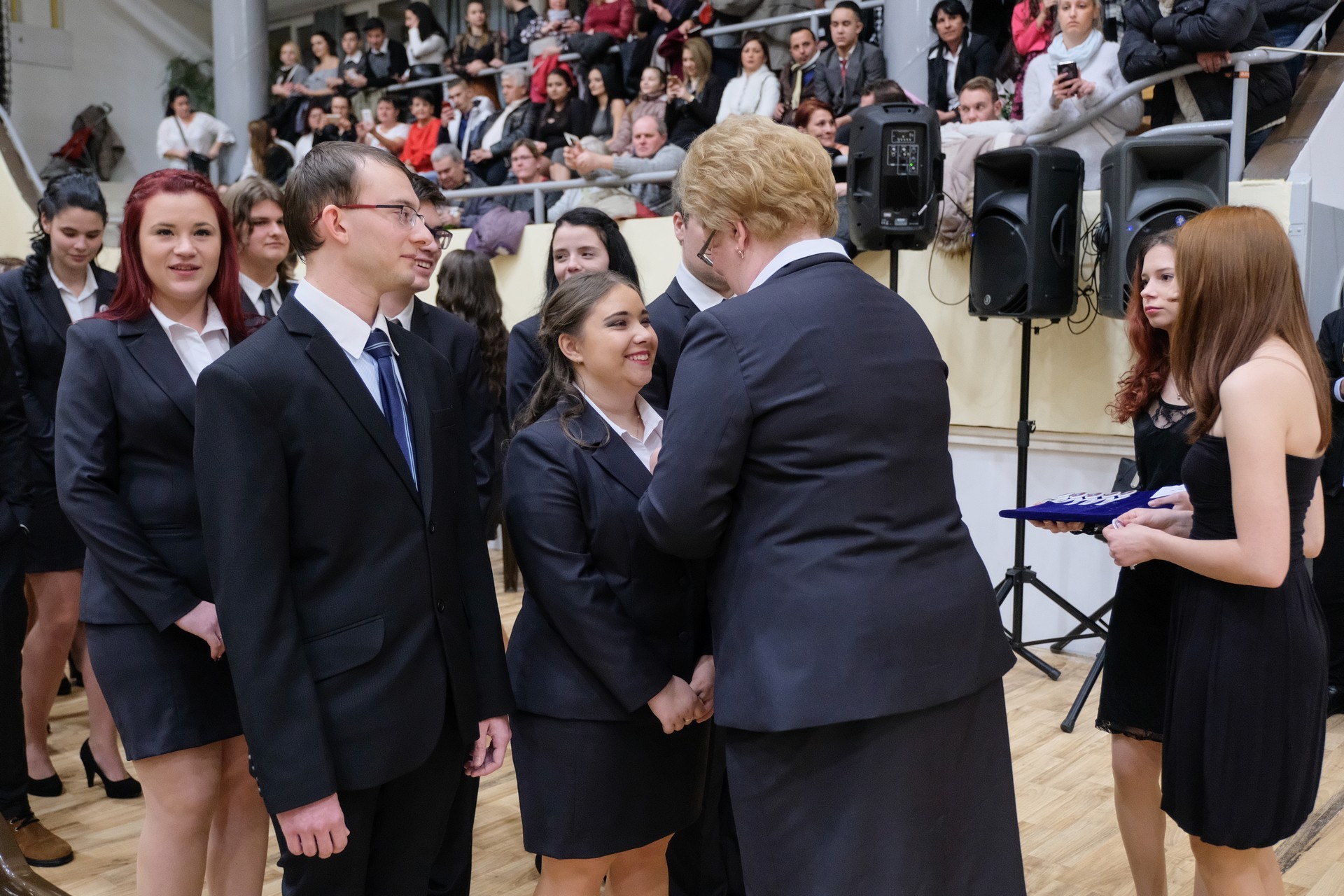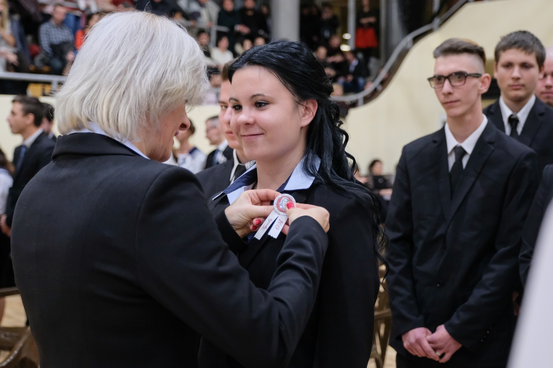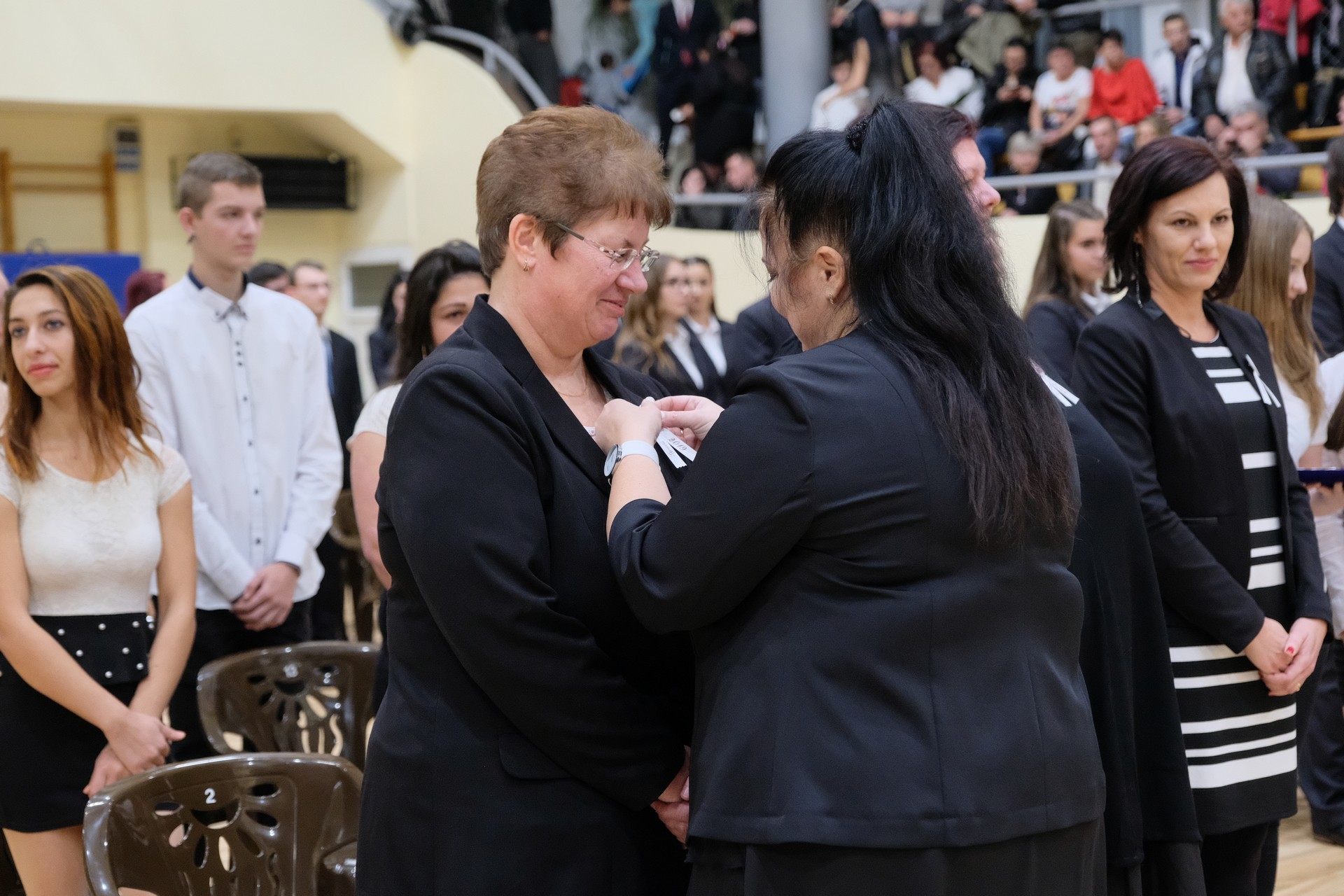 Az első szalagot a szülői munkaközösség vezetője, Kincses Anikó tűzte fel Kovács Zsuzsanna főigazgató és Czeglédiné Szappanos Anita inggallérjára, tőlük az osztályfőnökök, az osztályfőnököktől pedig a diákok is megkapták, hogy aztán megkezdődhessen a gálaműsor.
