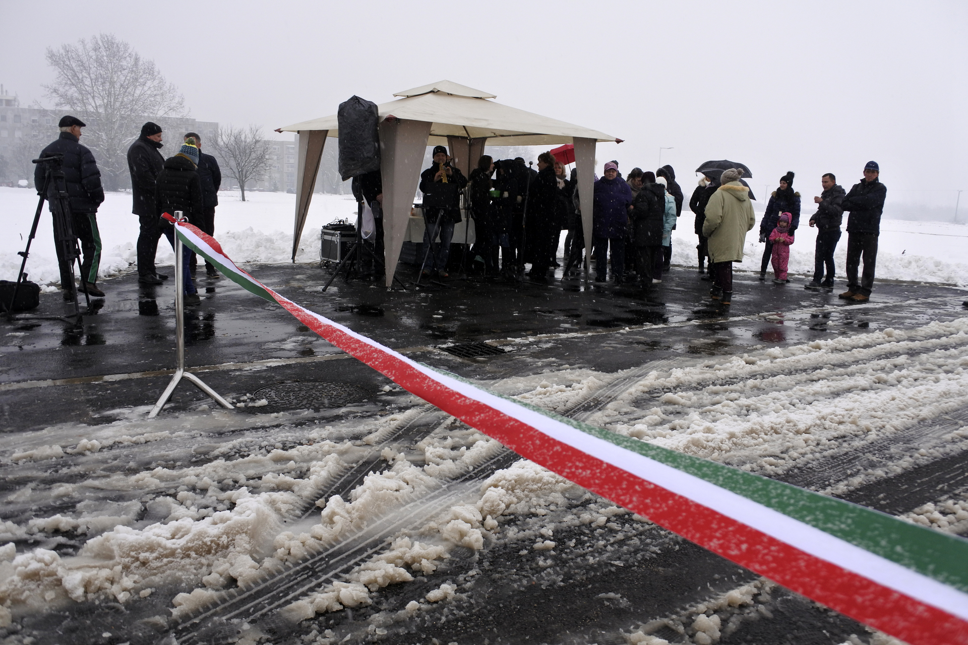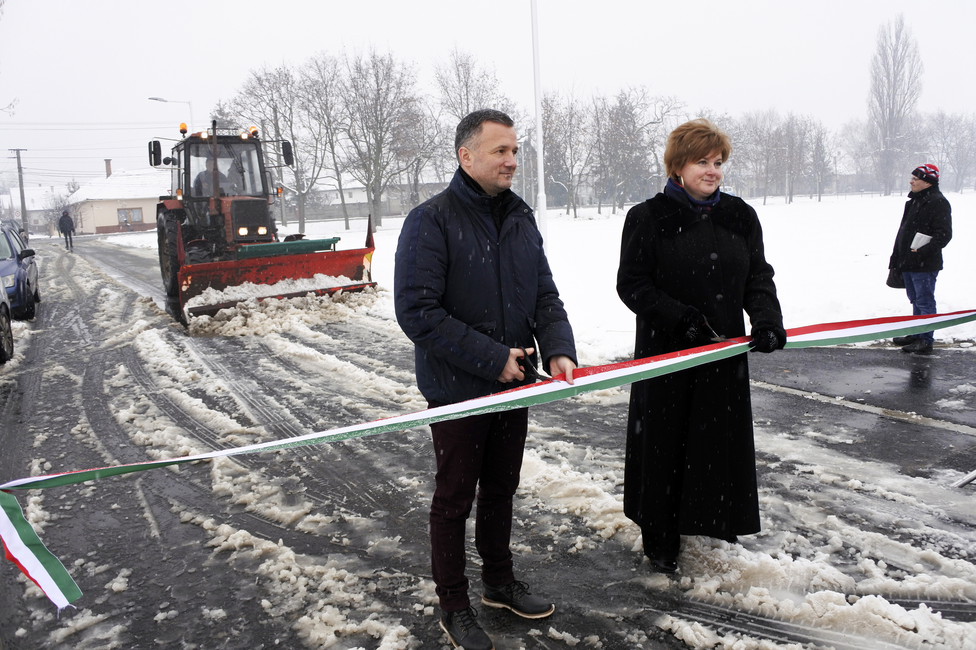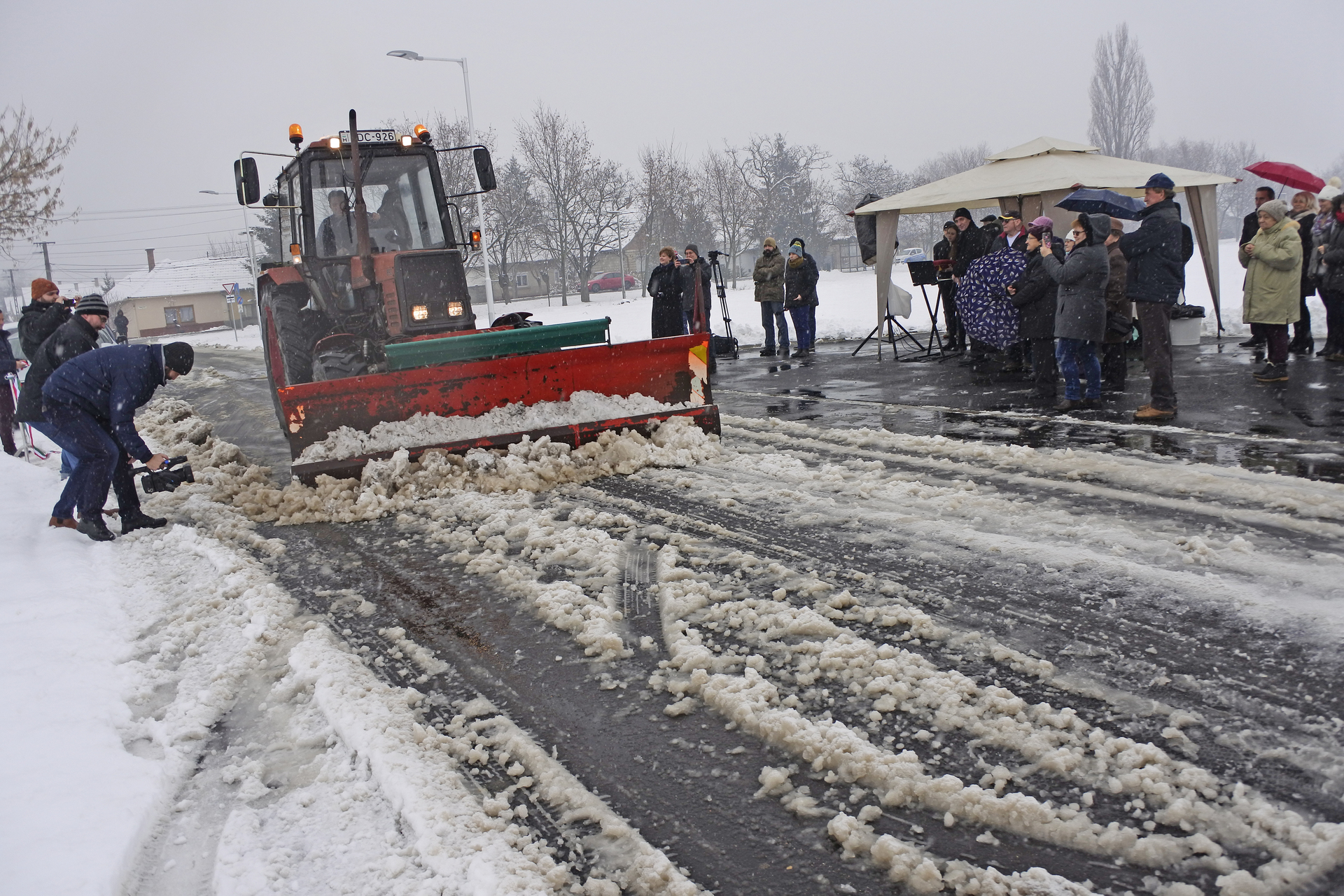 A köszöntők elhangzása után Görgényi Ernő és Kiss Tamásné átvágták az útra felállított szalagot, majd – rendhagyó módon – egy hókotróval avatták fel a Vécsey Károly és Schweidel József utcákat.
