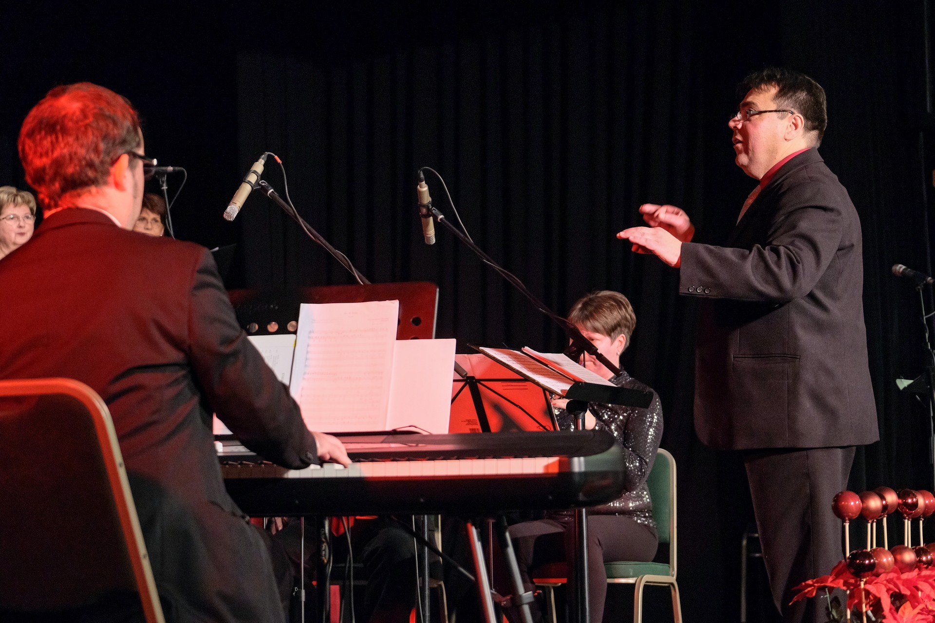 A vegyeskart a gyulaiak előtt már jól ismert karácsonyi zenekar kísérte. Gál Csaba zongorán, Matkócsik Ilona és Lenovics Laura fuvolán, Oláhné Szabó Szilvia oboán, Puskás Sándor kürtön, Domokos Balázs pedig fagotton játszott. Szólót Tokai Ágnes énekelt, a karnagyi teendőket Perlaki Attila látta el.