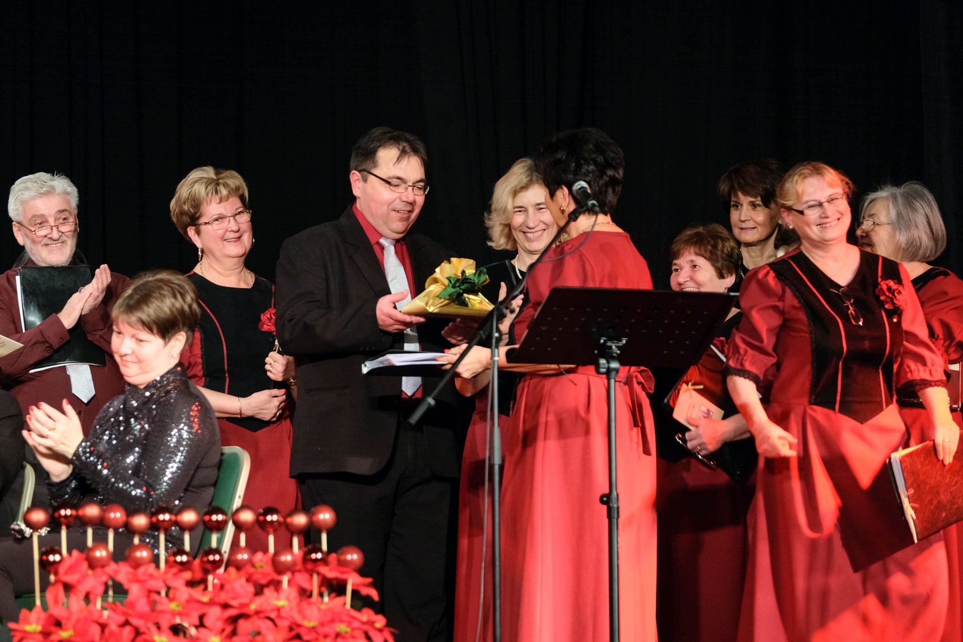 A jelenlévőket ezt követően azzal lepték meg, hogy felköszöntötték azon tagjaikat, akik már huszonöt éve énekelnek a kórusban: Szabóné Mede Ágótát, Szegedi Mihálynét, Szabóné Pfaff Évát és Petrovitsné Balla Magdolnát, valamint a legkitartóbbakat, Bottyánszki Lászlónét és Sztán Pétert, akik negyvennégy évvel ezelőtt léptek be a vegyeskarba. Gratulációkban volt része Perlaki Attila karnagynak is, aki tíz éve vezeti a gyulai kórust.