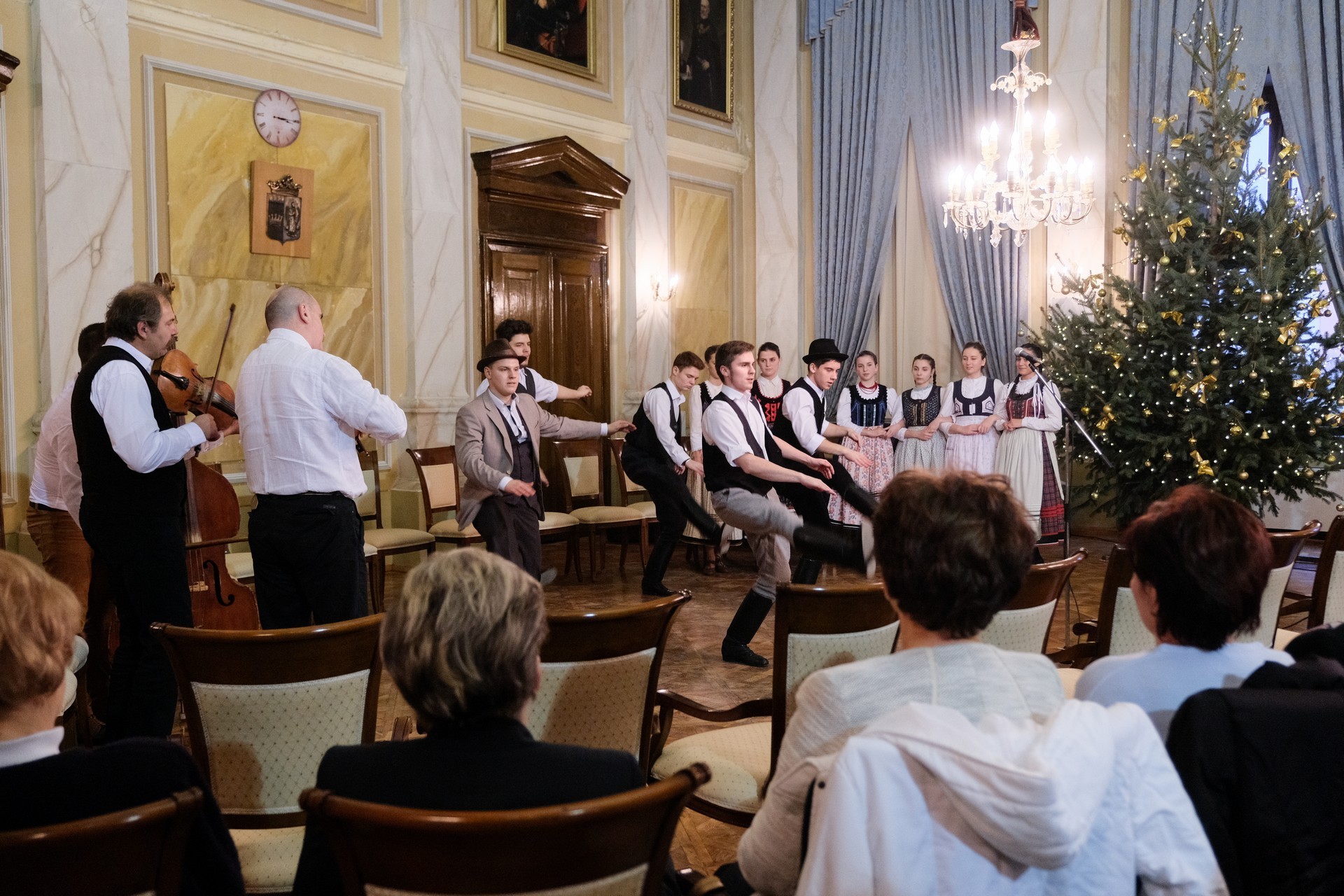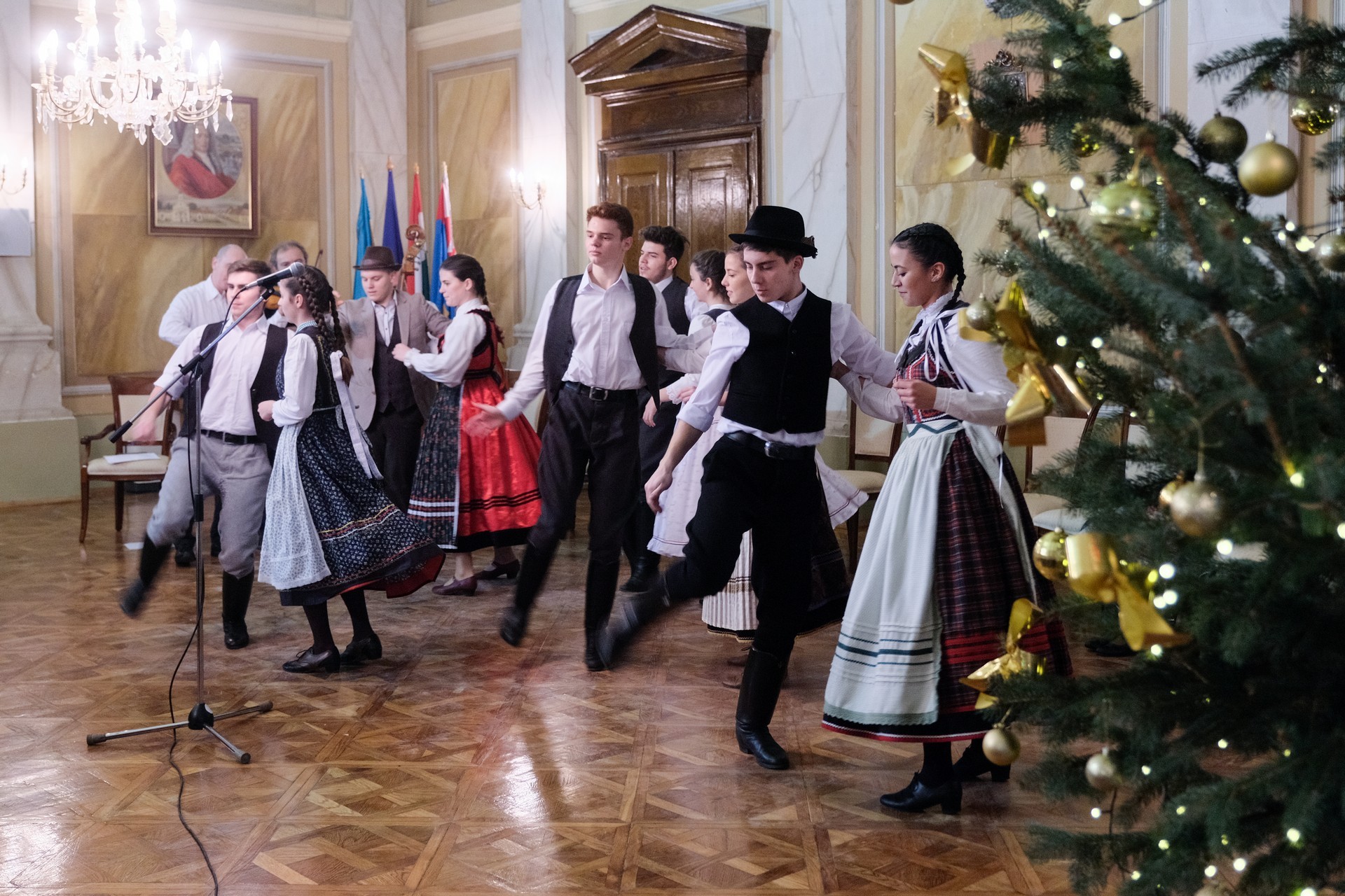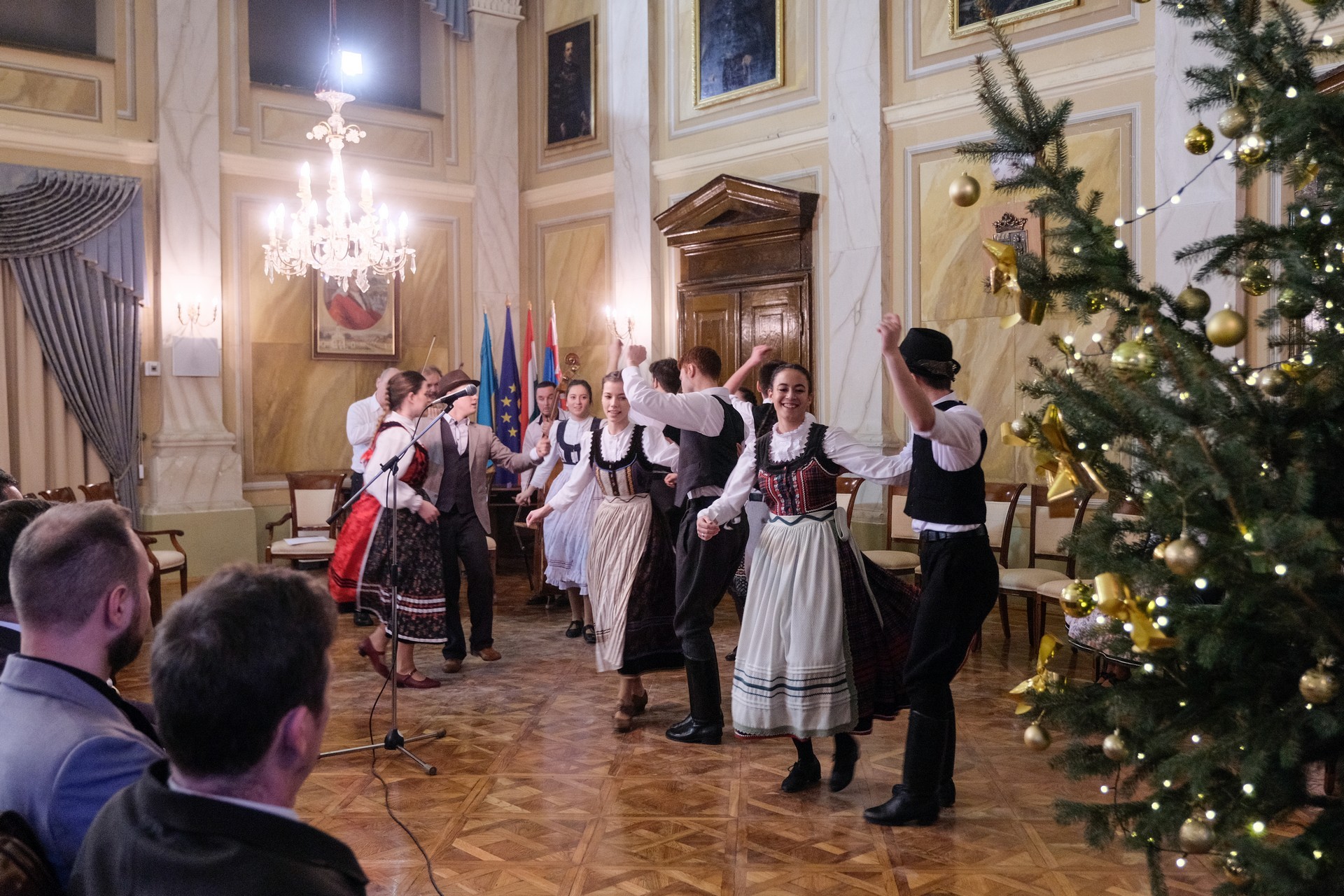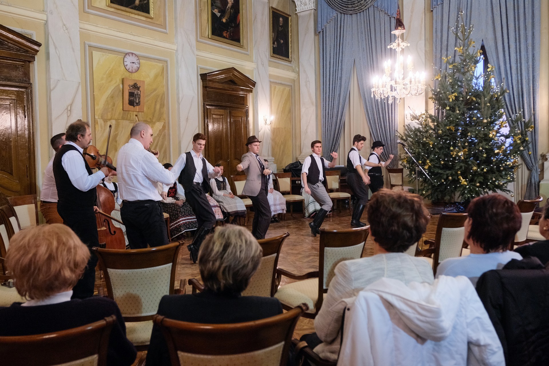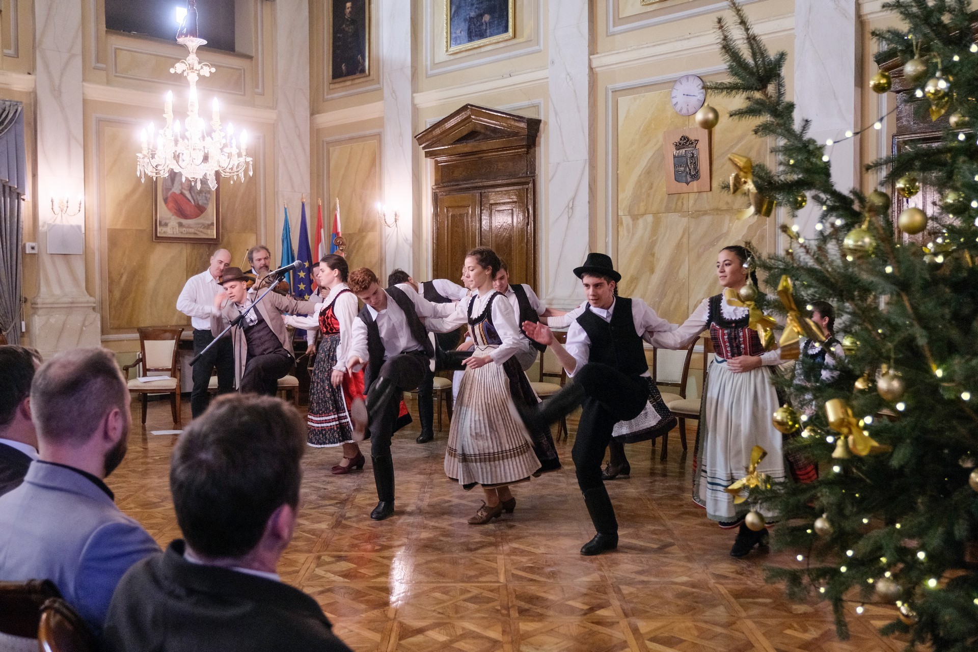 A meghívottakat ezt követően a Körös Táncegyüttes lepte meg a Karácsonykor, éjféltájban című összeállításával, majd Patyi Zoltán, a társulat és a kísérőzenekar vezetője Kosztolányi Dezső Hajnali részegség című versével fejezte ki jókívánságait a jelenlévőknek.