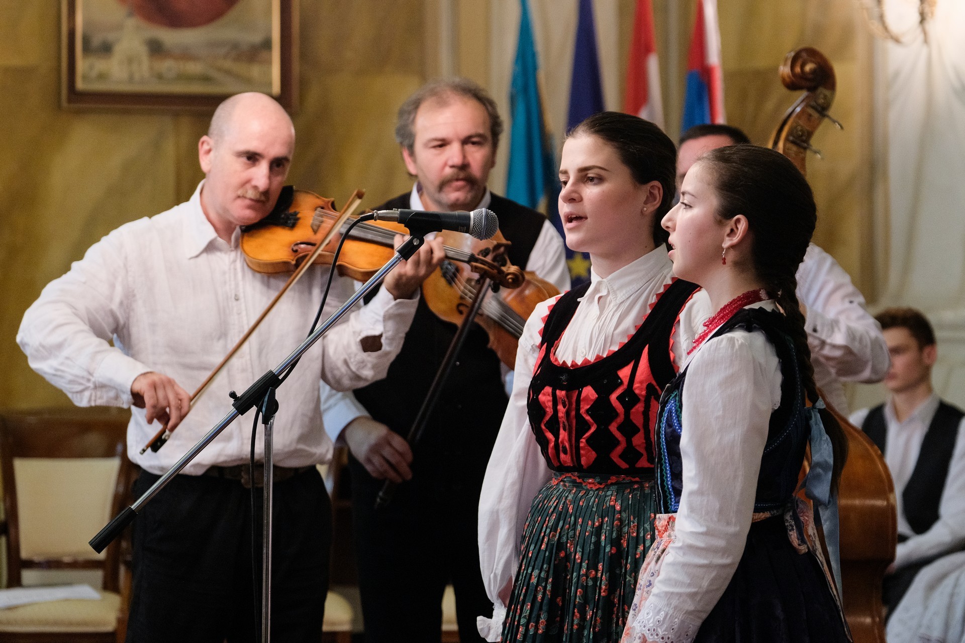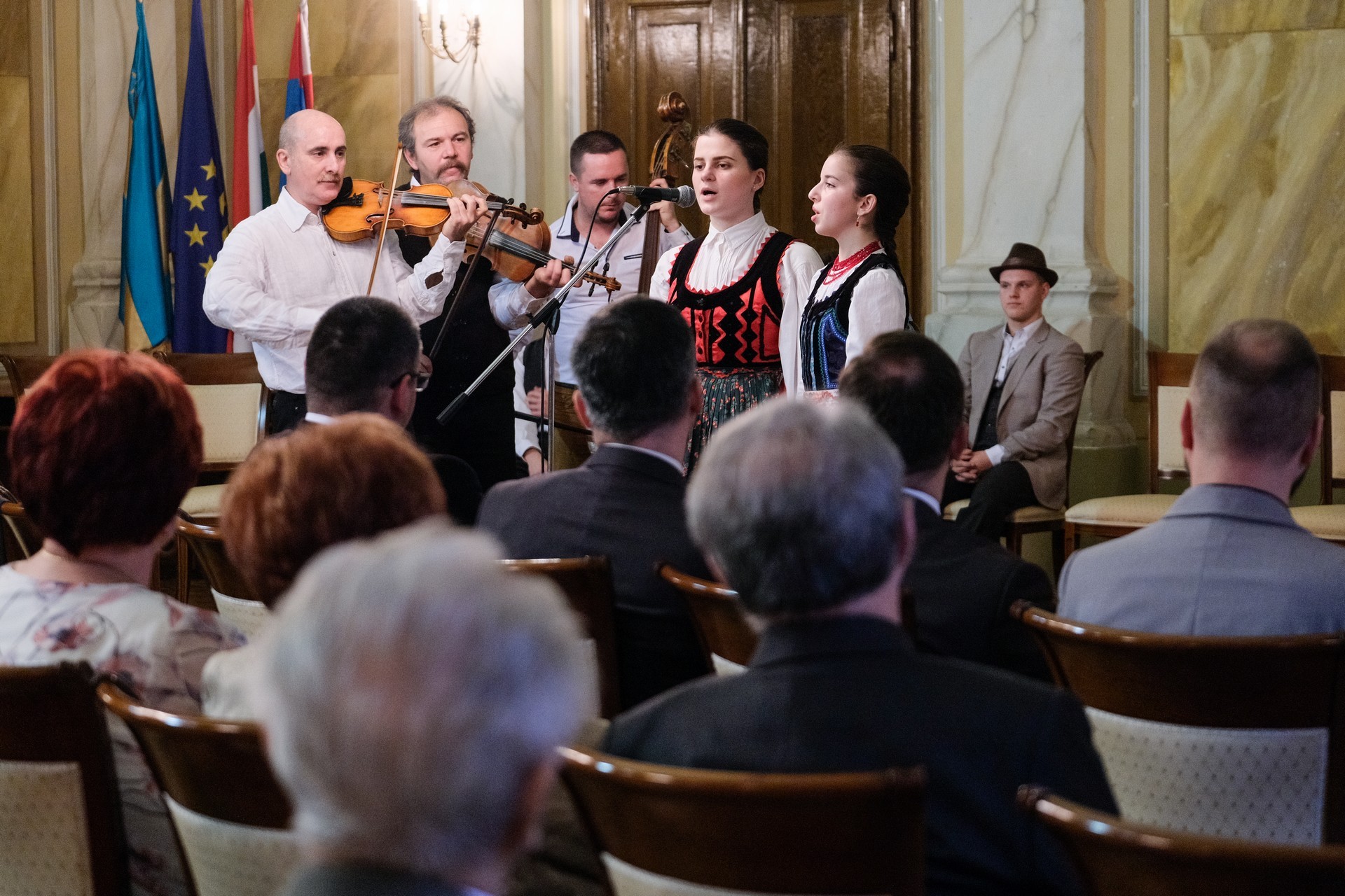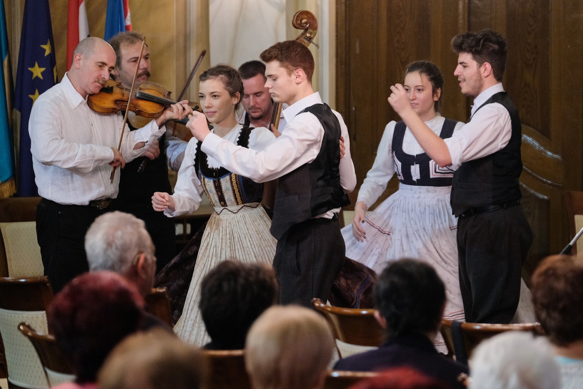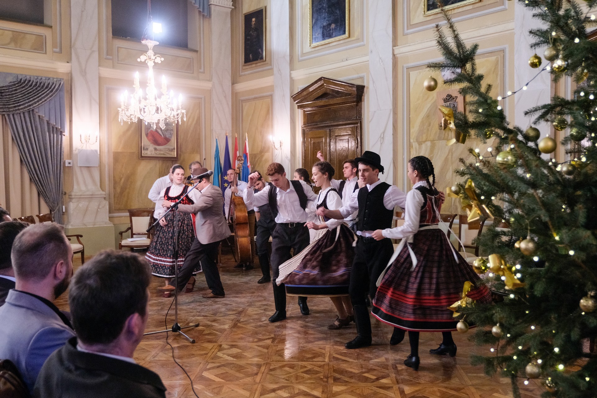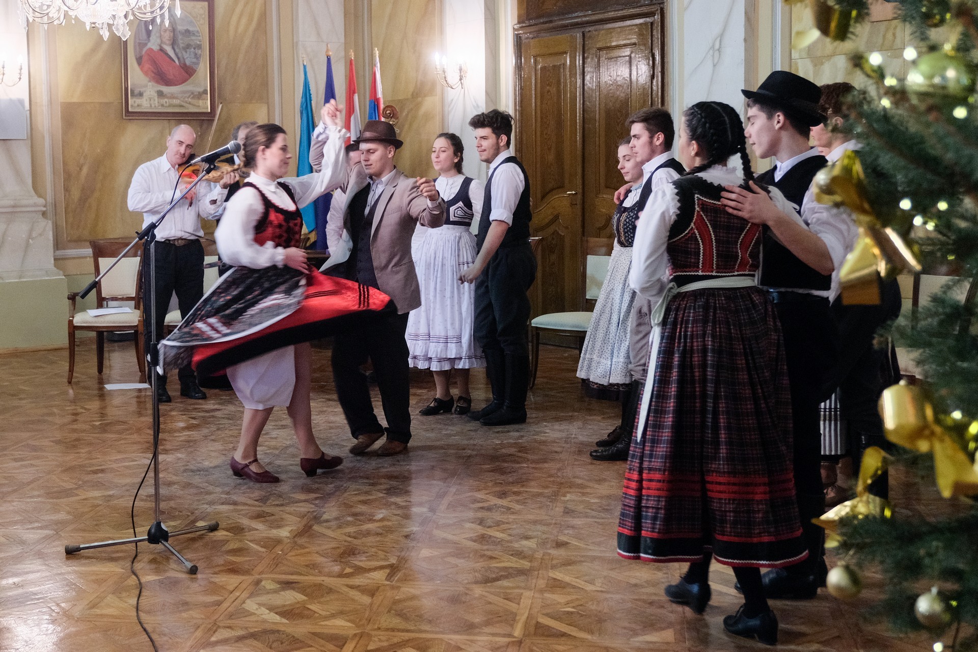 A meghívottakat ezt követően a Körös Táncegyüttes lepte meg a Karácsonykor, éjféltájban című összeállításával, majd Patyi Zoltán, a társulat és a kísérőzenekar vezetője Kosztolányi Dezső Hajnali részegség című versével fejezte ki jókívánságait a jelenlévőknek.