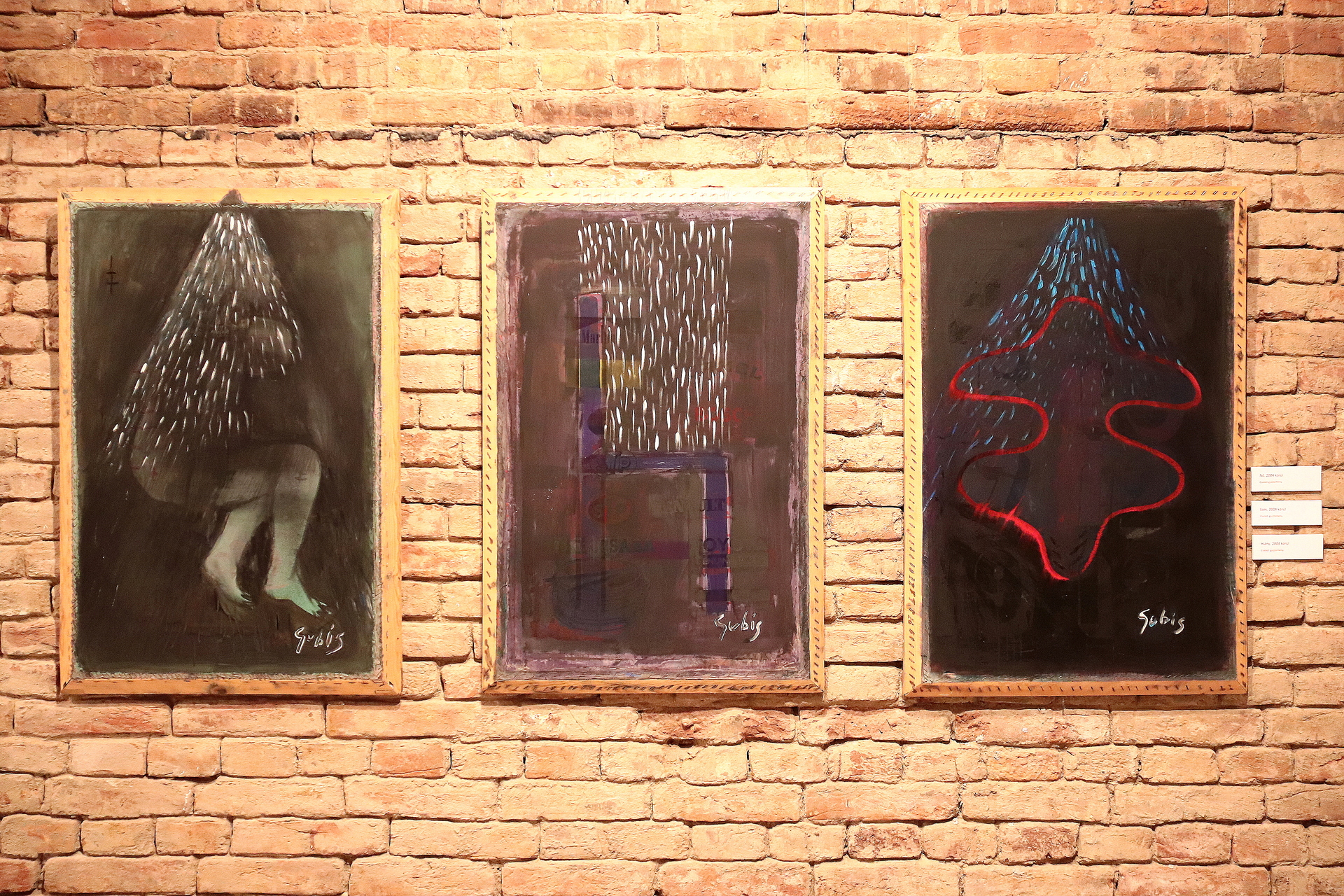 Gubis Mihály egymás mellett futó és egymást keresztező egyenesei vélhetően ezt a menetet követték, hisz egyszer csak felpöndörödtek, összekunkorodtak, felaprózódtak és összekuszálódtak. Festményeinek és grafikáinak arcán a heves kézjegyek, mint a késpengejelek, sűrű sebhelyeket ejtettek, villámként cikáztak, varasodtak, majd újra bevéreztek. Kevés alapelemre épülő, leegyszerűsített, mégis igen változatos és beszédesen érzelmes jelképrendszerét ennek a koncepciónak a mentén alakította ki.