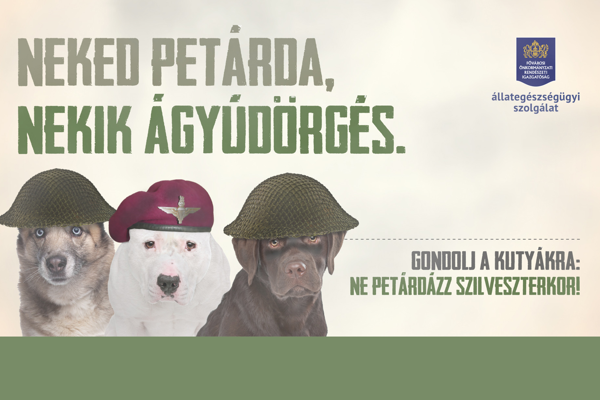 A Fővárosi Önkormányzati Rendészeti Igazgatóságának Állategészségügyi Szolgálata közleményben hívja fel a figyelmet arra, hogy az év vége, a szilveszter és az újév kezdetekor a petárdázások hatására nagyon sok kutya szökik el otthonról és kóborol az utcákon. Az erős hang- és fényhatások miatt megrémült, kerítésen átmászó, menekülő állatok az utcán olyan környezetbe kerülnek, amely számukra idegen és veszélyekkel teli, így gyakran válnak autóbaleset áldozatává, vagy olyan távolságra menekülnek otthonuktól, hogy képtelenek oda visszatalálni.