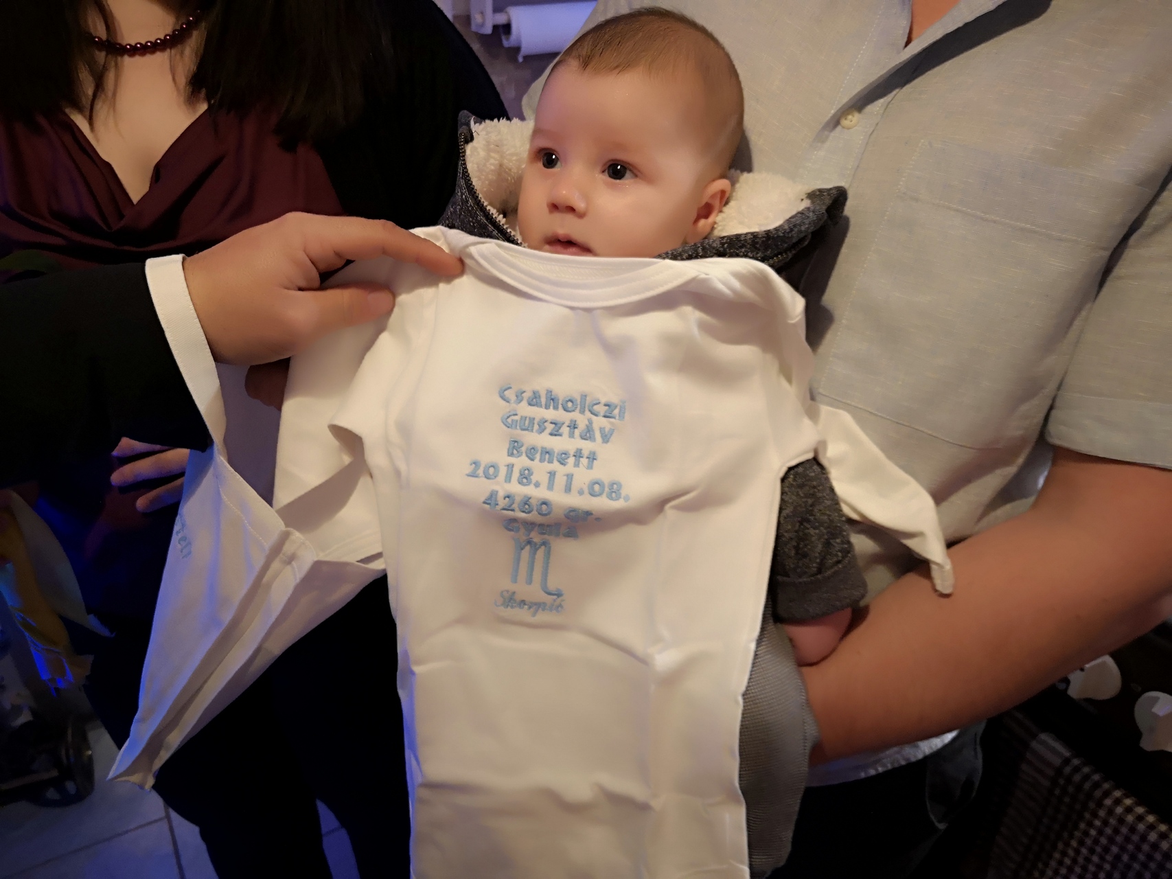 – Az Isten ajándéka a gyermek, mi is így tekintünk kisfiunkra, aki hatalmas ajándékként érkezett az életünkbe, ezért is lett a neve a Gusztáv után Benett, ami latin eredetű név, azt jelenti, áldott, Istent dicsérő – mondta el az édesapa, aki hozzátette: Beni mosolygós, kiegyensúlyozott, vidám baba, amit a legtöbben meg is jegyeznek.