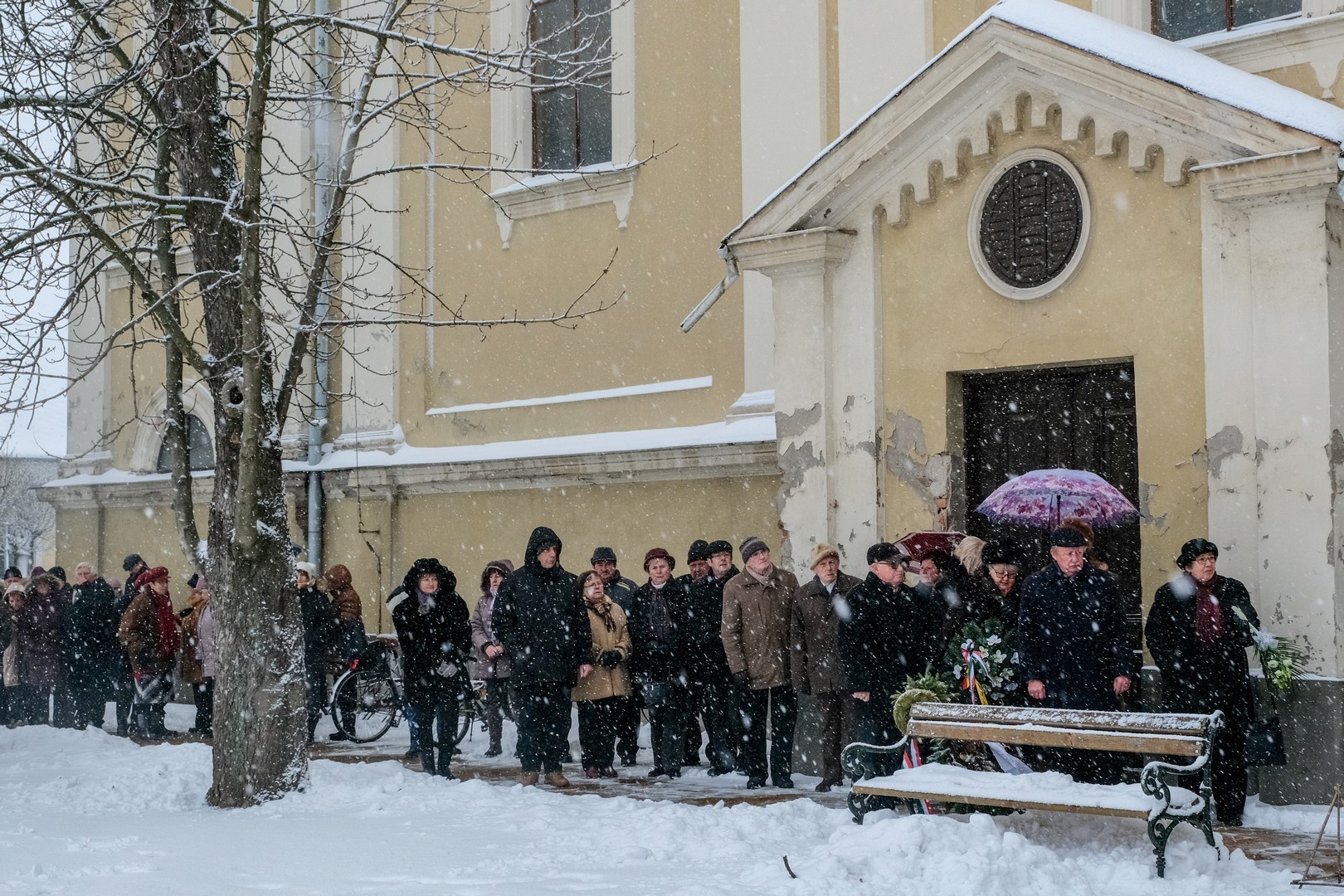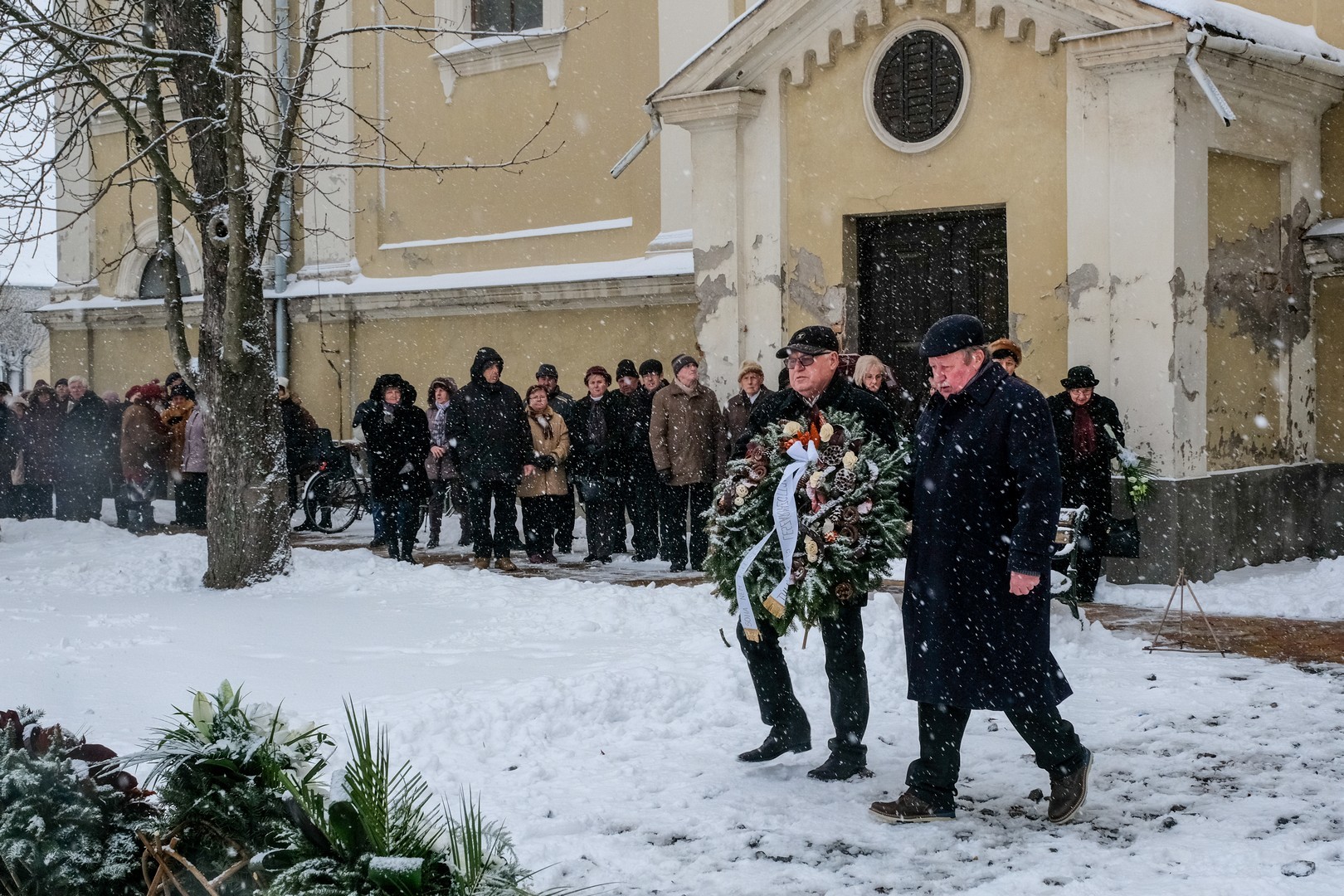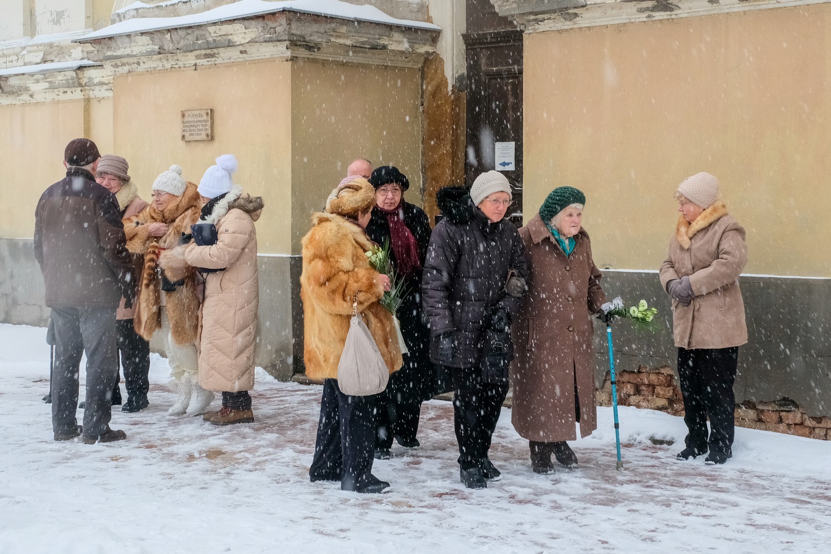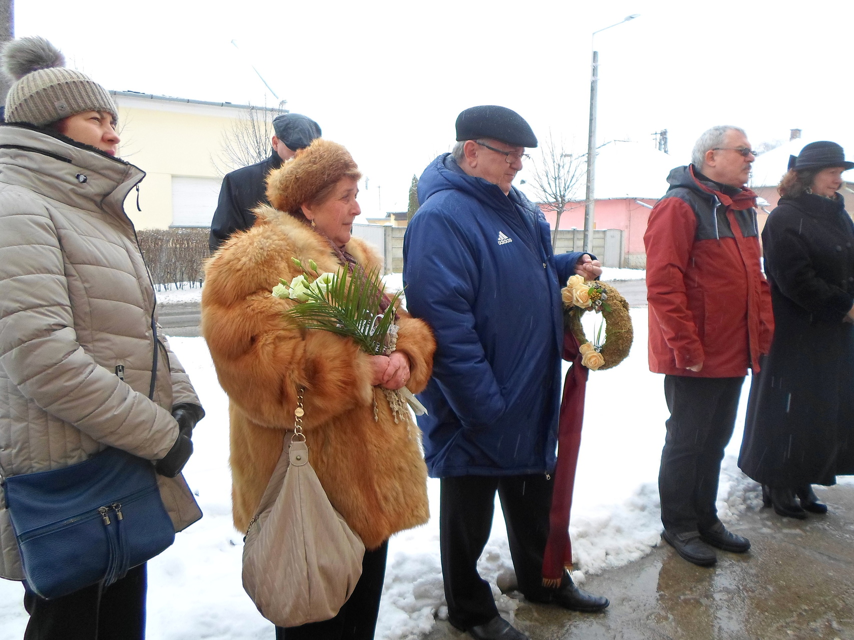 emlékezők Az egykori Huszárlaktanya homlokzatán lévő emléktáblánál