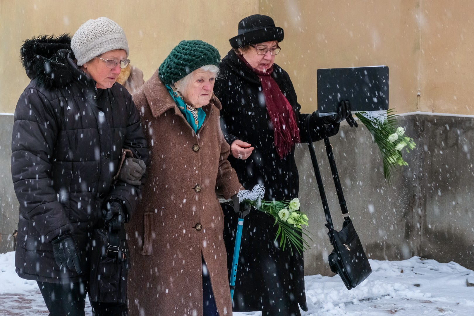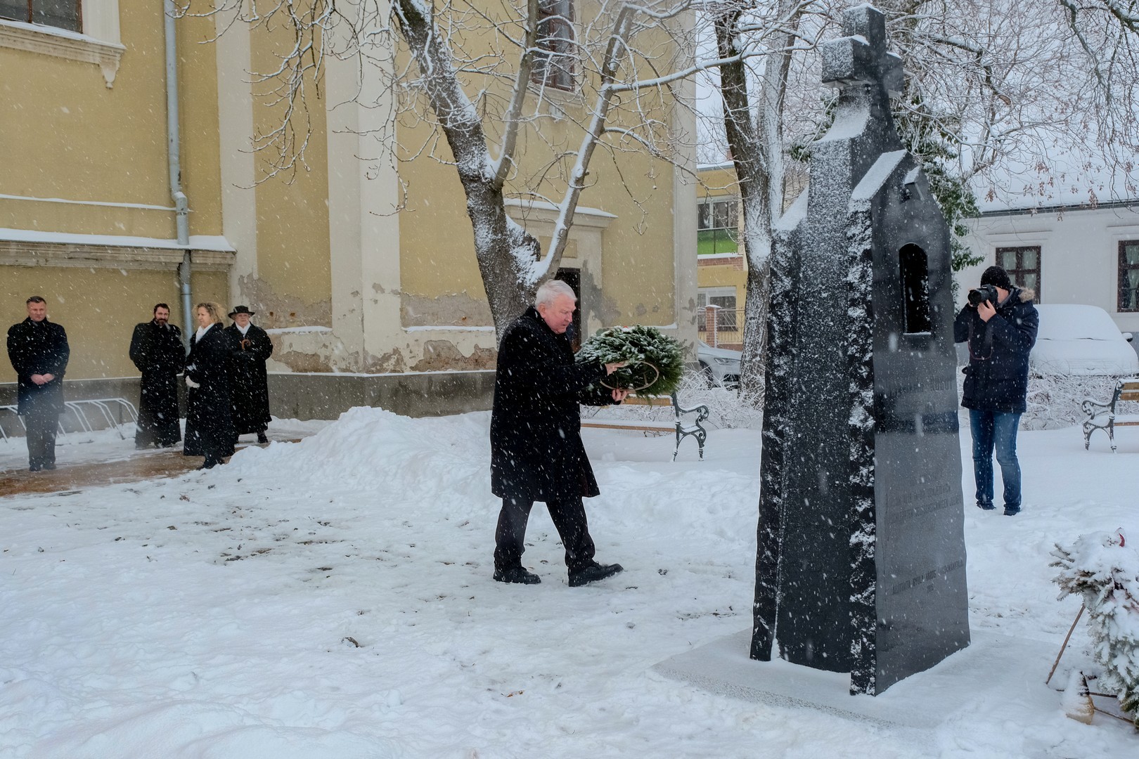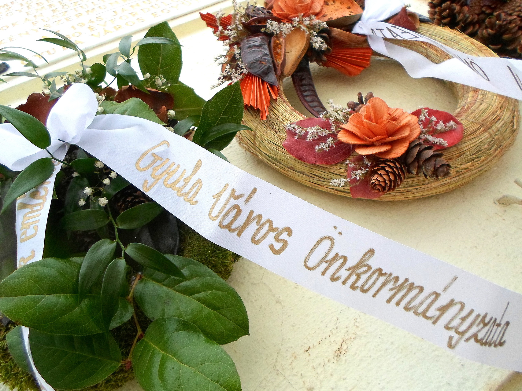 Az emlékmű megkoszorúzása előtt Görgényi Ernő virággal köszöntötte a jelenlévő gyulai túlélőket, Kempfné Wittmann Klárát, Kempfné Szeip Rozinát és a szovjet munkatáborban született Szántóné Japport Erzsébetet, és tiszteletét fejezte ki az elhunytak iránt.