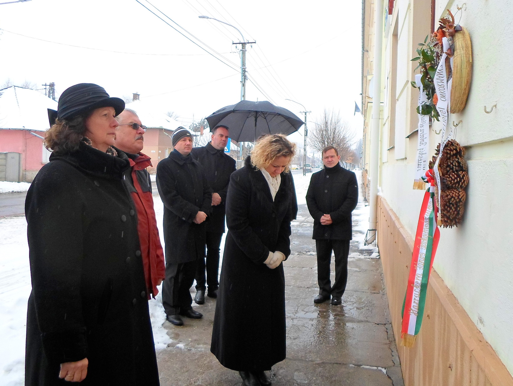 Az emlékezők a Harruckern János Közoktatási Intézmény falán elhelyezett emléktáblánál is fejet hajtottak a délelőtt folyamán.